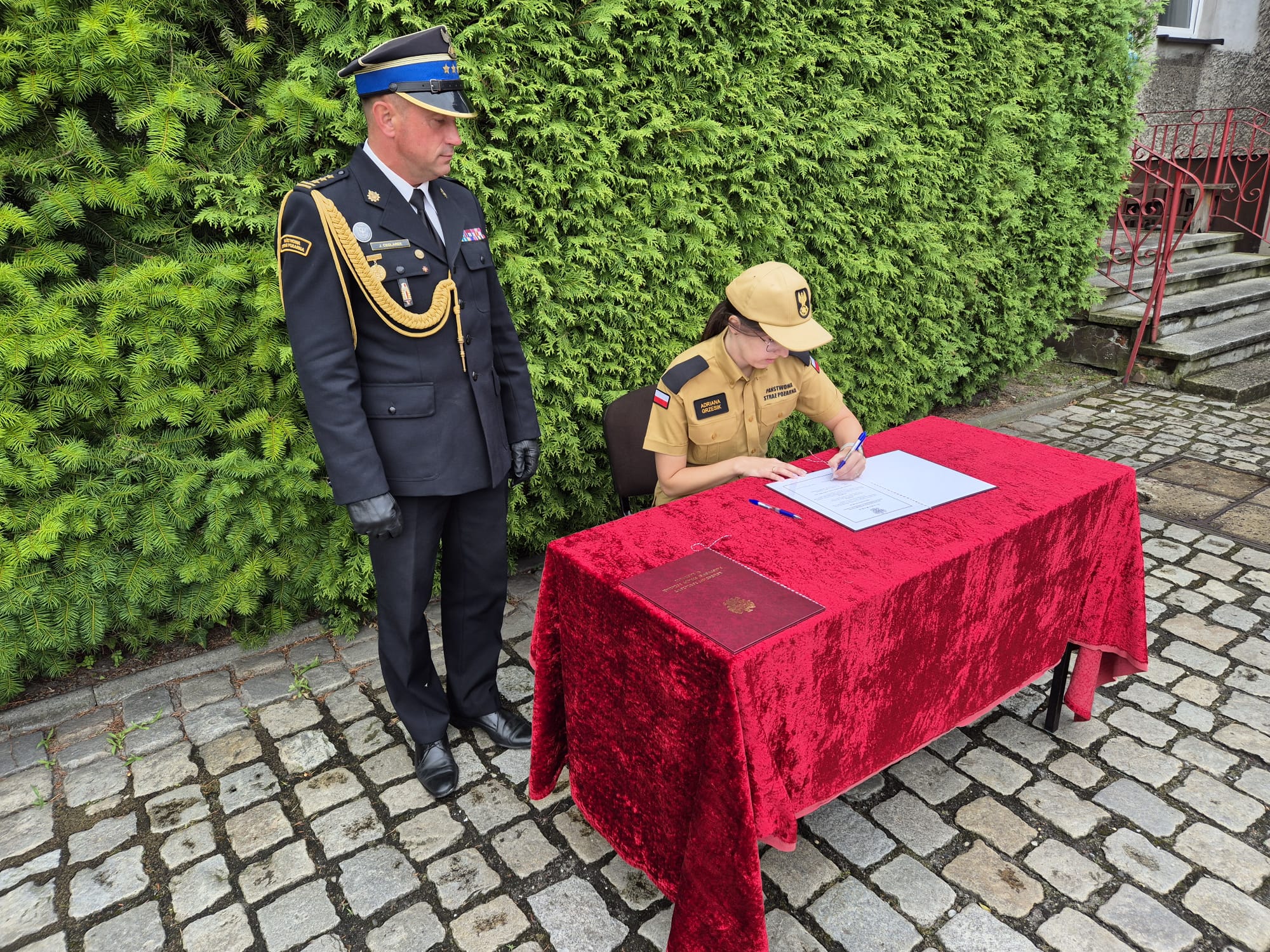 Po złożeniu ślubowania, str. Adriana Grzesik podpisała akt ślubowania, pieczętując tym samym rozpoczęcie swojej drogi zawodowej w strukturach PSP.