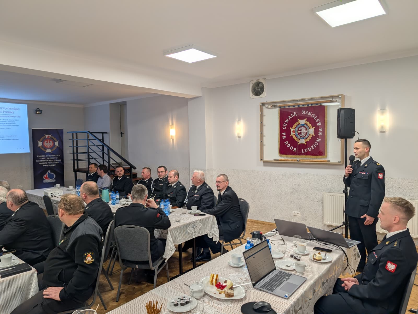 Na zakończenie Komendant Powiatowy PSP w Raciborzu przedstawił zadania straży pożarnej określone w ustawie o ochronie ludności i obronie cywilnej, podziękował wszystkim druhom za ich codzienną służbę, zaangażowanie, gotowość niesienia pomocy. Zaznaczył również, że wzorowa współpraca Państwowej i Ochotniczej Straży Pożarnej umożliwia skuteczne reagowanie na zagrożenia i zapewnianie bezpieczeństwa mieszkańcom.