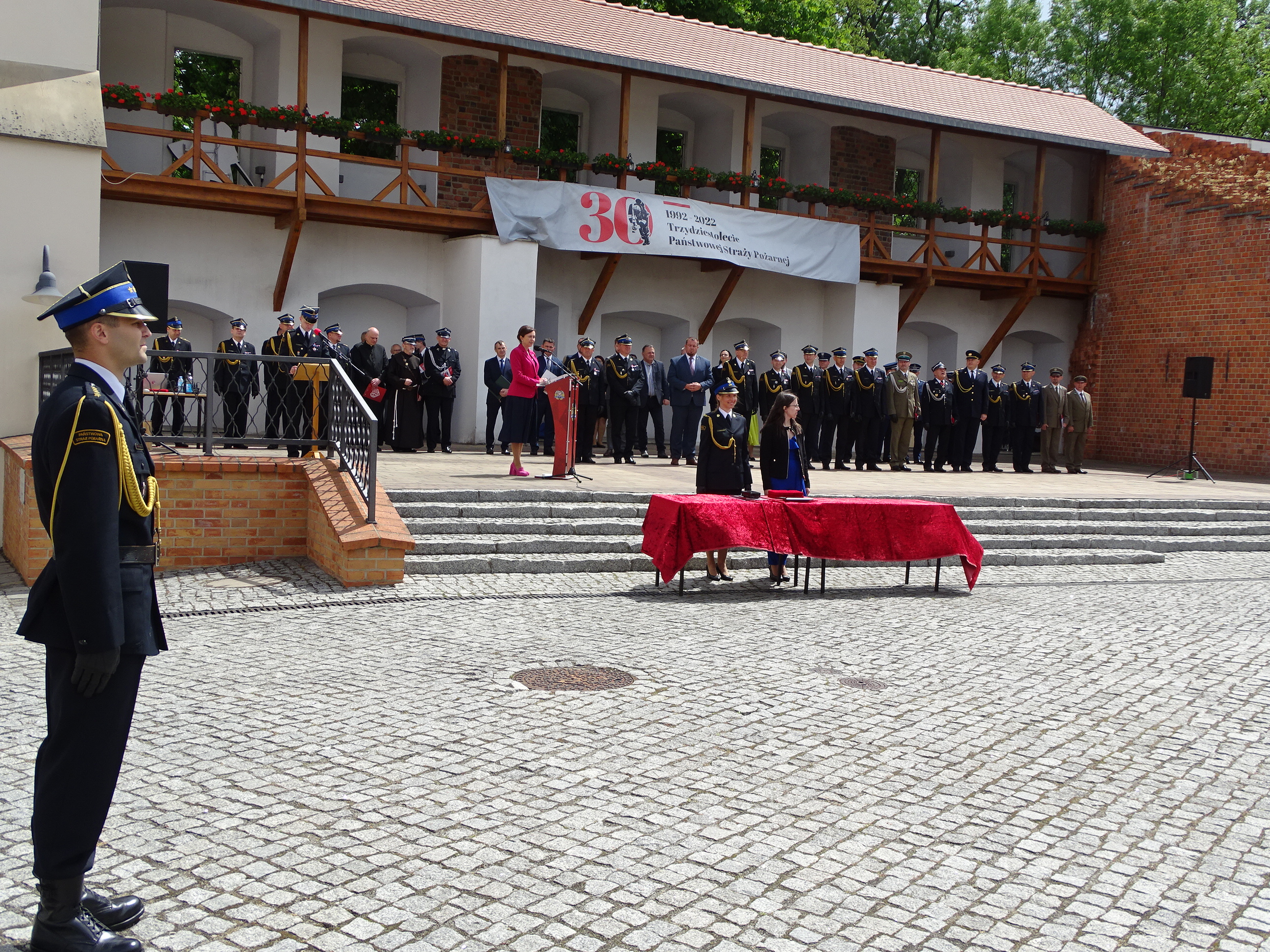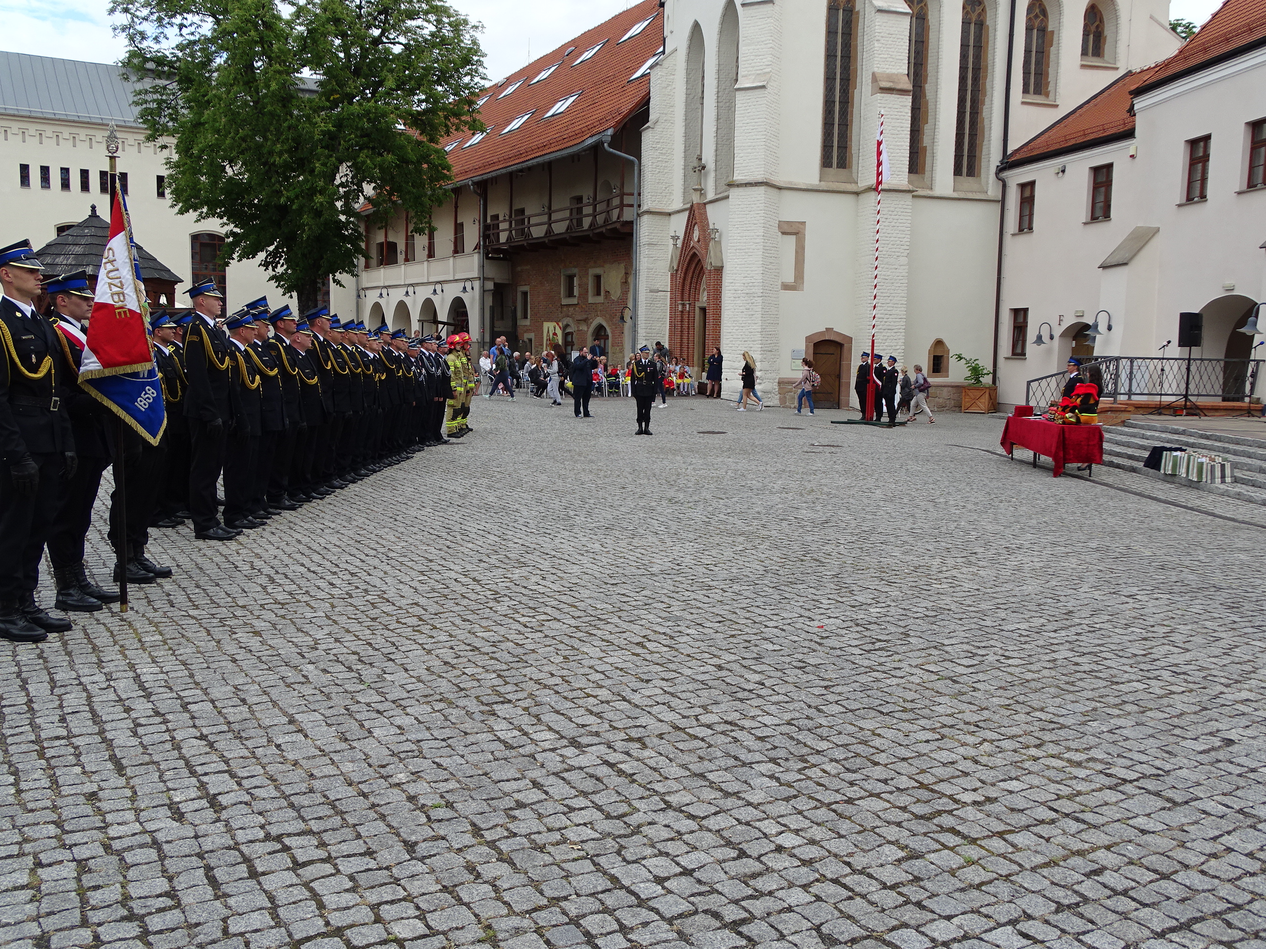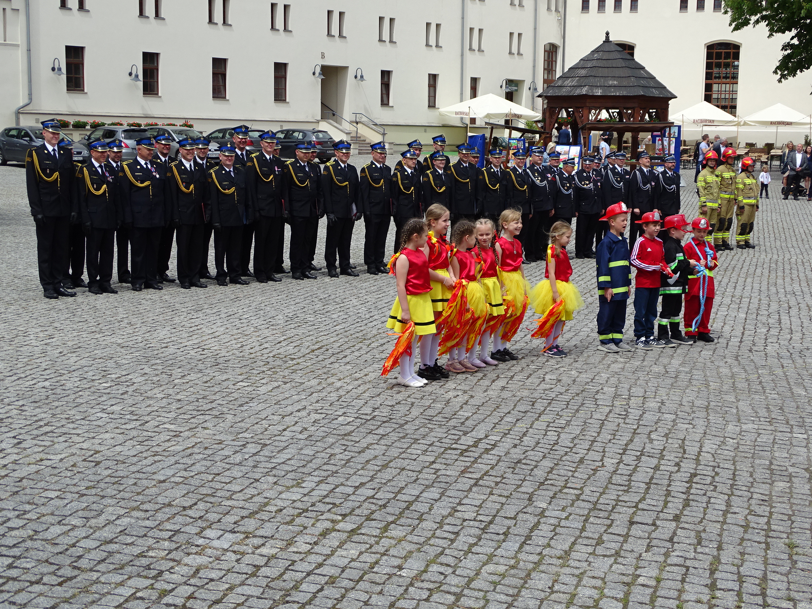 Po Mszy, na dziedzińcu Zamku Piastowskiego w Raciborzu odbył się uroczysty apel z okazji Dnia Strażaka. Meldunek o rozpoczęciu przyjął st. bryg. Mirosław Synowiec - Zastępca Śląskiego Komendanta Wojewódzkiego Państwowej Straży Pożarnej.