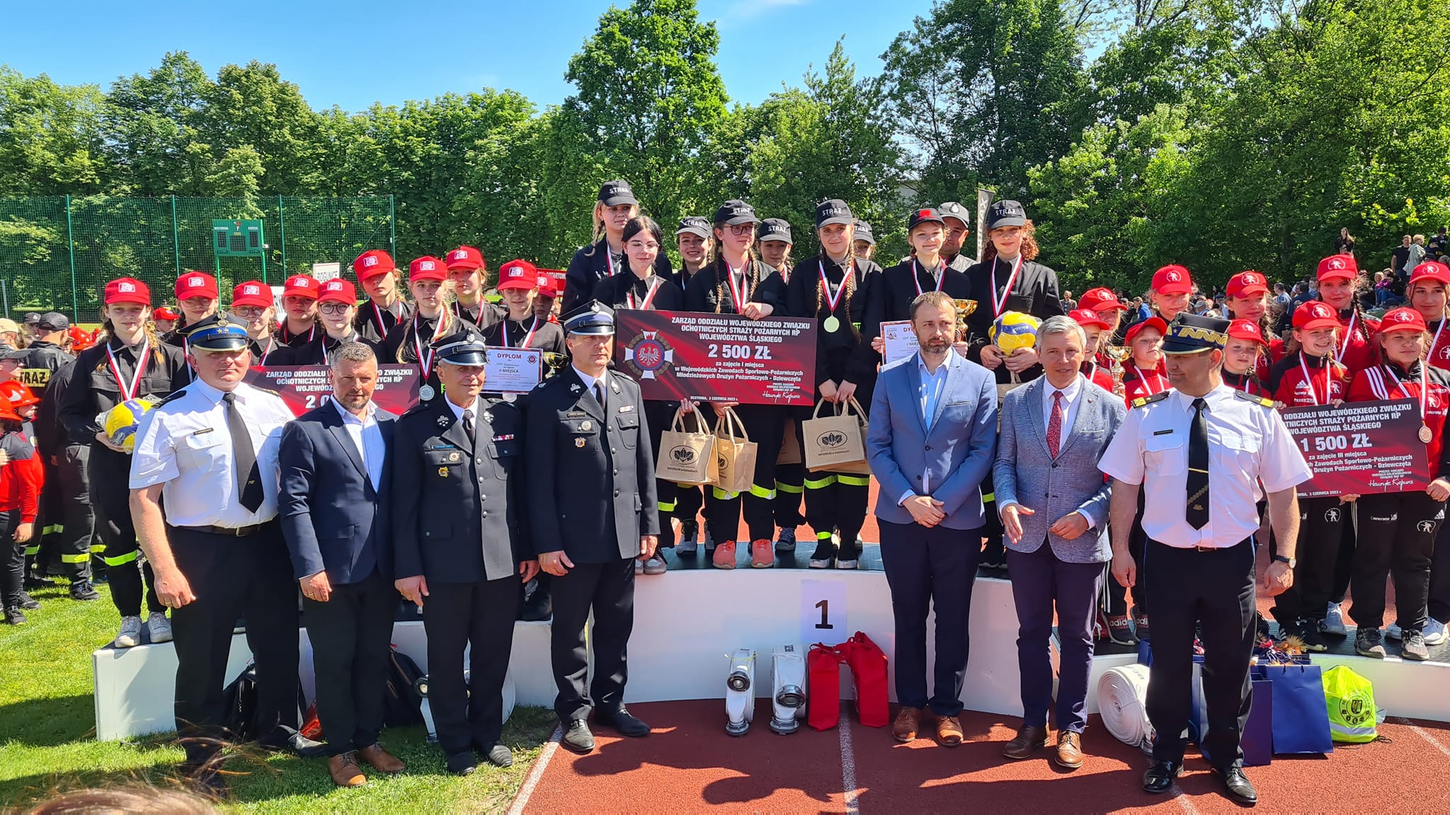 Wszystkim wyróżnionym puchary, medale, dyplomy i nagrody wręczali: śląski komendant wojewódzki PSP nadbryg. Jacek Kleszczewski, prezes Zarządu OW ZOSP RP woj. śląskiego dh Henryk Kiepura, Pan Przemysław Drabek poseł na Sejm RP, prezes Wojewódzkiego Funduszu Ochrony Środowiska i Gospodarki Wodnej w Katowicach Pan Tomasz Bednarek, Pan Artur Beniowski wójta Gminy Bestwina, bryg. Roman Marekwica komendant miejski PSP w Bielsku - Białej i Pan Stanisław Nycz prezes Zarządu Oddziału Powiatowego ZOSP RP w Bielsku-Białej.