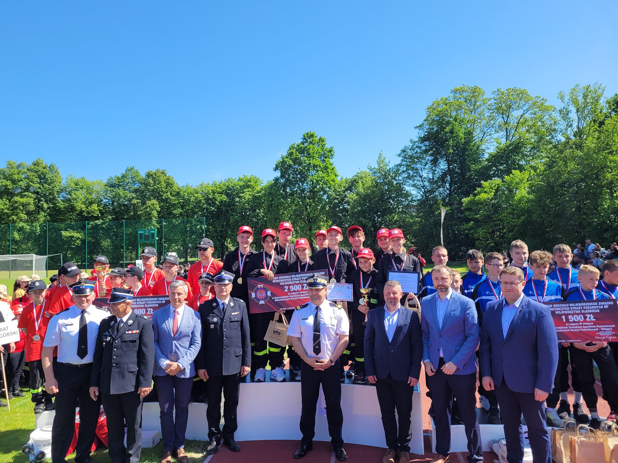 Stawką dzisiejszych zawodów był awans na zawody krajowe. Puchary, medale i nagrody ufundowali minister Funduszy i Polityki Regionalnej, śląski komendant wojewódzki PSP, prezes Zarządu OW ZOSP RP woj. śląskiego oraz prezes Wojewódzkiego Funduszu Ochrony Środowiska i Gospodarki Wodnej w Katowicach.