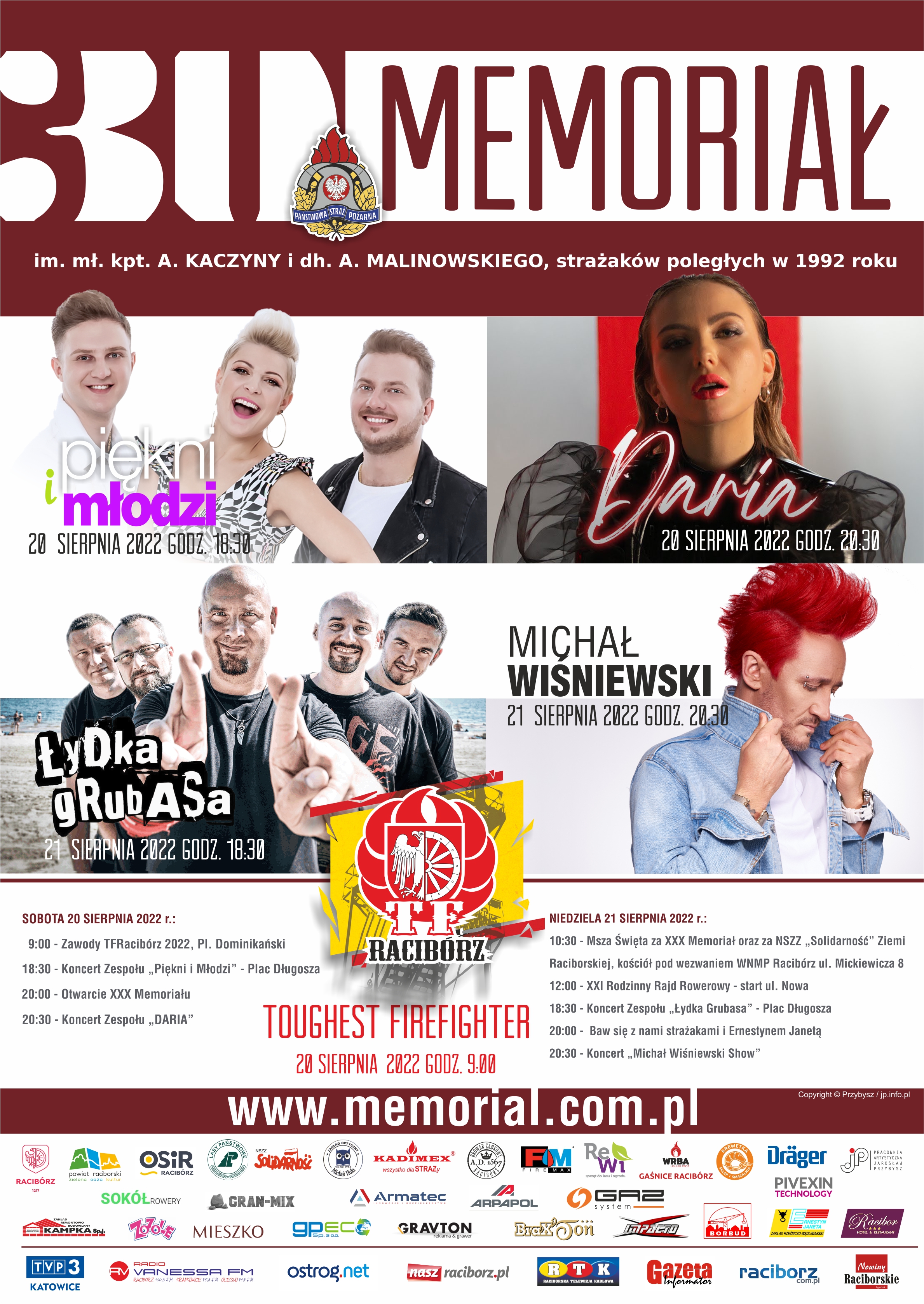 Organizacja Memoriału im. mł. kpt Andrzeja Kaczyny i druha Andrzeja Malinowskiego - strażaków poległych, w 1992 roku w trakcie pożaru lasów w okolicach Kuźni Raciborskiej, wymaga ogromnego nakładu sił, czasu i środków finansowych. Po śmierci wieloletniego dyrektora memoriału śp. st. ogn. Stanisława Borowika przekonali się o tym raciborscy strażacy. Dzięki wspólnemu wysiłkowi Komendy Powiatowej PSP w Raciborzu i związku zawodowego NSZZ Solidarność udało się w dniach 20-21sierpnia zrealizować XXX memoriał.