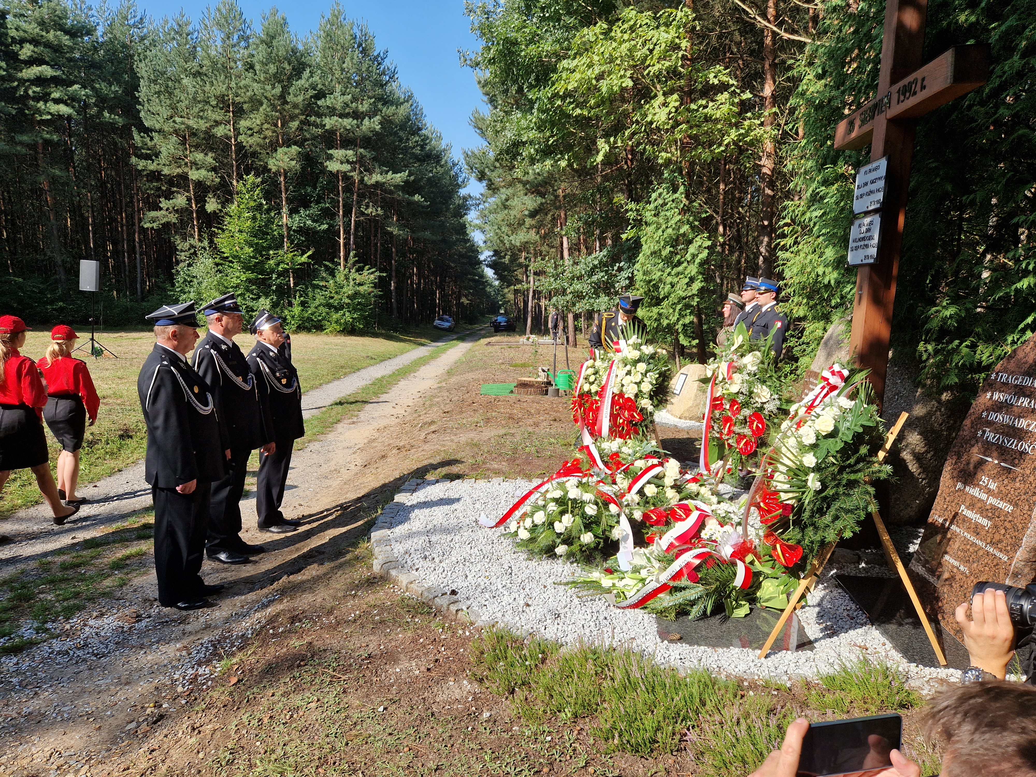 Władze rządowe, samorządowe, strażacy i leśnicy spotkali się w miejscu tragicznej śmierci mł. kpt. Andrzeja Kaczyny i dh Andrzeja Malinowskiego, by oddać cześć poległym podczas działań gaśniczych pożaru lasu, a także wyrazić szacunek ich rodzinom i wszystkim tym, którzy dla dobra swojego narodu oddali życie. Zastępca komendanta głównego PSP nadbryg. dr inż. Adam Konieczny, Śląski Komendant Wojewódzki PSP nadbryg. Jacek Kleszczewski, Opolski Komendant Wojewódzki PSP st. bryg. Krzysztof Kędryk, Dyrektor Generalny Lasów Państwowych Józef Kubica oraz Dyrektor Regionalny Lasów Państwowych w Katowicach Damian Sieber odsłonili pamiątkową tablicę i zasadzili Papieski Dąb. To szlachetne drzewo przez wieki będzie świadkiem naszej pamięci: o poległych kolegach, poświeceniu strażaków, leśników, żołnierzy, policjantów w gaszeniu tego tragicznego pożaru oraz trudów leśników w odbudowie tego co strawił żywioł.