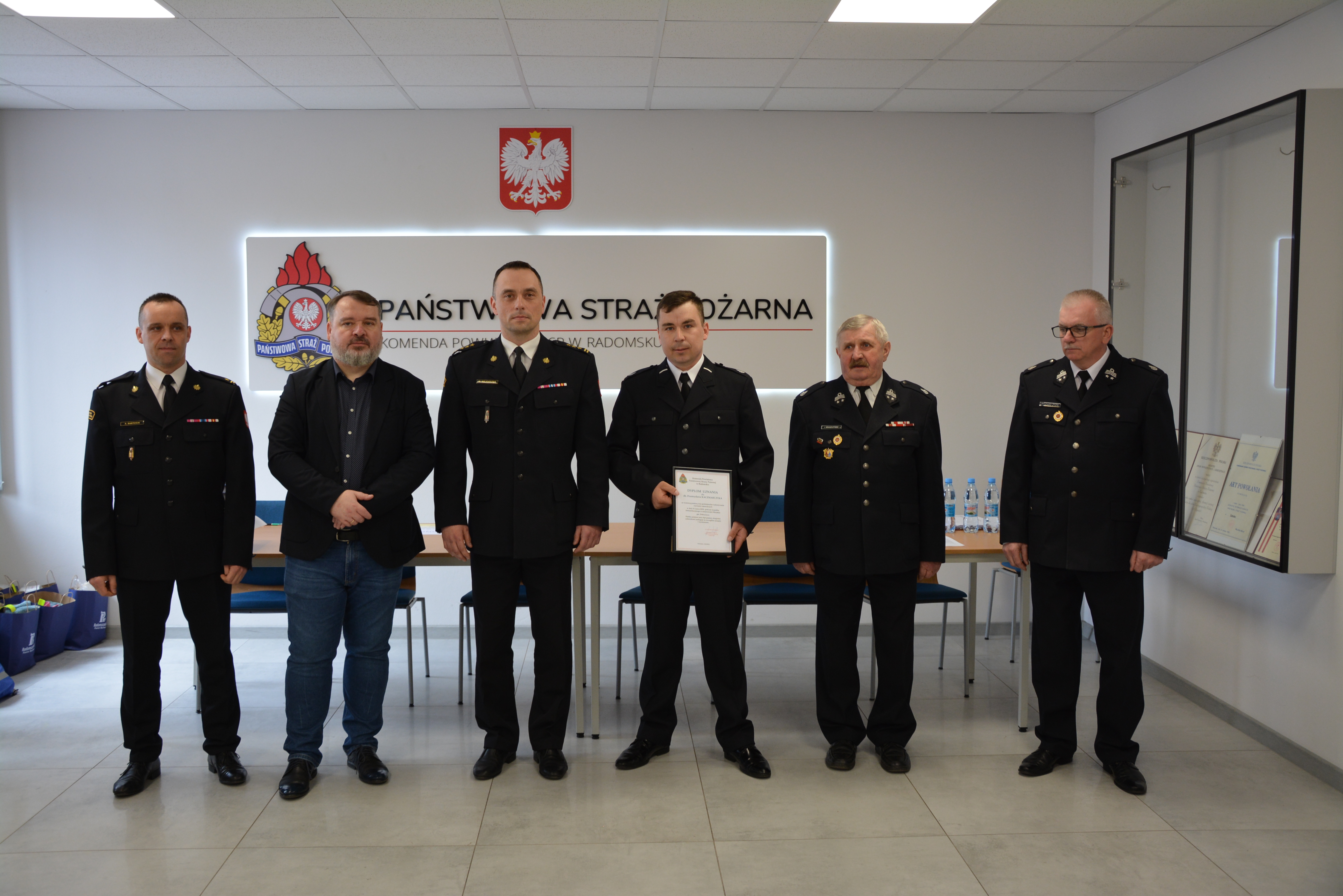 Podczas eliminacji Komendant Powiatowy PSP w Radomsku st. bryg. Mariusz Wojcieszko wręczył dyplom uznania dla dh Przemysława Kaczmarczyka z jednostki OSP Kietlin, za wzorową postawę oraz profesjonalne wykonywanie czynności ratowniczych w dniu 11 marca br. podczas wypadku komnunikacyjnego w miejscowości Malutkie gm. Dobryszyce.