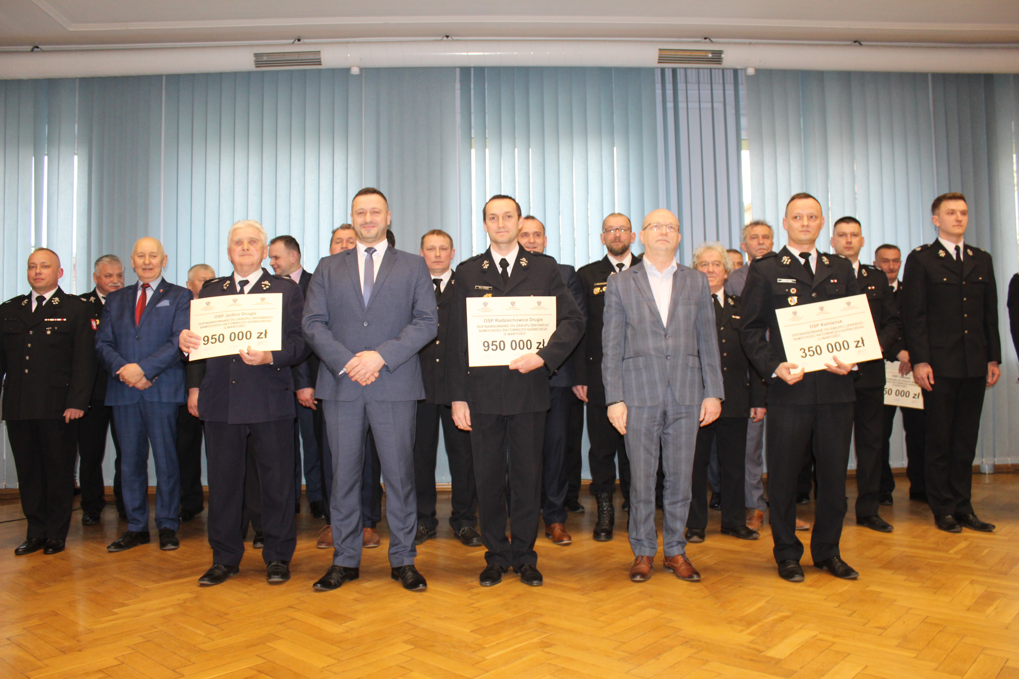 Uroczystość wręczenia 11 promes na zakup samochodów ratowniczo-gaśniczych