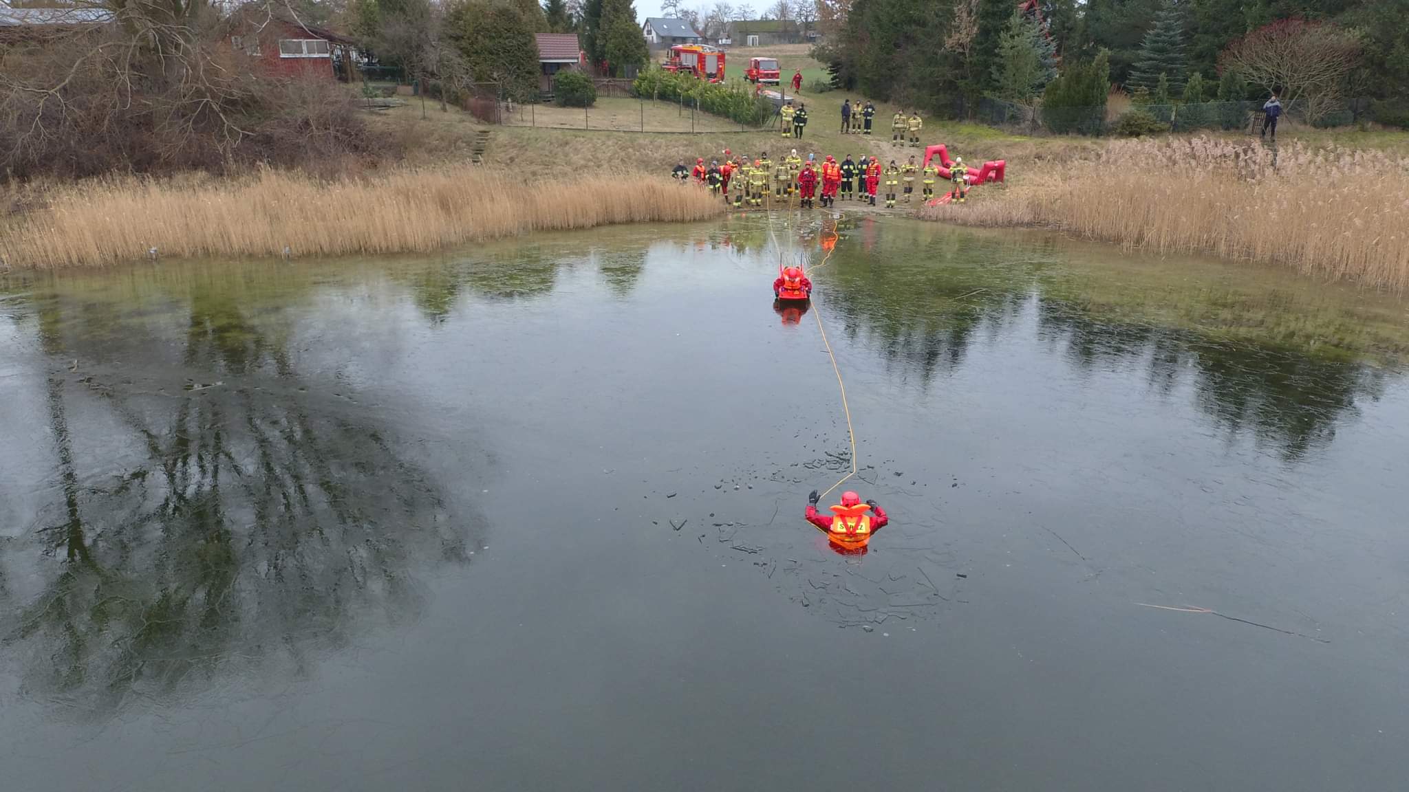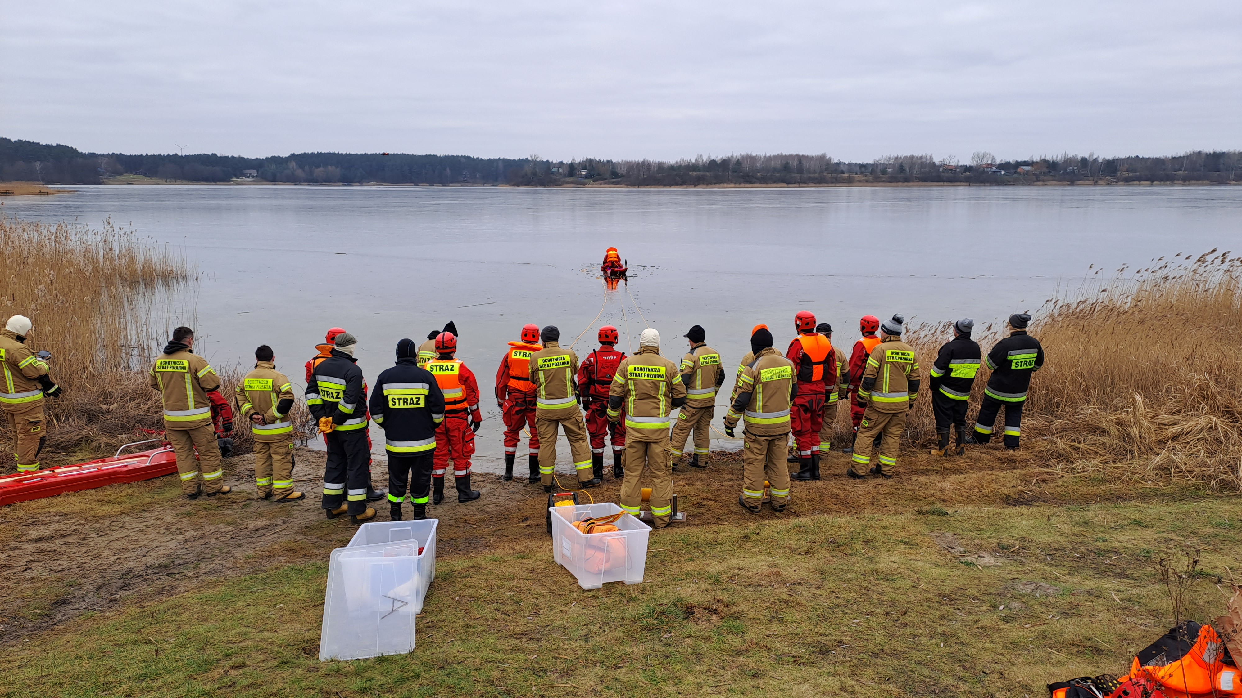 W dniu 13 lutego 2023 roku na jeziorze Głuszyńskim w miejscowości Orle odbyły się ćwiczenia z zakresu ratownictwa lodowego strażaków Jednostki Ratowniczo-Gaśniczej w Radziejowie oraz Ochotniczych Straży Pożarnych włączonych do Krajowego Systemu Ratowniczo-Gaśniczego z terenu powiatu radziejowskiego wyznaczonych do zadań z ratownictwa wodno-lodowego. Celem ćwiczeń było wypracowanie koncepcji w przypadku podjęcia wspólnych działań przez siły i środki Państwowej Straży Pożarnej oraz Ochotniczych Straży Pożarnych. W czasie wykonywania ćwiczeń praktycznych strażacy mieli za zadanie podjęcie osoby poszkodowanej z wody przy pomocy specjalistycznego sprzętu ratowniczego, a następnie ewakuowanie jej na brzeg jeziora. W zorganizowanym punkcie medycznym ćwiczony był epizod udzielenia kwalifikowanej pierwszej pomocy osobie wychłodzonej. W trakcie ćwiczeń wykorzystano deski lodowe oraz pneumatyczne sanie ratownictwa lodowego.