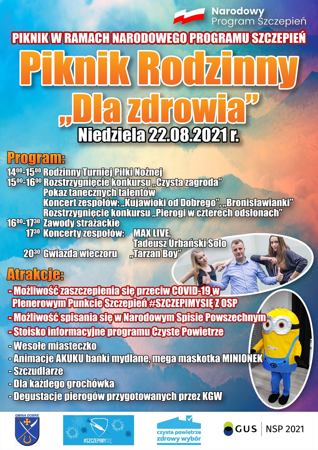 2. W najbliższą niedzielę (tj. 22 sierpnia 2021 r.) na stadionie gminnym w Dobrem podczas „Pikniku Rodzinnego Dla Zdrowia” zostanie utworzony plenerowy punkt szczepień, w działania mobilnego punktu sczepień zaangażowani będą strażacy z OSP Dobre.