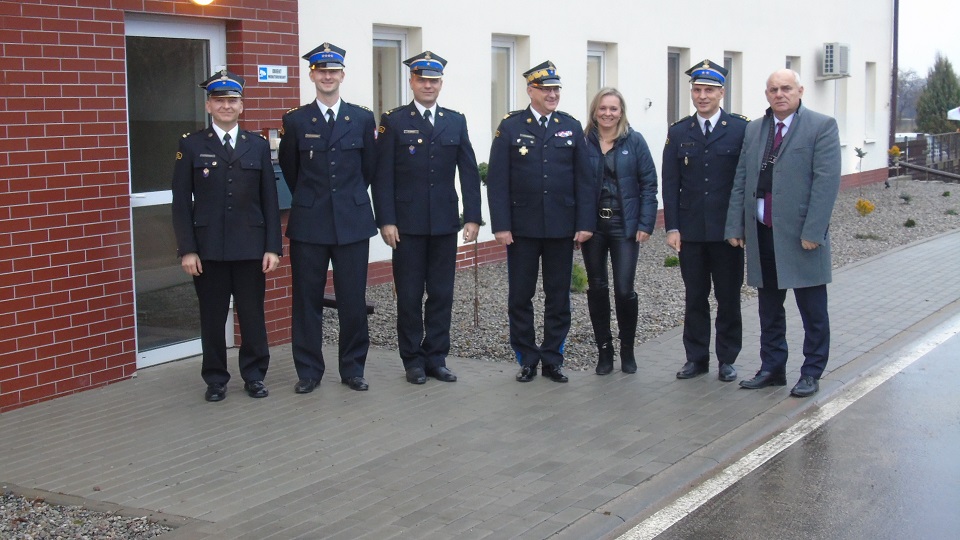 W dniu 8 grudnia 2022 r. w Komendzie Powiatowej Państwowej Straży Pożarnej w Radziejowie odbyło się spotkanie, które było okazją do złożenia podziękowań Panu Staroście Radziejowskiemu Jarosławowi Kołtuniakowi oraz Pani Skarbnik Starostwa Powiatowego Urszuli Miętkiewicz za działania wspierające rozwój i unowocześnienie jednostki ratowniczo-gaśniczej w Radziejowie. W uroczystym spotkaniu uczestniczył również Kujawsko-Pomorski Komendant Wojewódzki Państwowej Straży Pożarnej nadbryg. Jacek Kaczmarek. Podziękowania za zaangażowanie w modernizację budynku Komendy złożył Komendant Powiatowy Państwowej Straży Pożarnej bryg. Adam Małecki wraz z zastępcą mł. bryg. Maciejem Góreckim. Dzięki wsparciu Pana Starosty, w ostatnim czasie zmodernizowano teren przed obiektem Komendy. W ramach powyższego wyremontowano zniszczoną elewację, zamontowano energooszczędne oświetlenie ledowe oraz dokonano nowych nasad roślin ozdobnych. Wymienić tu należy również wykonanie rekonstrukcji i przebudowy zjazdów do budynku Komendy Powiatowej Straży Pożarnej z nowo wyremontowanej drogi gminnej. Powyższa modernizacja polepszyła funkcjonalność zjazdów oraz poprawiła widoczność, która jest szczególnie istotna w trakcie wyjazdów alarmowych zastępów PSP do działań ratowniczych. Bieżącą pieczę i nadzór nad remontami sprawowali dowódcy jednostki ratowniczo-gaśniczej st. kpt. Michał Sochaczewski i mł. bryg. Mariusz Marciniak oraz Pracownicy Zmianowi.