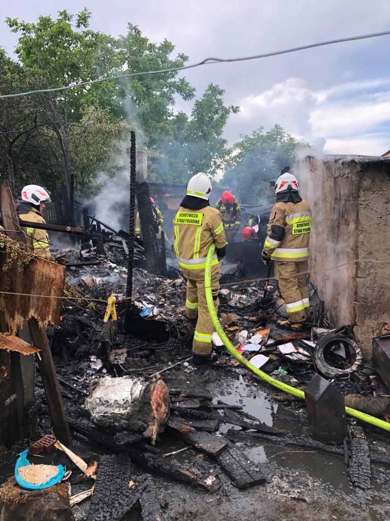 Pożar objął całkowicie budynek gospodarczy i był w pełni rozwinięty (płomienie wydobywały się na zewnątrz budynku). Budynek zlokalizowany był w zabudowie szeregowej obok budynków gospodarczych oraz mieszkalnych. Brak osób poszkodowanych.