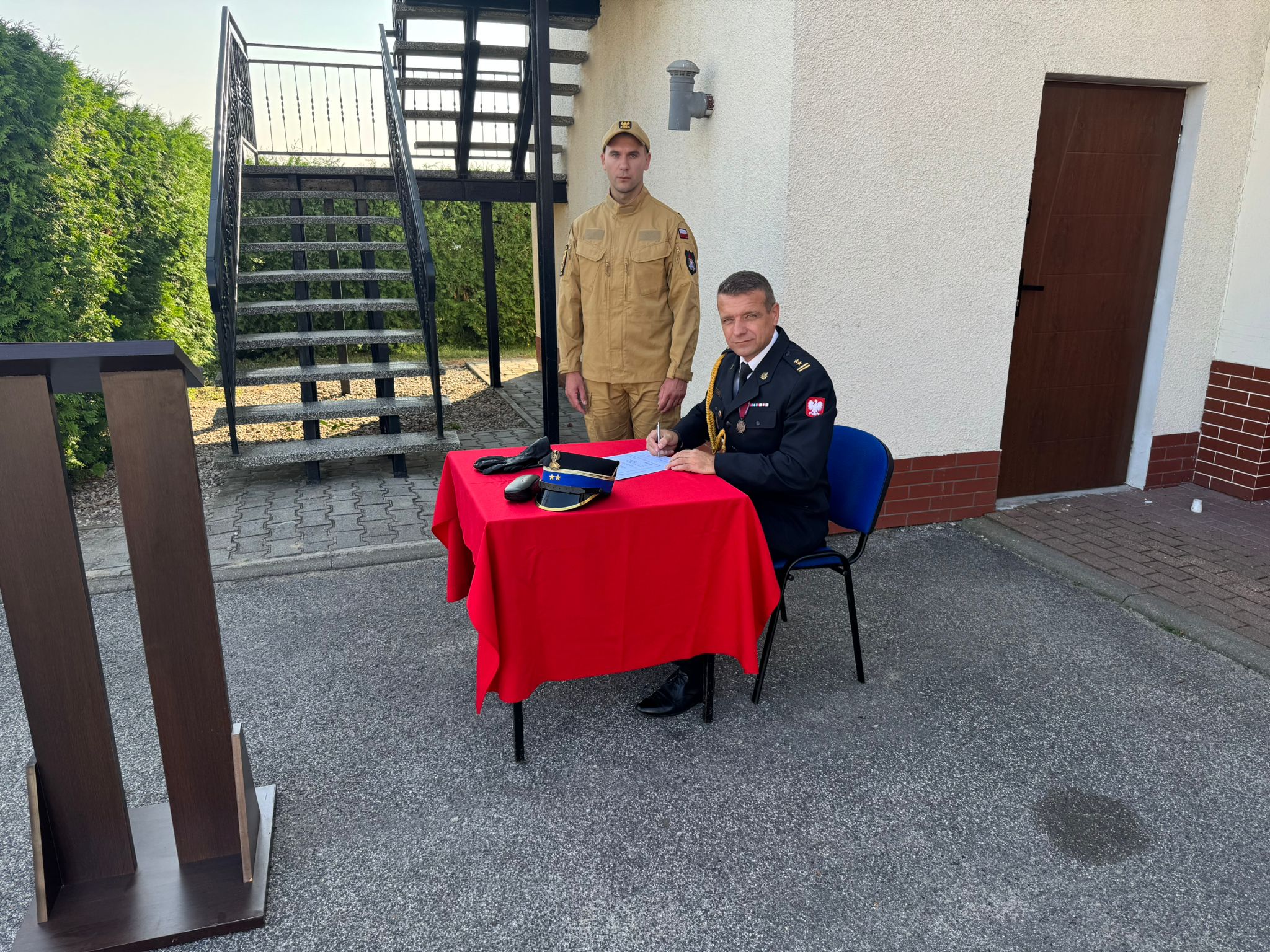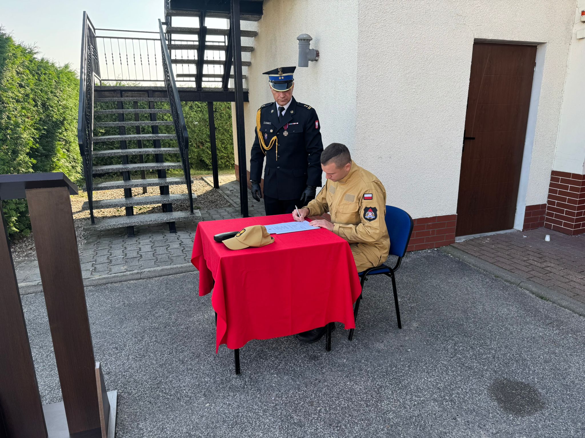 W dniu 29 sierpnia 2025 roku w siedzibie Komendy Powiatowej Państwowej Straży Pożarnej w Radziejowie podczas uroczystej zbiórki Komendant Powiatowy PSP w Radziejowie bryg. Maciej Górecki przyjął ślubowanie od mianowanego w ostatnim czasie do służby strażaka.