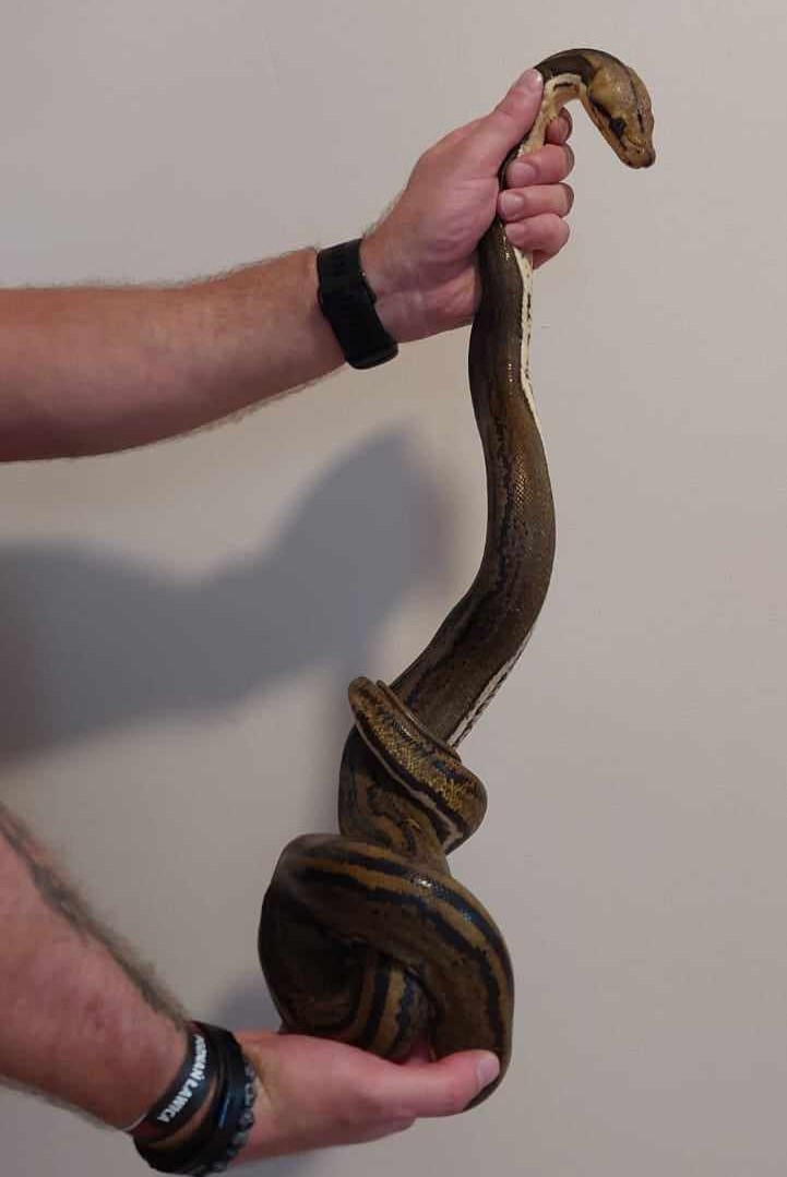 W dniu 18 sierpnia 2023 roku ok. godziny 22:00 do Komendy Powiatowej Państwowej Straży Pożarnej w Radziejowie wpłynęło zgłoszenie z Wojewódzkiego Centrum Powiadamiania Ratunkowego z prośbą o pomoc w interwencji związanej ze schwytaniem węża, który uszkadzając terrarium wydostał się na wolność w jednym z mieszkań w Radziejowie. Na miejscu zdarzenia obecny był już patrol radziejowskiej Policji. Na co dzień opiekę nad gadem sprawowała matka właściciela stworzenia, która miała ograniczać się wyłącznie do jego karmienia. Właściciel węża przebywał za granicą. Omawianym gadem była roczna, około dwumetrowa samica Pytona Siatkowego – wąż niejadowity ale odznaczający się dużą agresywnością. Z uwagi na niecodzienny charakter zgłoszenia, nie udało się dotrzeć do osób i służb, które mogłyby pojmać gada. Zbiegiem okoliczności w ww. dniu służbę na Stanowisku Kierowania Komendanta Powiatowego PSP w Radziejowie pełnił asp. Mariusz Jaworski, który prywatnie hoduje dwa węże i odznacza się zamiłowaniem do egzotycznych stworzeń. Ww. funkcjonariusz zgłosił możliwość udzielenia pomocy w pojmaniu gada, jednak z uwagi na pełnioną służbę i brak możliwości zorganizowania dla niego tymczasowego zastępstwa, nie mógł opuścić swojego stanowiska pracy. Zadeklarował gotowość udzielenia pomocy w dniu następnym po skończonej służbie, tj. po godzinie 8:00. Nasz strażak udzielił funkcjonariuszom Policji oraz właścicielce mieszkania wyczerpujących informacji dotyczących zagrożenia stwarzanego przez gada oraz sposobu skutecznego zabezpieczenia pomieszczenia, w którym przebywał, tak by ten się z niego nie wydostał. Realizacja wskazówek naszego hodowcy pozwoliła odłożyć działania w czasie, bez jakiegokolwiek ryzyka dla mieszkańców bloku oraz dla samego węża. 19 sierpnia 2023 roku po zdaniu służby, asp. Mariusz Jaworski udał się pod wskazany w zgłoszeniu adres i profesjonalnie pojmał gada do specjalnie przygotowanego przez siebie pojemnika, w którym będzie przebywał do czasu naprawy terrarium.