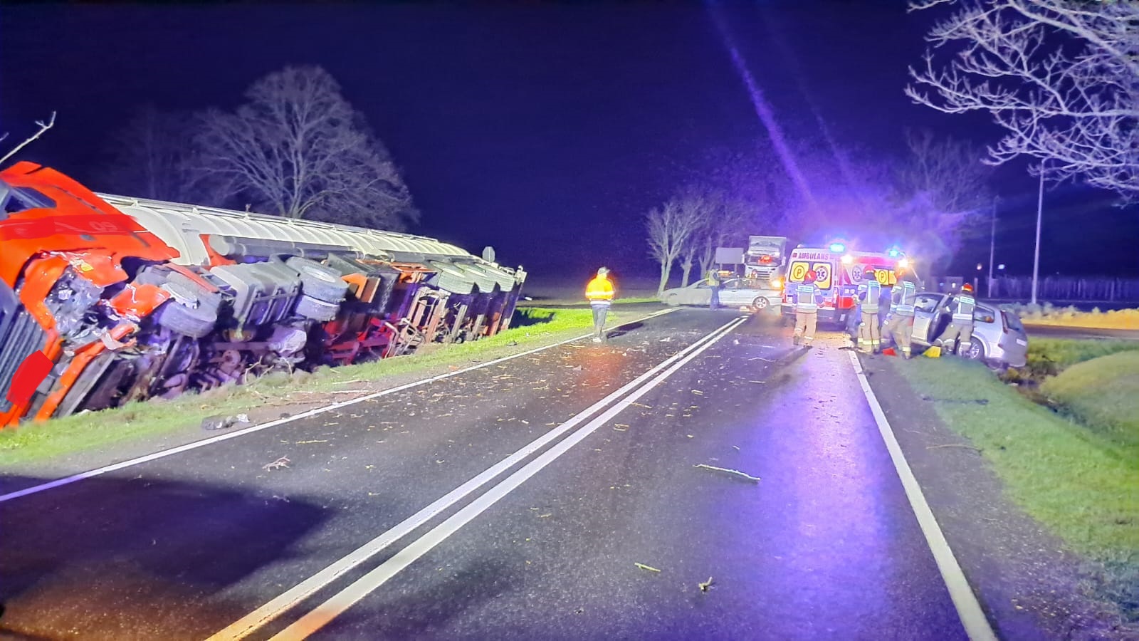 W dniu 3 kwietnia 2024 roku, o godz. 04:46 w miejscowości Broniewek gm. Radziejów na drodze DK 62 doszło do zderzenia dwóch samochodów osobowego oraz ciężarowego z naczepą przystosowaną do przewozu materiałów sypkich. Pojazdami podróżowały łącznie 3 osoby. Dwie osoby, kierująca pojazdem osobowym oraz pasażerka zostały zabrane przez ZRM do Szpitala. Kierujący pojazdem ciężarowym nie odniósł żadnych obrażeń. Działania zastępów polegały na zabezpieczeniu miejsca zdarzenia, odłączeniu akumulatorów w obu pojazdach biorących udział w zdarzeniu, zakręceniu zaworu butli LPG w samochodzie osobowym, zneutralizowaniu i zebraniu rozlanych płynów eksploatacyjnych z jezdni. Usunięto także pochylone w wyniku uderzenia przez samochód ciężarowy drzewo, przy użyciu mechanicznej piły do cięcia drewna. Po zakończeniu czynności przez Policję uprzątnięto miejsce zdarzenia z porozrzucanych elementów konstrukcyjnych pojazdów.