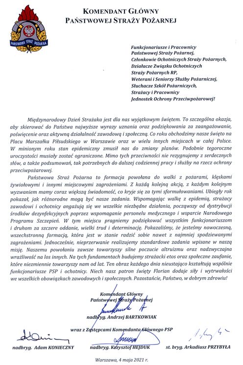 Życzenia Komendanta Głównego PSP z okazji Dnia Strażaka. 04.05.2021 Zdjęcia (1) Pokaż zdjęcie 1 z galerii.