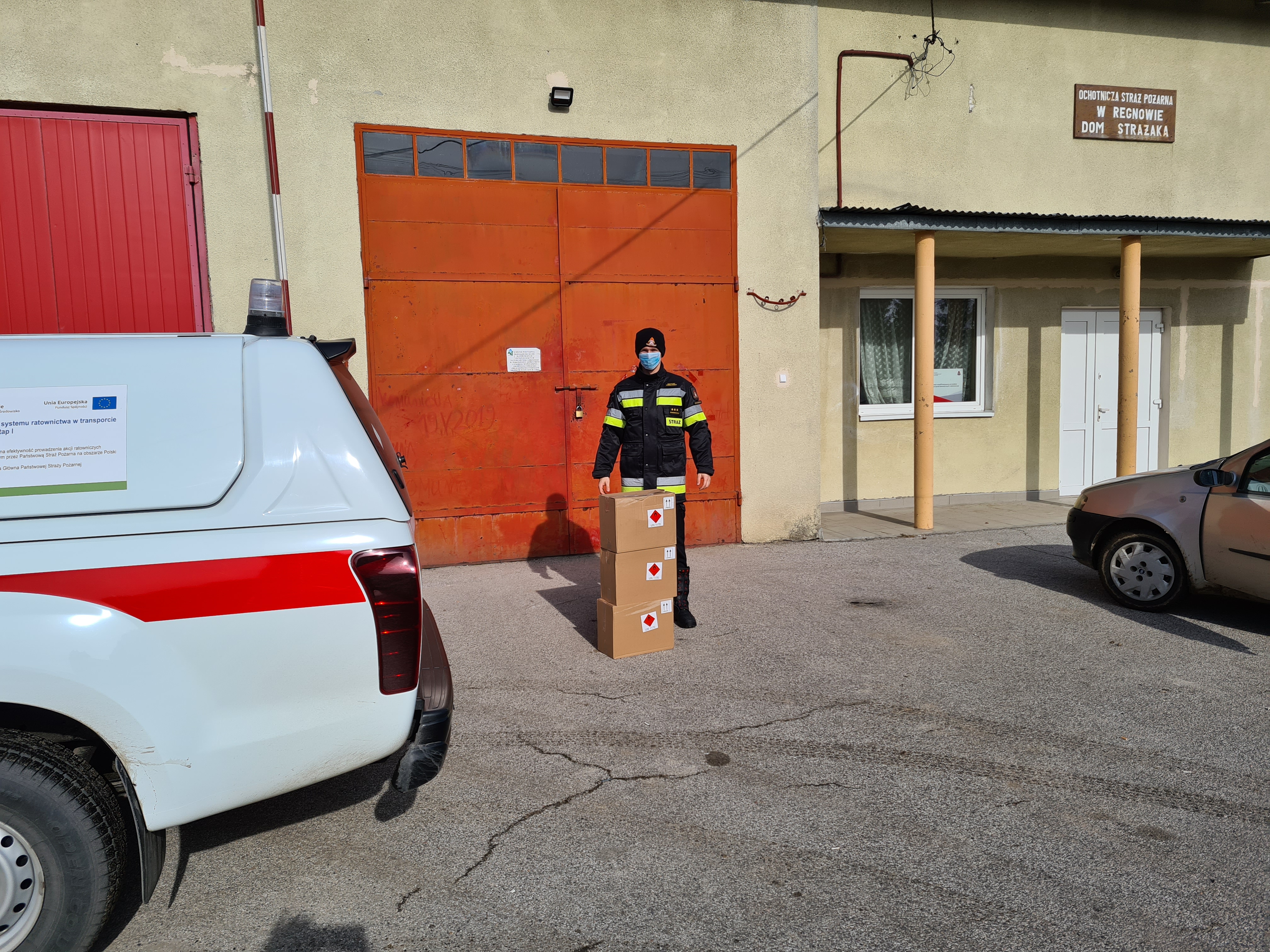 Dystrybucja środków do dezynfekcji do jednostek OSP w KSRG na terenie powiatu rawskiego.