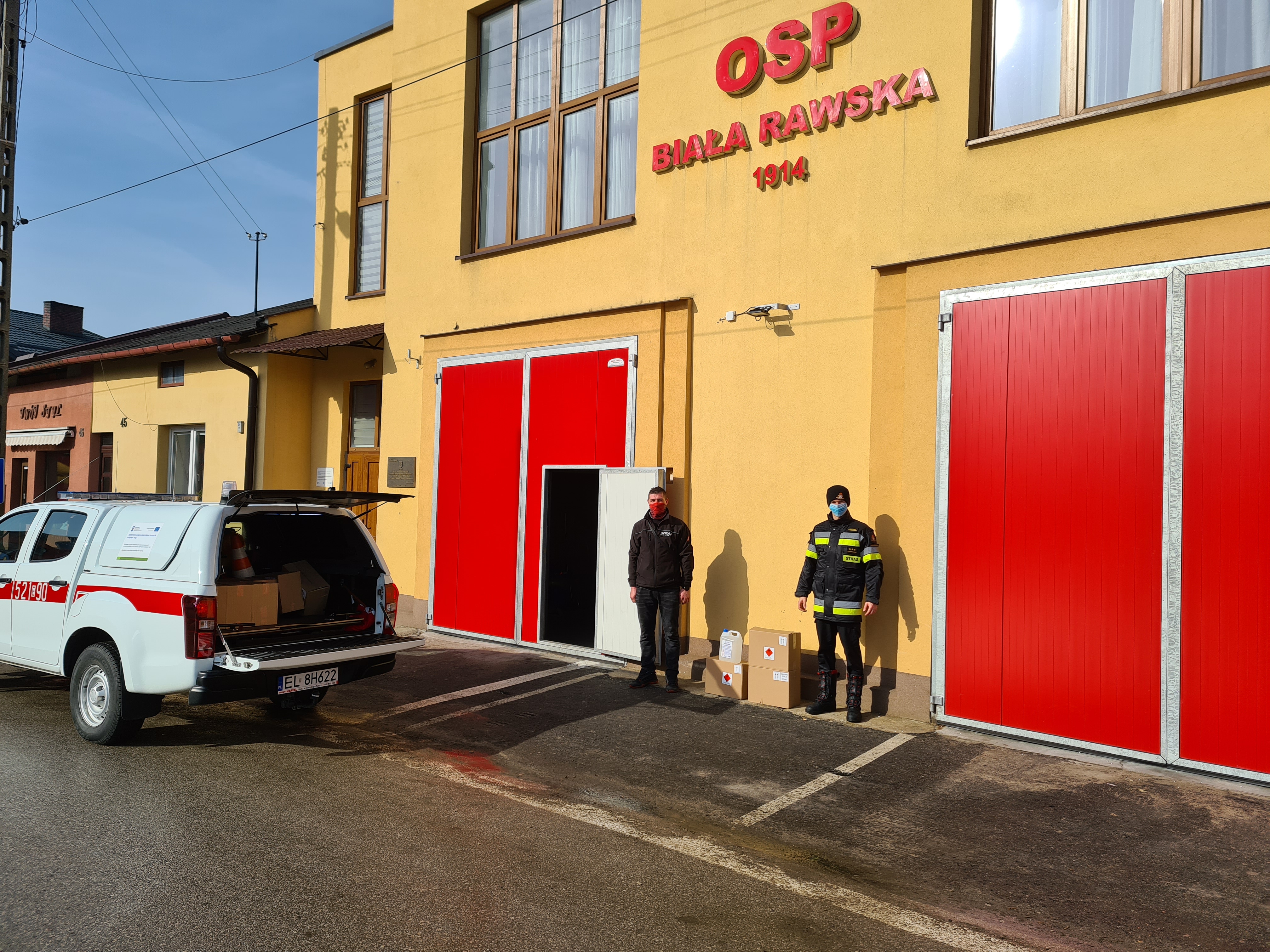 W dniu 24.02.2021 r. strażacy z Komendy Powiatowej PSP w Rawie Mazowieckiej przeprowadzili dystrybucję środków dezynfekcyjnych do jednostek OSP w KSRG na terenie powaitu rawskiego tj. OSP Biała Rawska, OSP Chodnów, OSP Sadkowice, OSP Regnów.