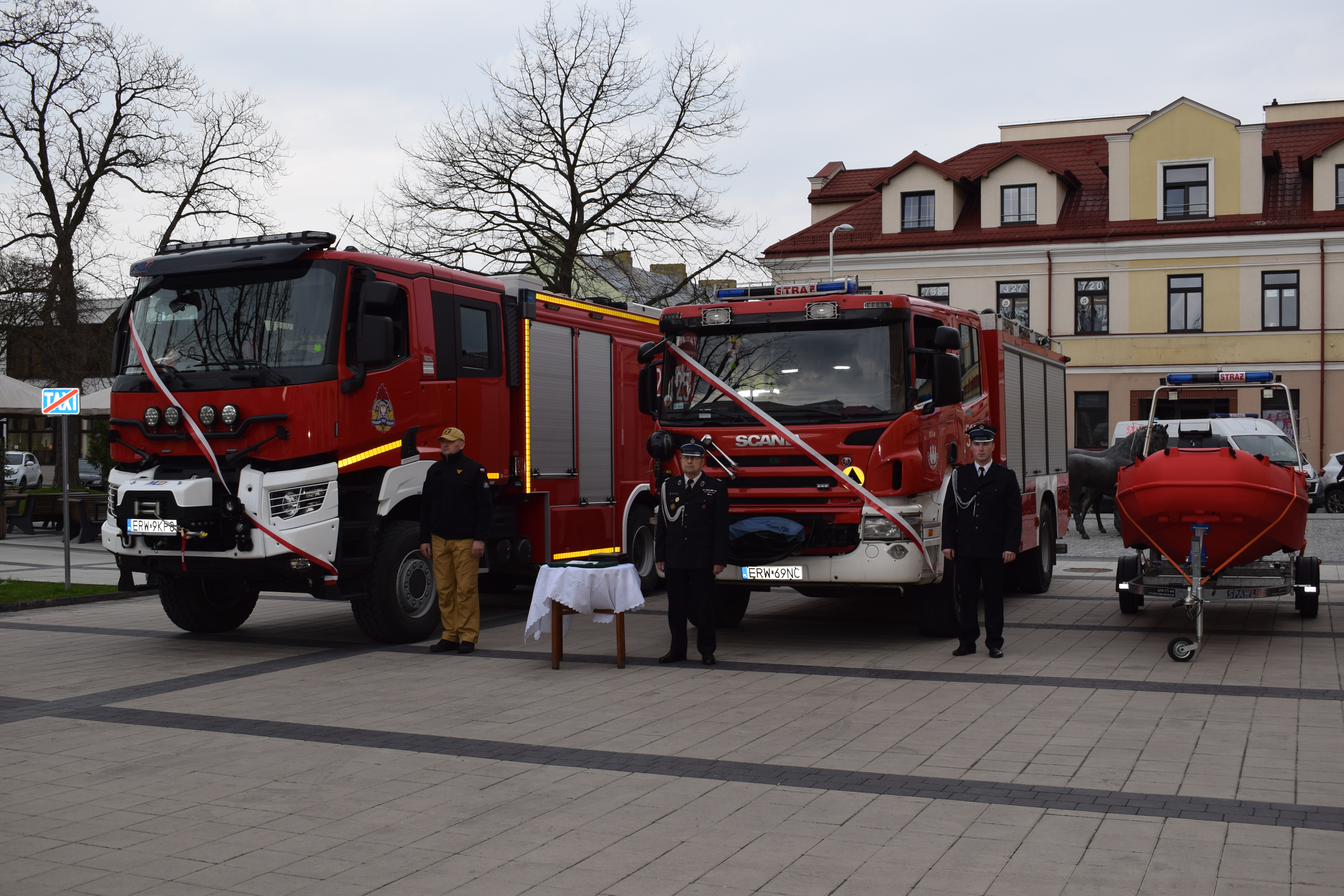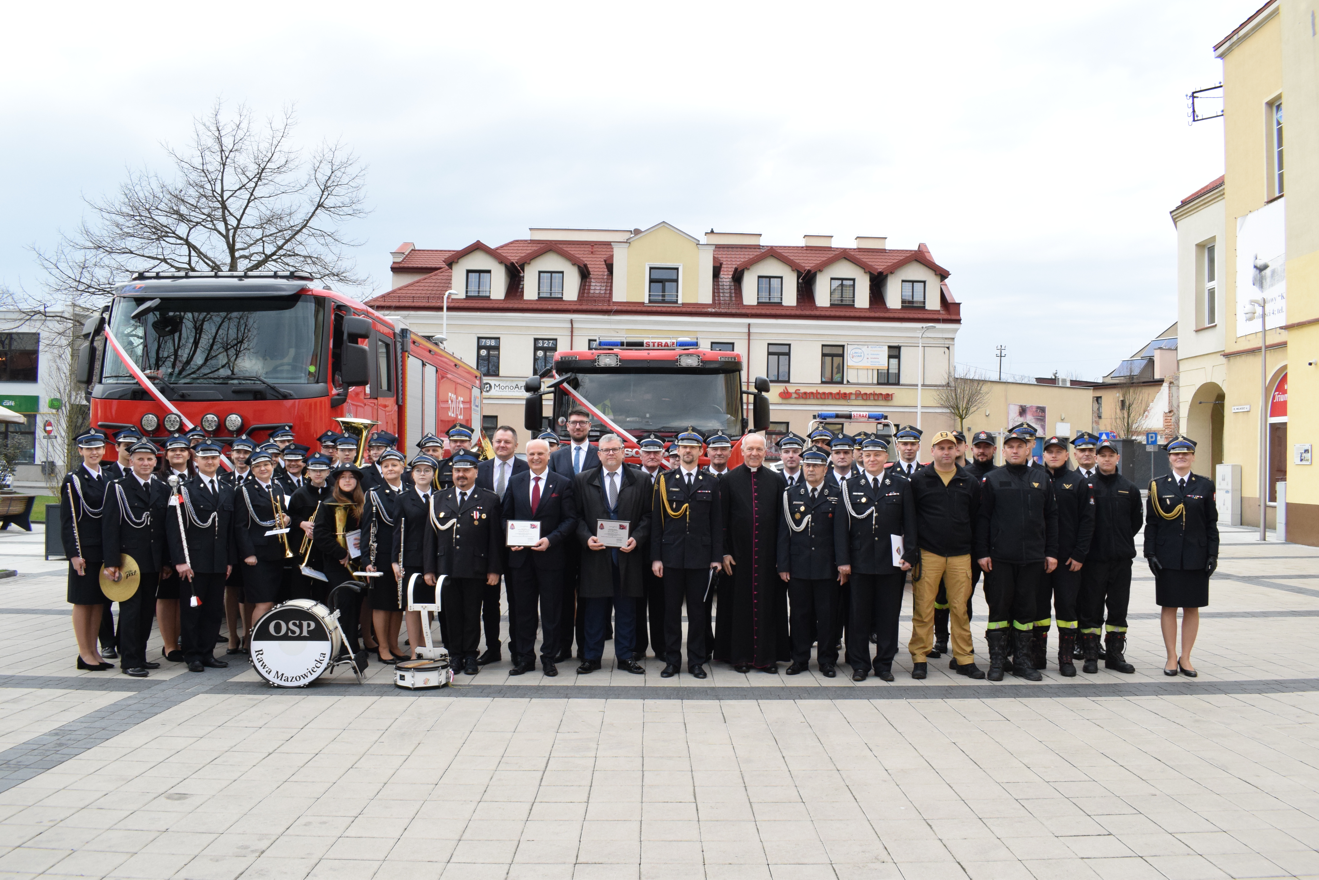 W sobotę, 23 marca 2024r. na placu przed remizą Ochotniczej Straży Pożarnej w Rawie Mazowieckiej odbyła się uroczystość przekazania i poświęcenia nowego, ciężkiego samochodu ratowniczo – gaśniczego marki GCBA 8/60 RENAULT dla Komendy Powiatowej Państwowej Straży Pożarnej w Rawie Mazowieckiej oraz przekazania i poświęcenia ciężkiego samochodu ratowniczo-gaśniczego GCBA 5/32 SCANIA dla Ochotniczej Straży Pożarnej w Rawie Mazowieckiej używanego dotychczas przez Jednostkę Ratowniczo-Gaśniczą PSP w Rawie Mazowieckiej.