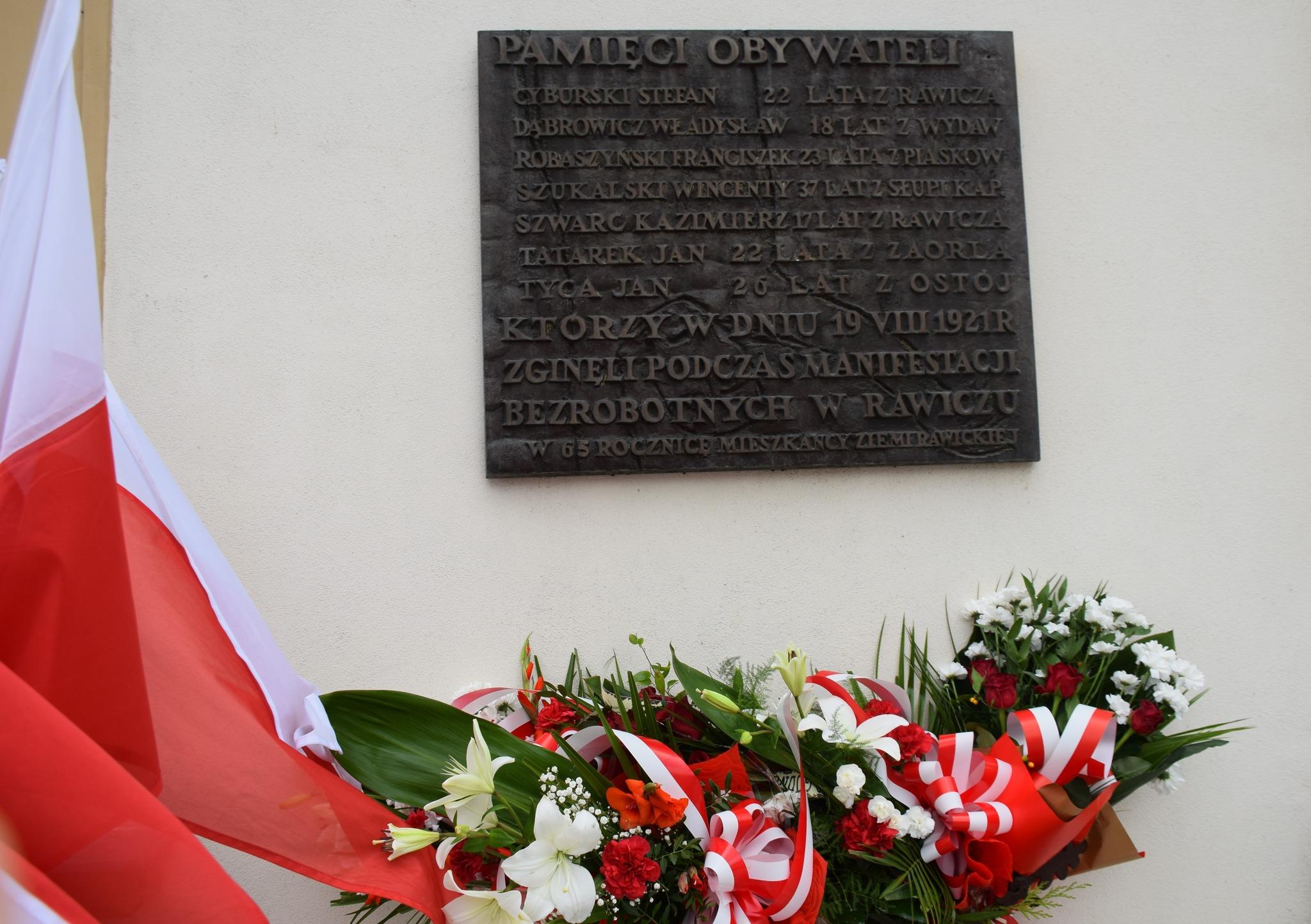 W poniedziałek 19 sierpnia 2024 r. delegacja rawickich służb mundurowych, przedstawiciele władz samorządowych oraz ugrupowań politycznych uczciły pamięć ofiar manifestacji robotniczych z 19.08.1921 r.