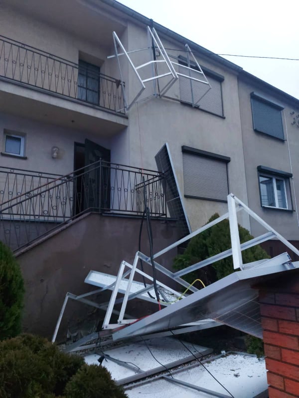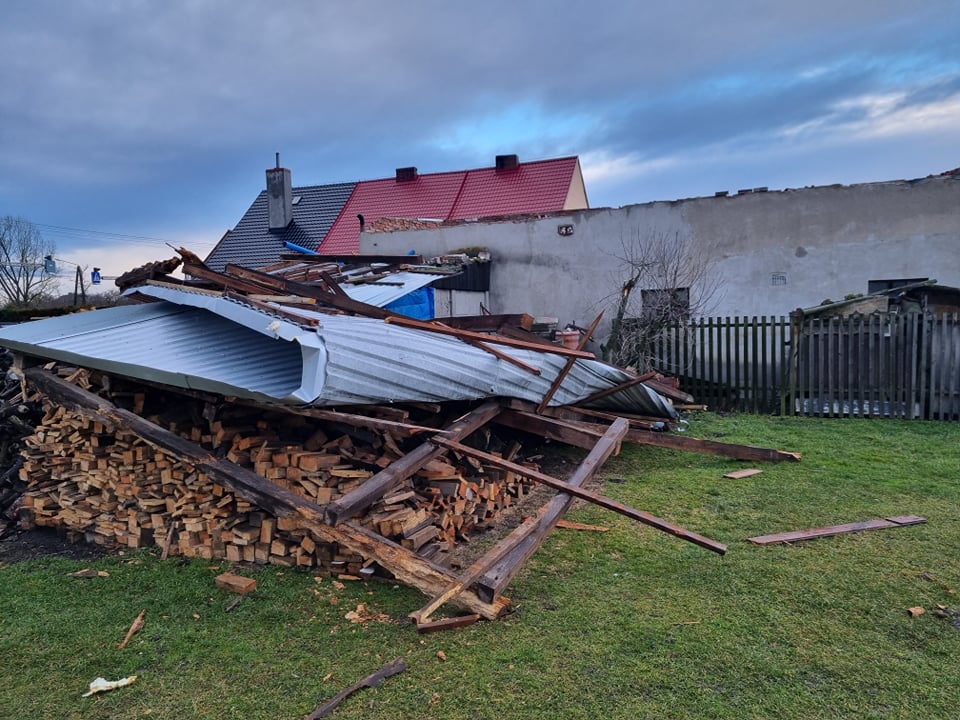 Dziewięć interwencji musiało zostać podjętych w związku z zerwanymi dachami, uszkodzonym pokryciem dachów, oderwanym opierzeniem, czy też zdmuchniętymi z dachu przez wiatr panelami fotowoltaicznymi.
