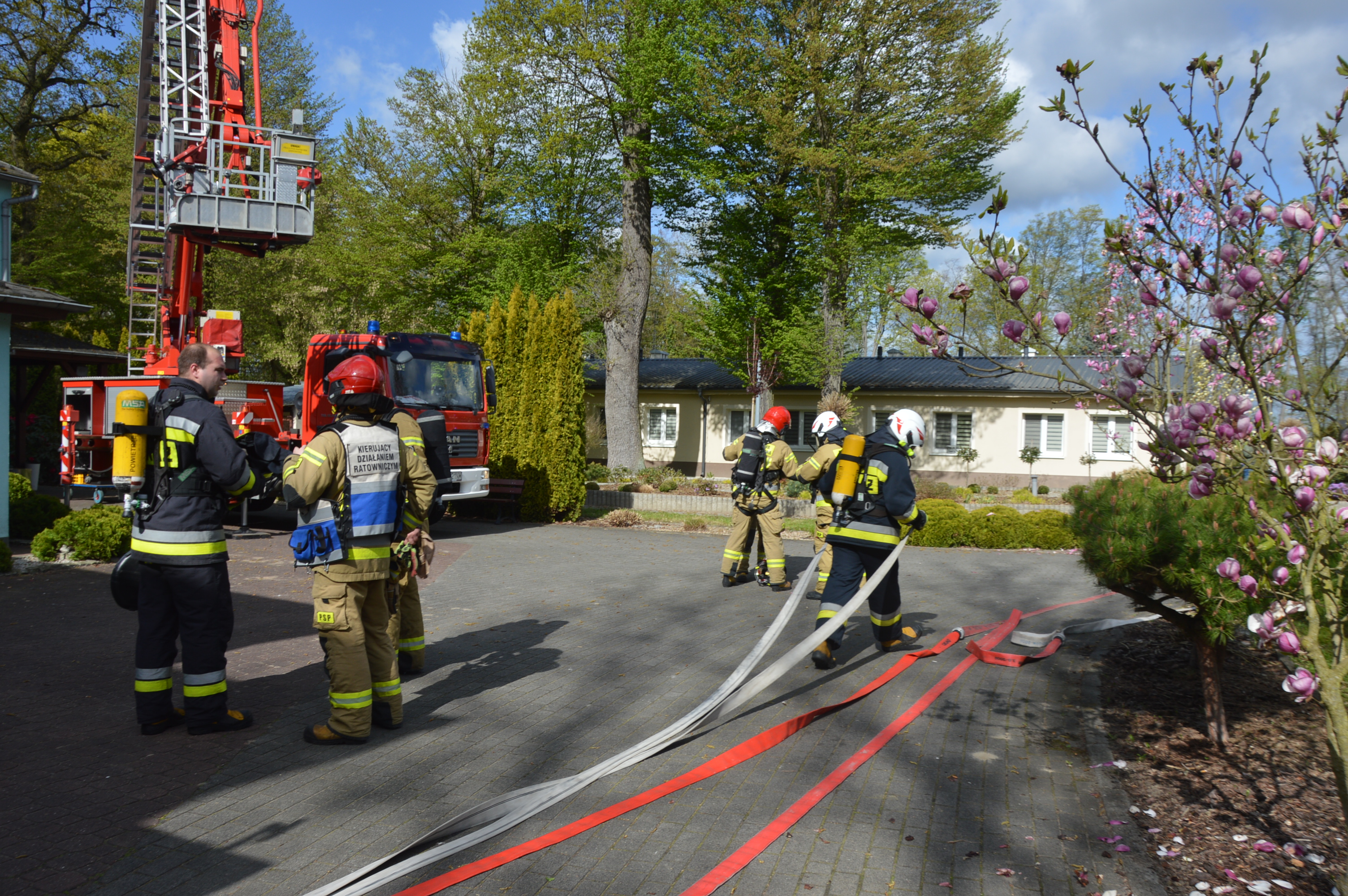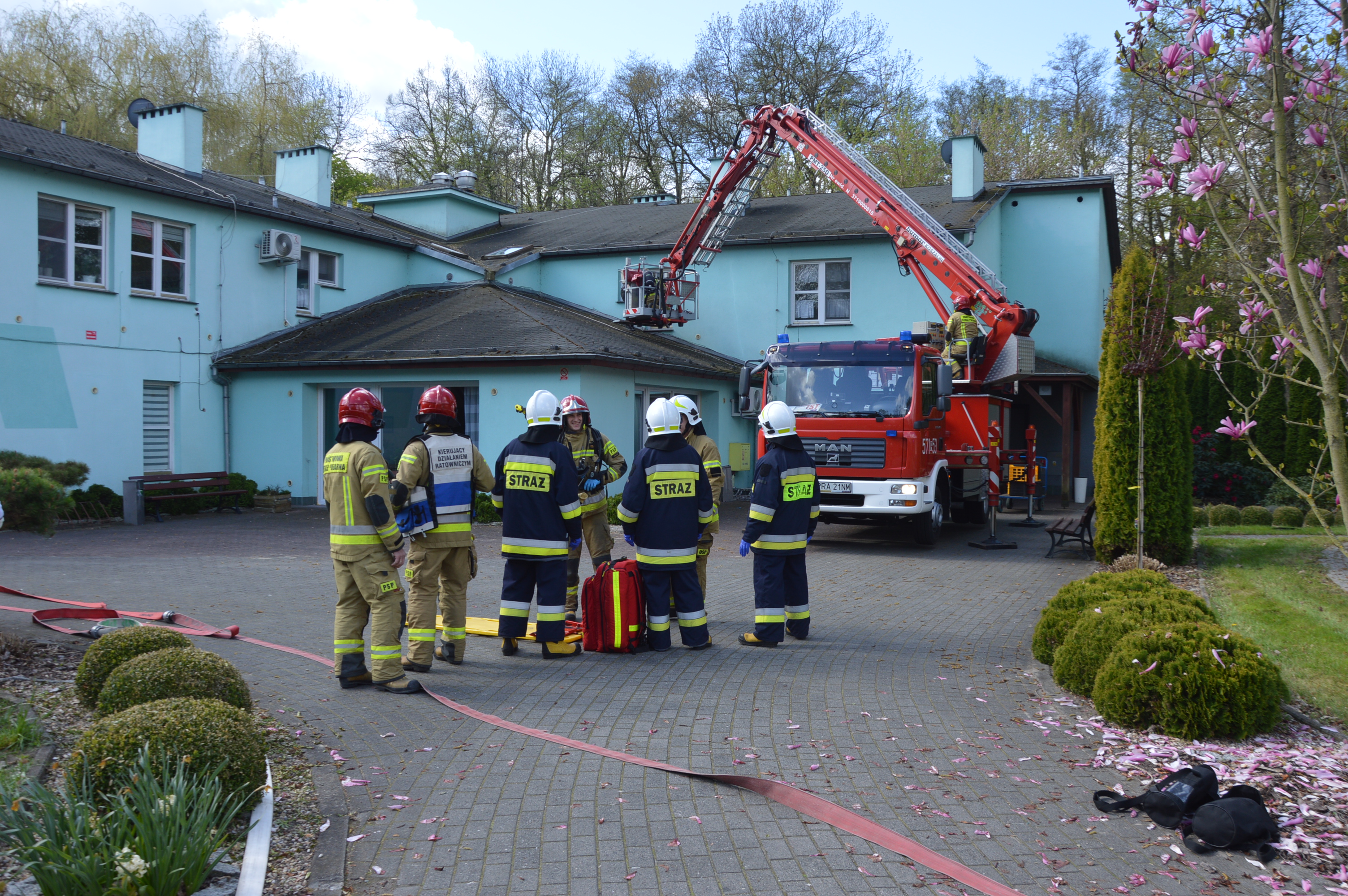 Sześć strażackich zastępów doskonaliło umiejętności ratowniczo-gaśnicze na terenie Domu Pomocy Społecznej w Osieku. Zorganizowano tam ćwiczenia, których scenariusz przewidywał pożar jednego z obiektów, w wyniku którego zostało poszkodowanych lub zagrożonych kilku pensjonariuszy i pracowników.