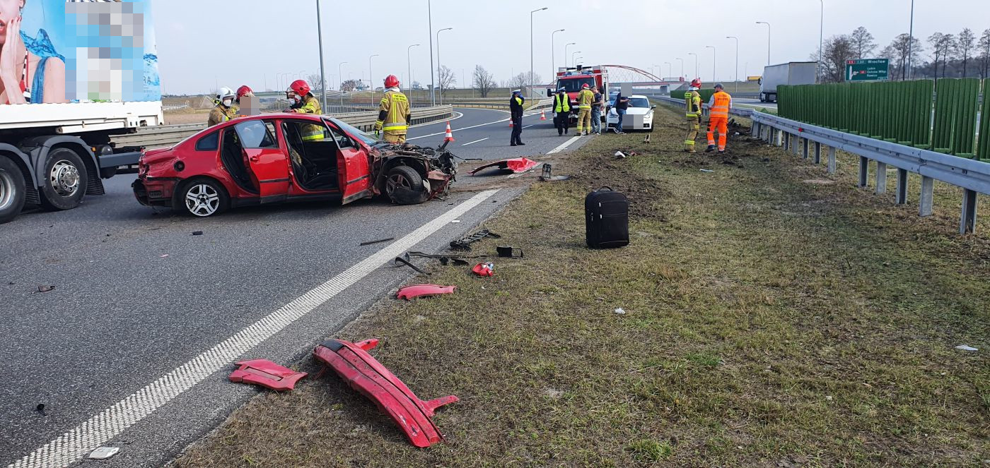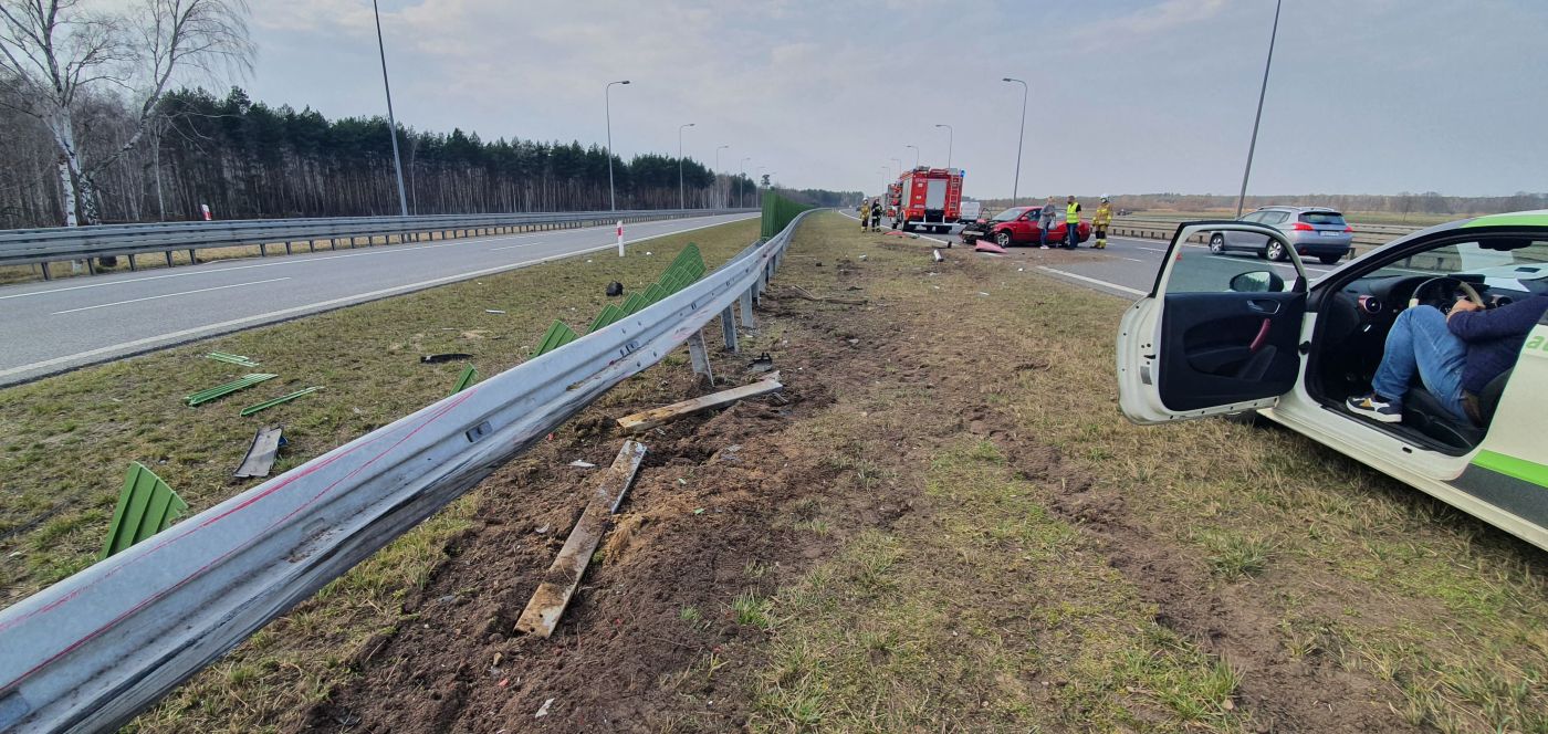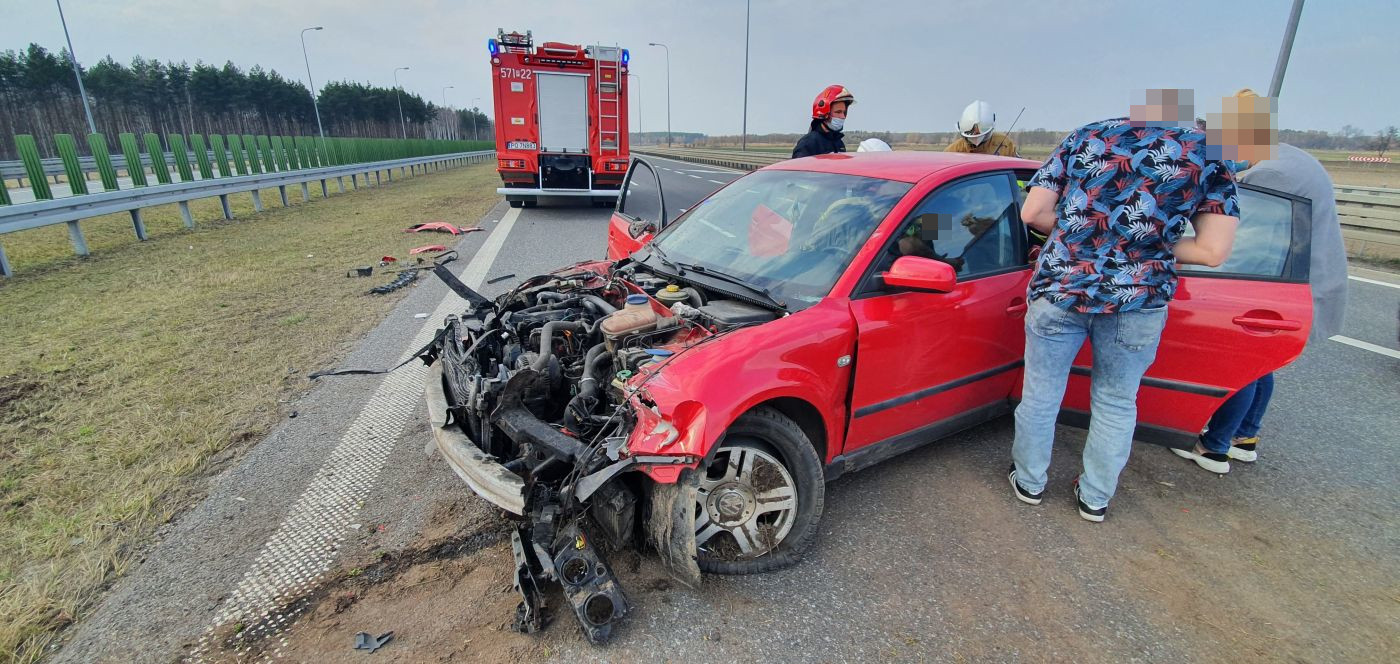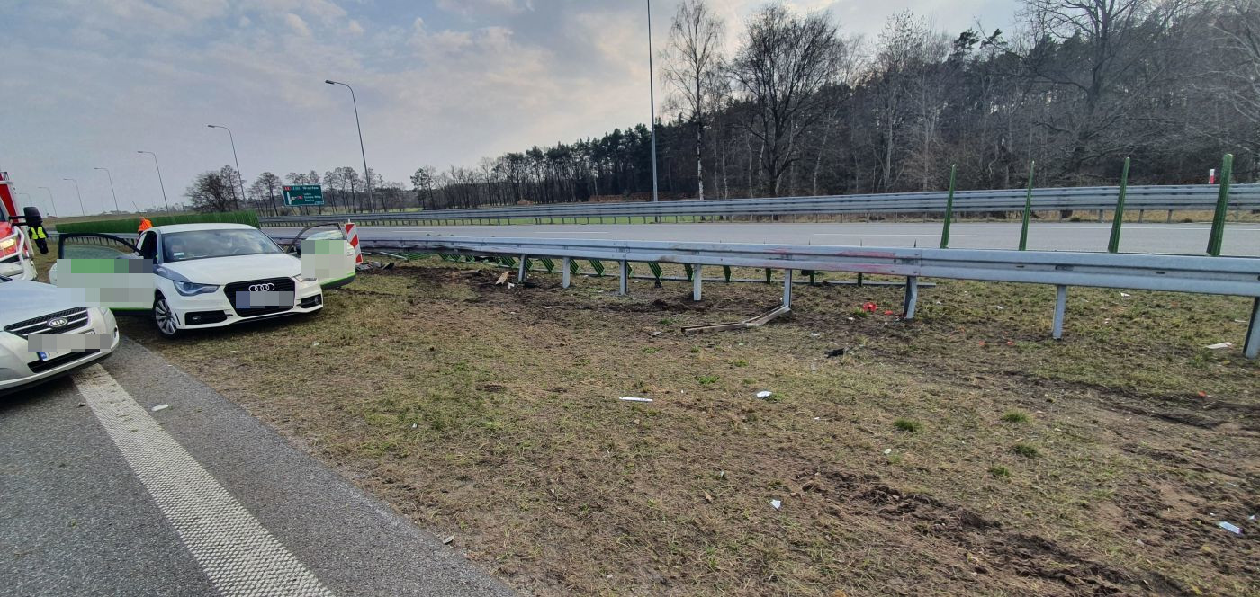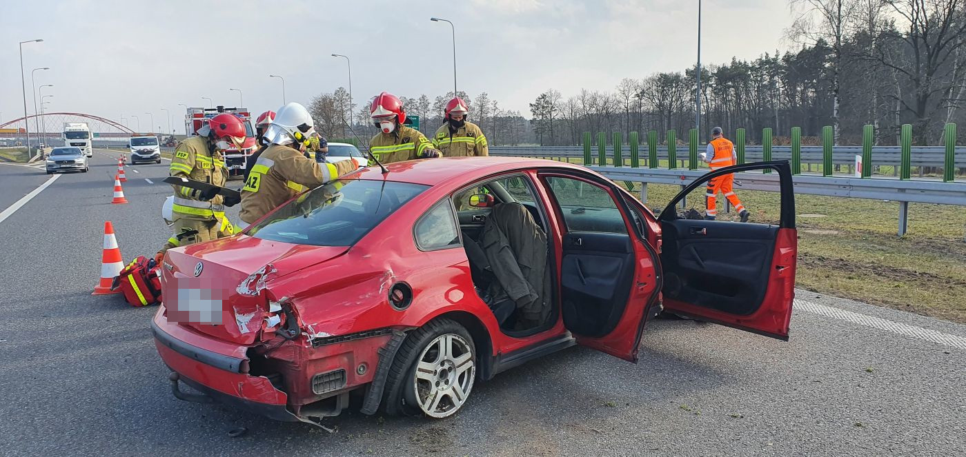 Przed godziną 15.00 kierujący volkswagenem passatem, jak ustalili policjanci, stracił panowanie nad pojazdem, w wyniku czego samochód wypadł z drogi, uderzył w barierę energochłonną, odbił się od niej i wrócił na jezdnię, blokując pas ruchu.