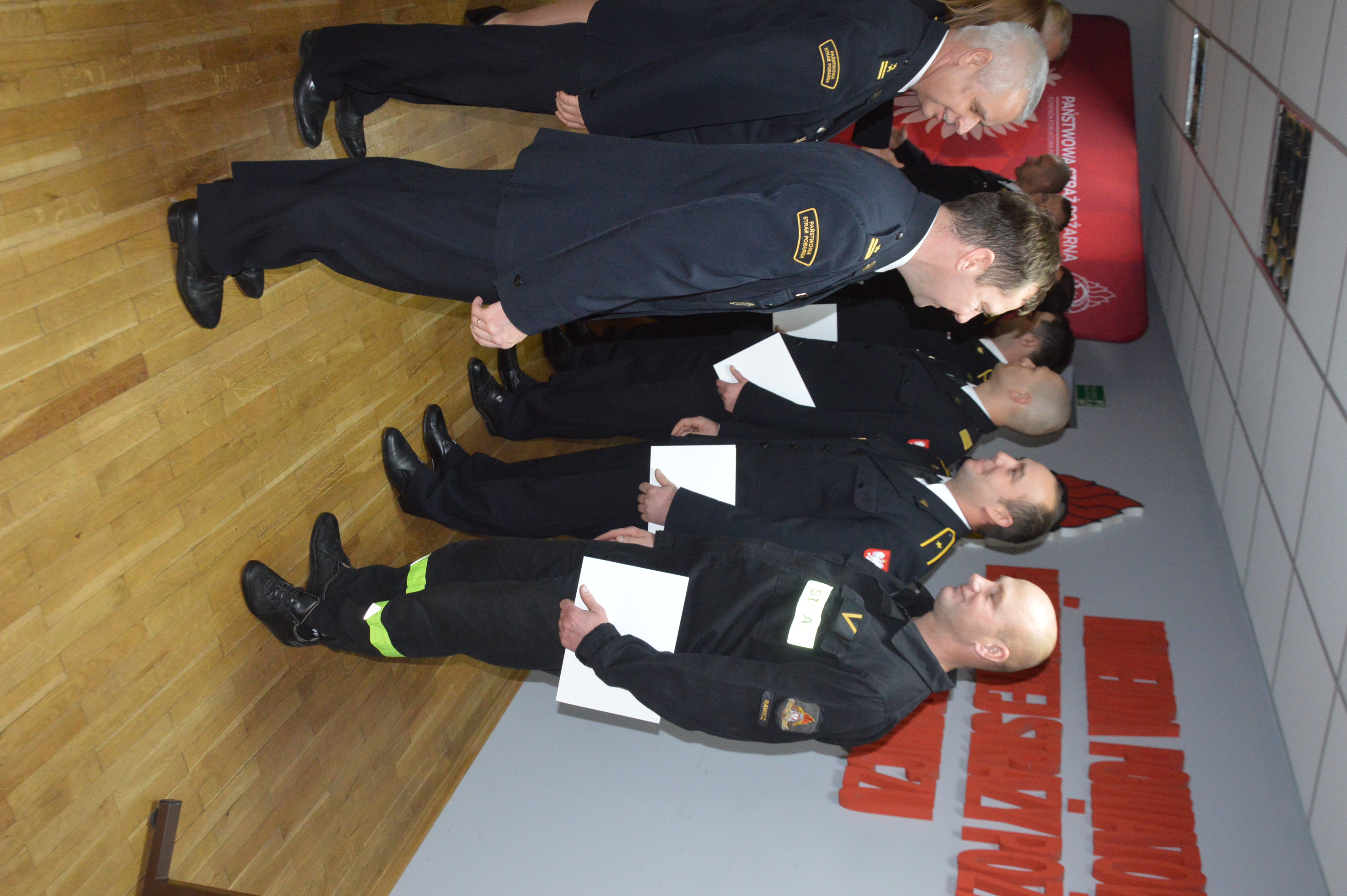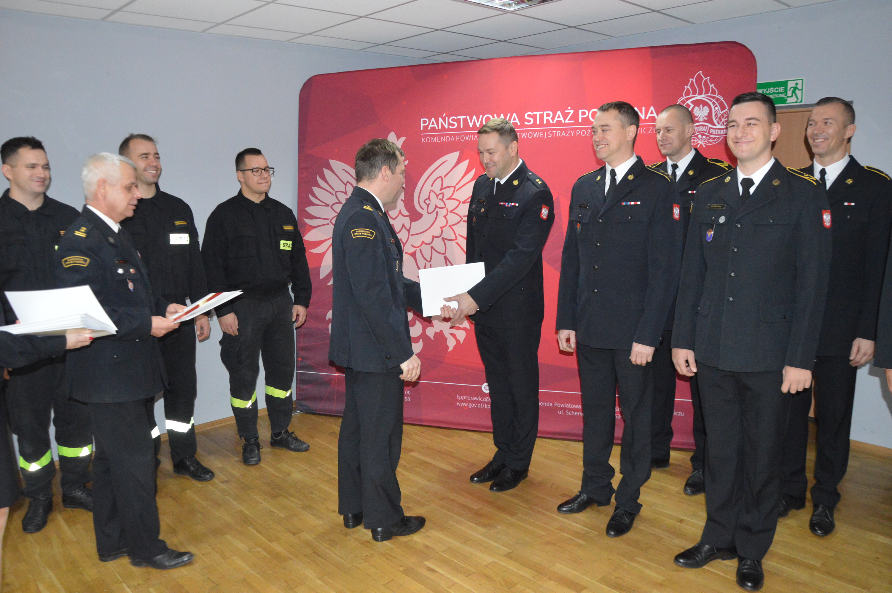 Stosowane decyzje wraz z gratulacjami niżej wymienionym strażakom wręczył mł. bryg. Marcin Wysokiński, komendant powiatowy PSP w Rawiczu wraz z zastępcą, bryg. Krzysztofem Skrzypczakiem