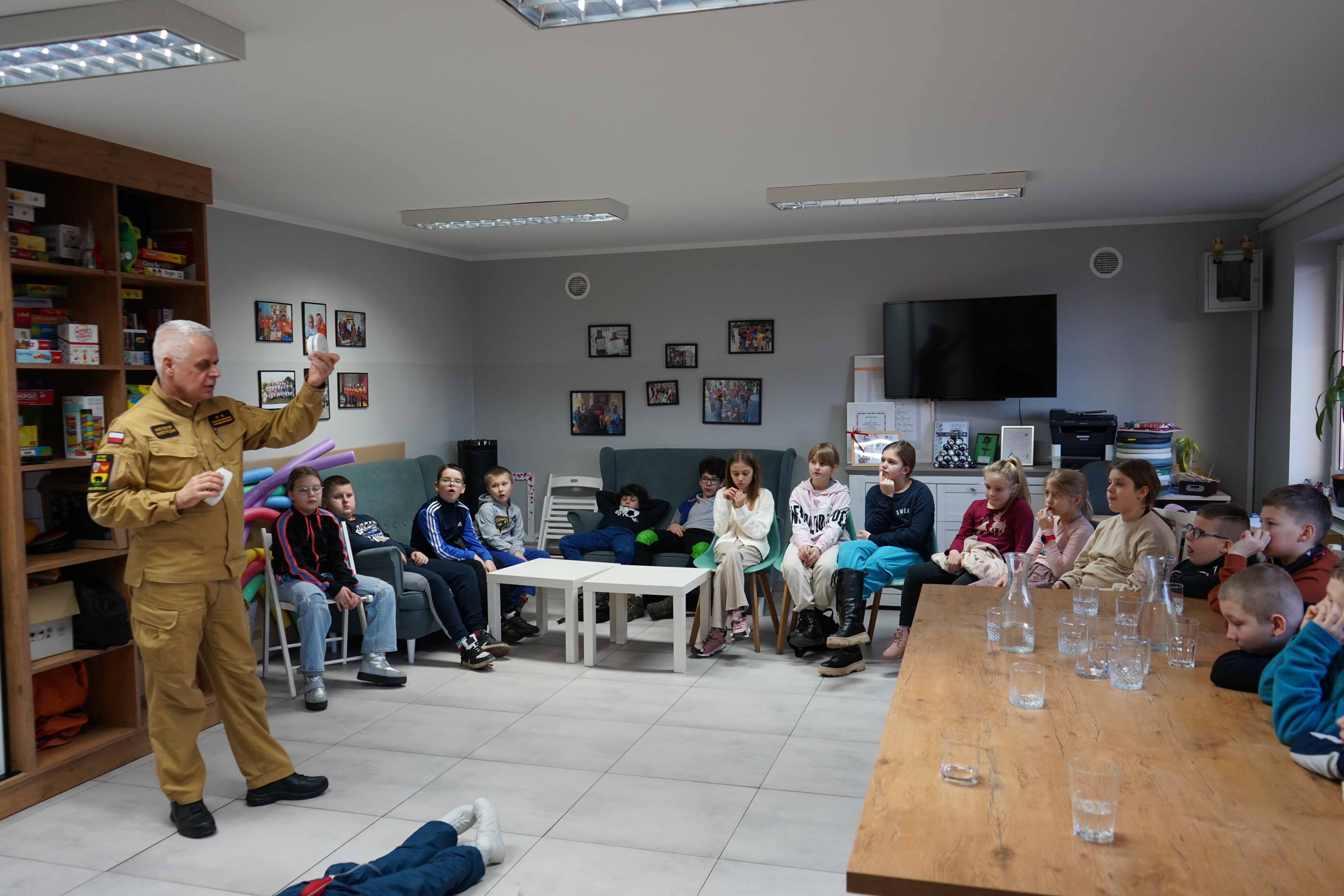Jak bezpiecznie spędzić ferie, w jaki sposób unikać zagrożeń i jak reagować będąc świadkiem nieszczęścia, o tym z uczestnikami „Bezpiecznych Ferii” zorganizowanych przez rawickie Centrum Usług Społecznych rozmawiali strażacy z Komendy Powiatowej PSP w Rawiczu.