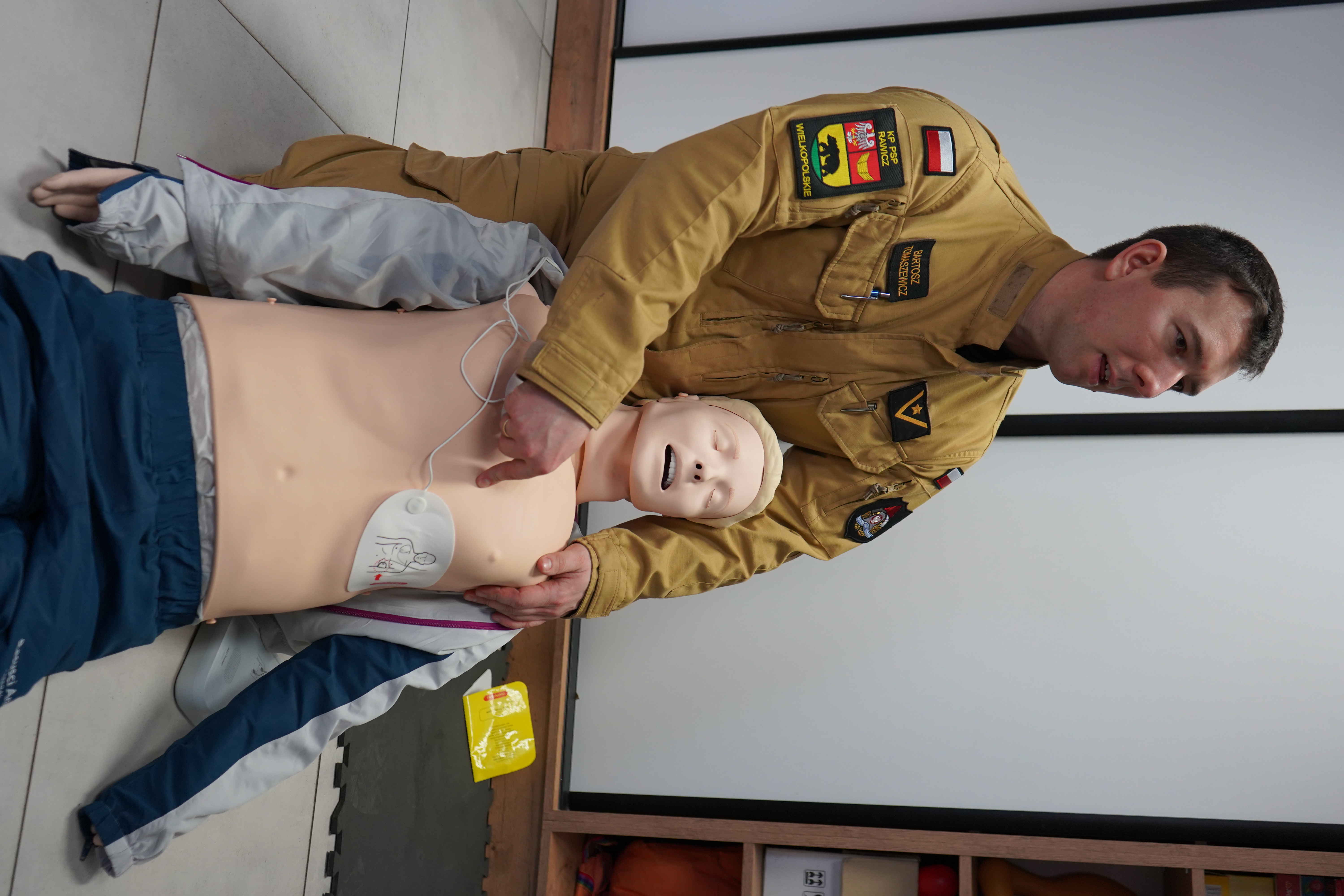Przekazali także wiedzę dot. wykorzystania automatycznego defibrylatora zewnętrznego AED w walce o życie człowieka.