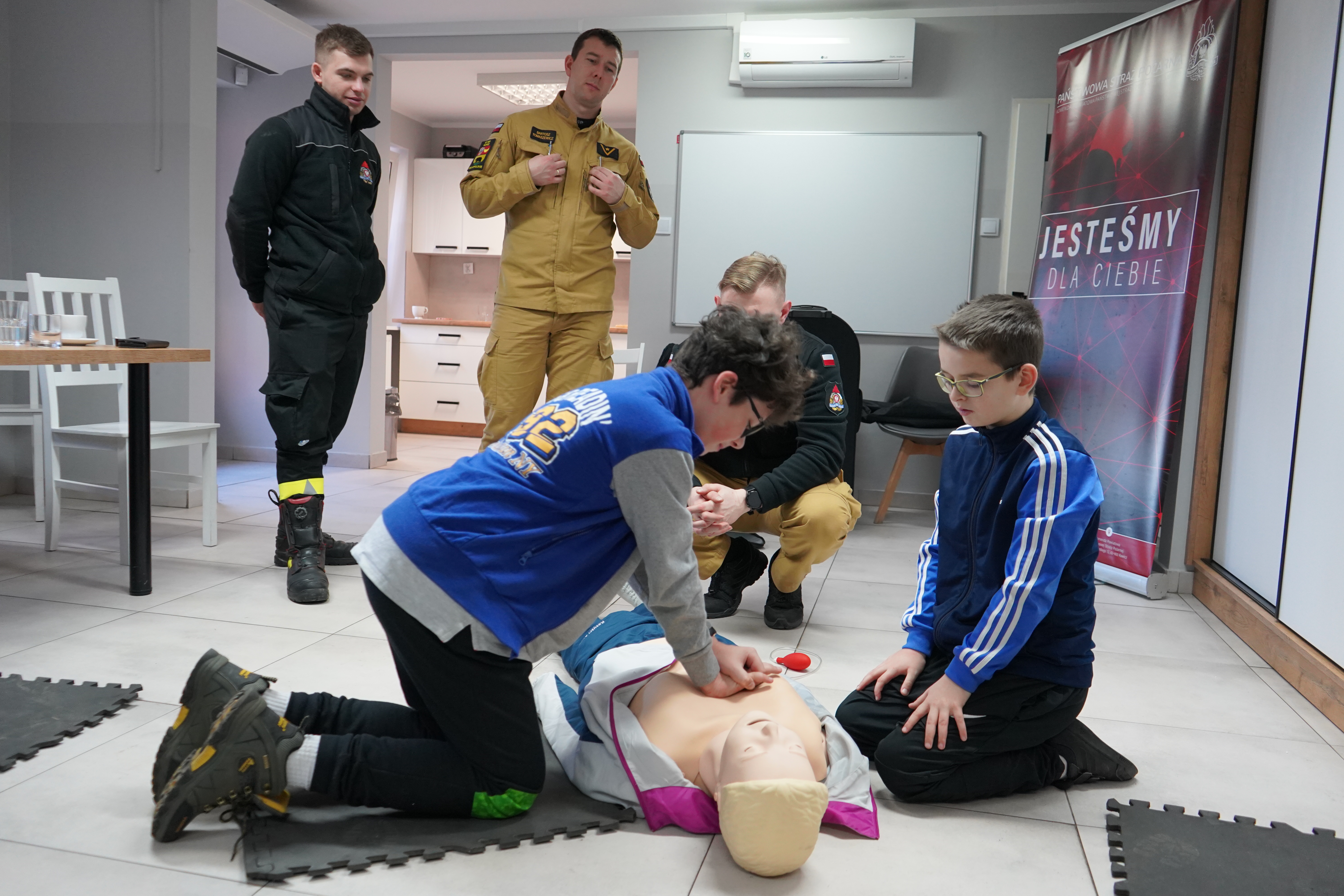 Ponadto uczyli w jaki sposób ocenić stan osoby poszkodowanej, jak ułożyć ją w pozycji bezpiecznej, jak wykonywać uciski klatki piersiowej oraz jakie informacje należy przekazać operatorowi numeru 112 podczas wzywania służb ratunkowych.