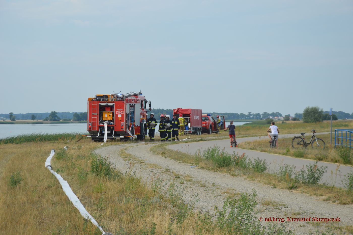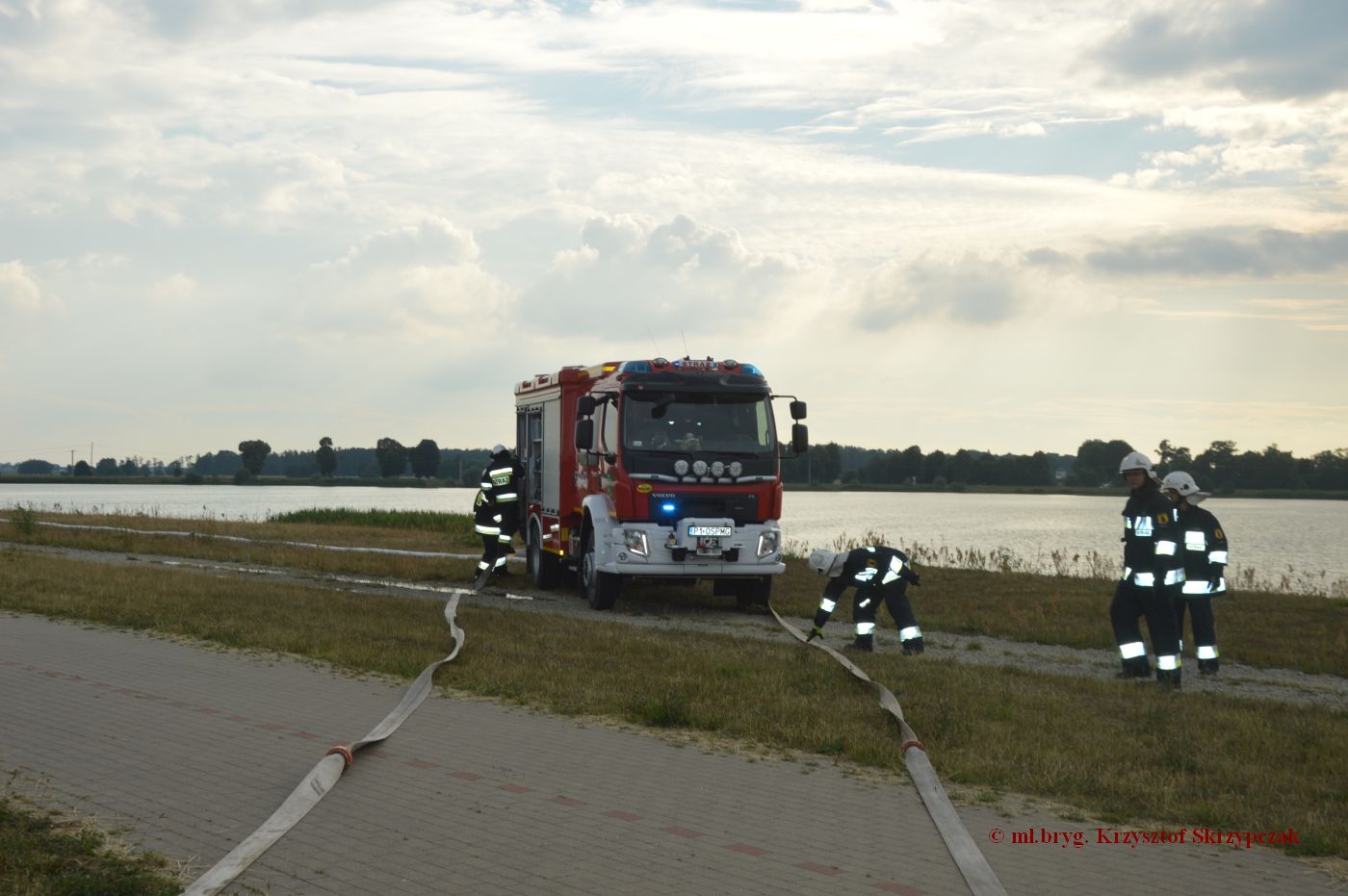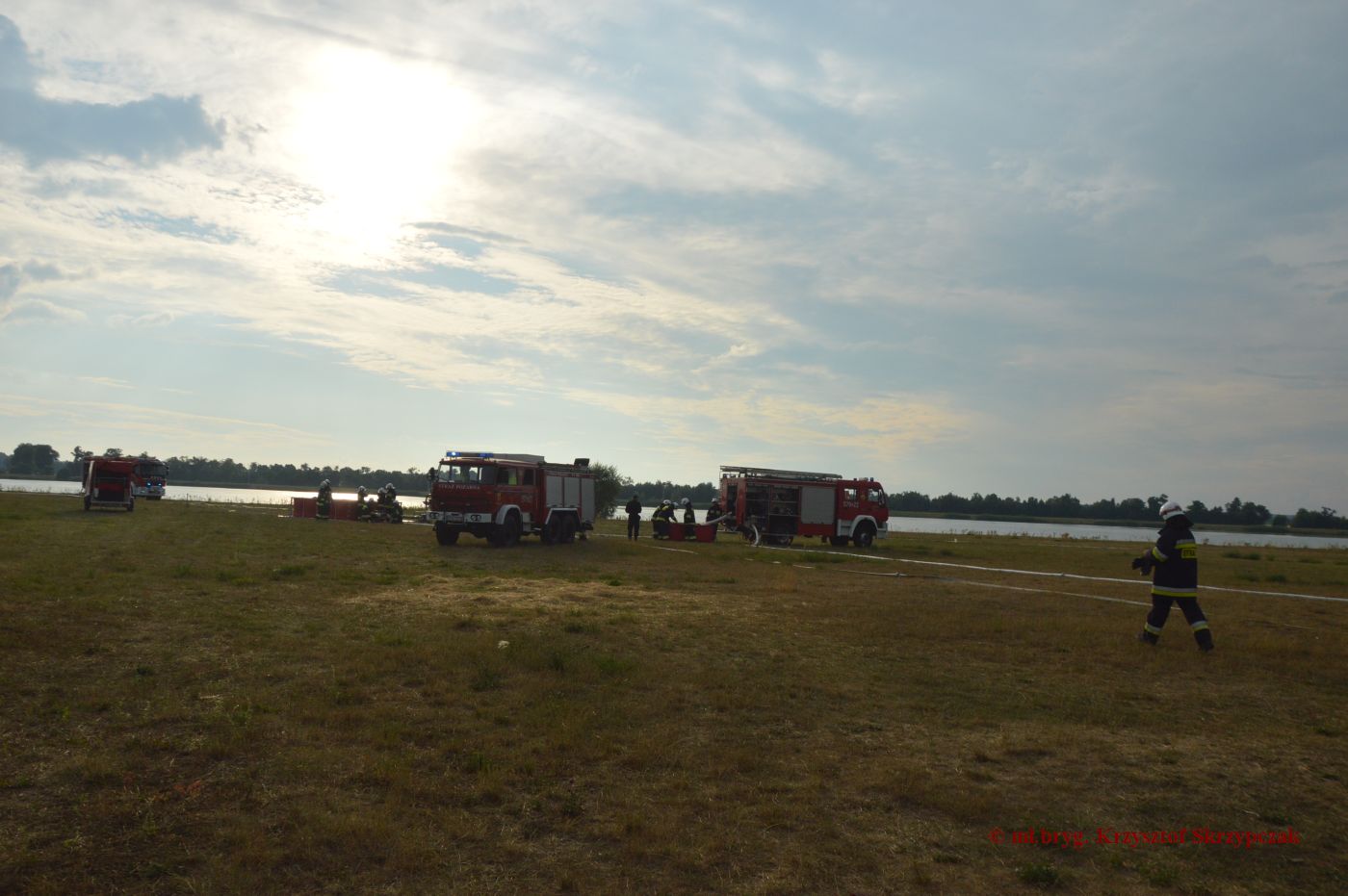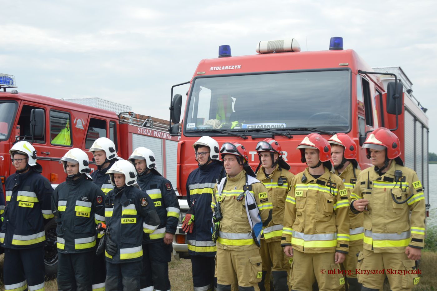 Ćwiczenia, które zorganizowała Komenda Powiatowa Państwowej Straży Pożarnej w Rawiczu we współpracy z władzami samorządowymi gminy Jutrosin oraz Państwowym Gospodarstwem Wodnym Wody Polskie, odbyły się nad zalewem w Jutrosinie.