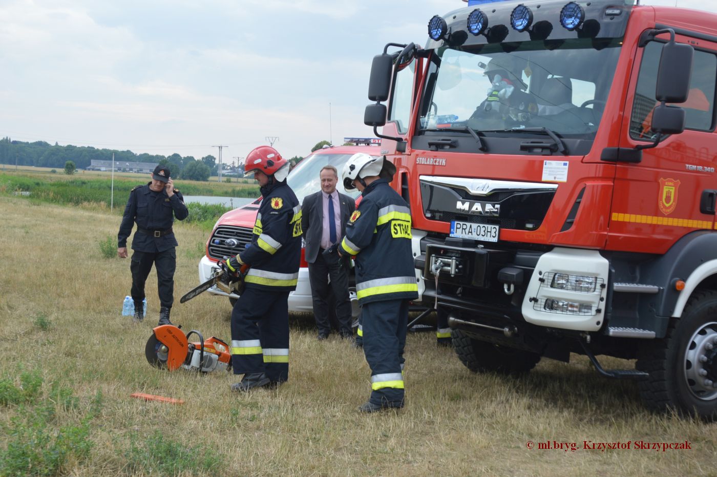 Zanim strażacy przystąpili do realizacji założenia praktycznego, zespół funkcjonariuszy Państwowej Straży Pożarnej pod przewodnictwem mł. bryg. Krzysztofa Skrzypczaka, zastępcy komendanta powiatowego PSP w Rawiczu przeprowadził inspekcję gotowości operacyjnej sił i środków przybyłych do Jutrosina.