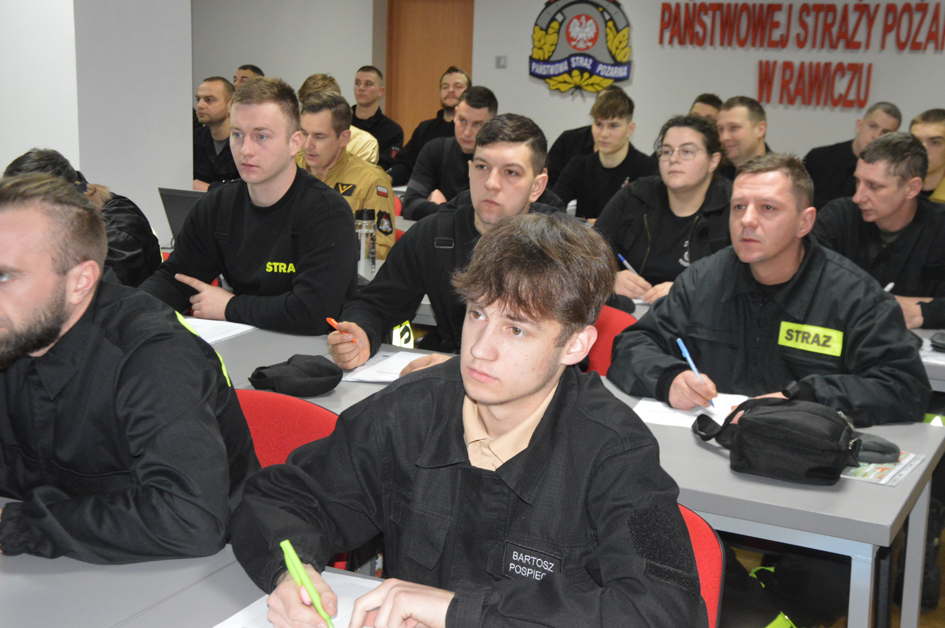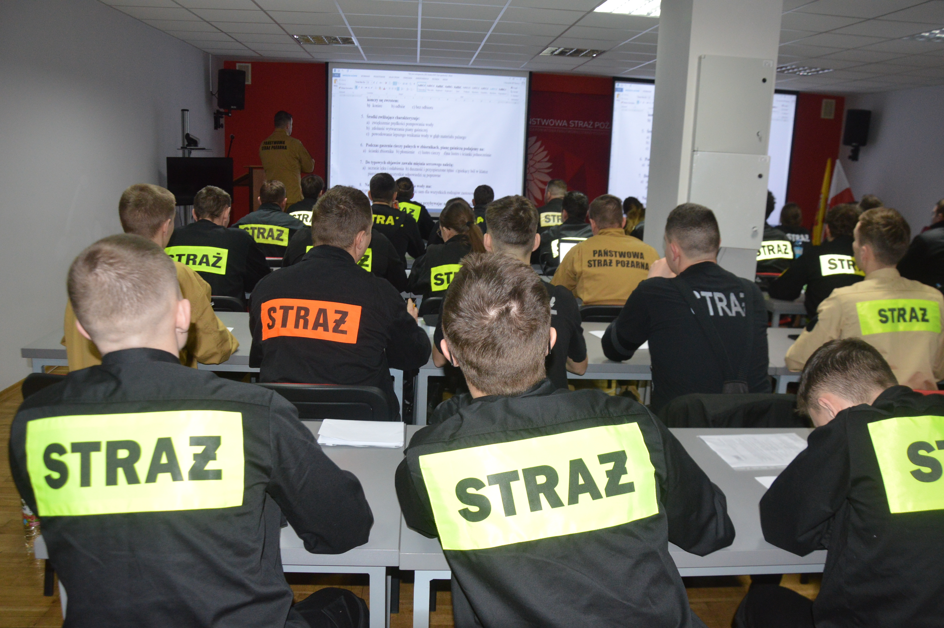 Do egzaminu przystąpiło 44 uczestników, których zadaniem było rozwiązanie testu pisemnego składającego się z 70 pytań obejmujących treści szkoleniowe. Wiedzę wszystkich osób biorących udział w egzaminie komisja egzaminacyjna oceniła pozytywnie. Oznacza to, że mogą przystąpić do drugiego etapu, czyli zajęć praktycznych, wśród których jest też test w komorze dymowej.