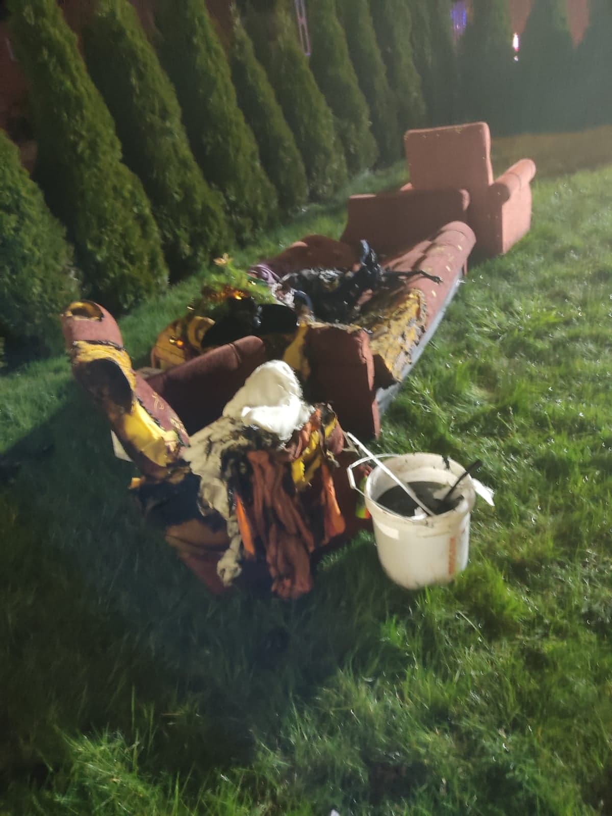 Strażacy wyposażeni w aparaty powietrzne, przeznaczone do ochrony układu oddechowego, wynieśli poza budynek tlącą się sofę oraz inne przedmioty znajdujące się w pokoju.