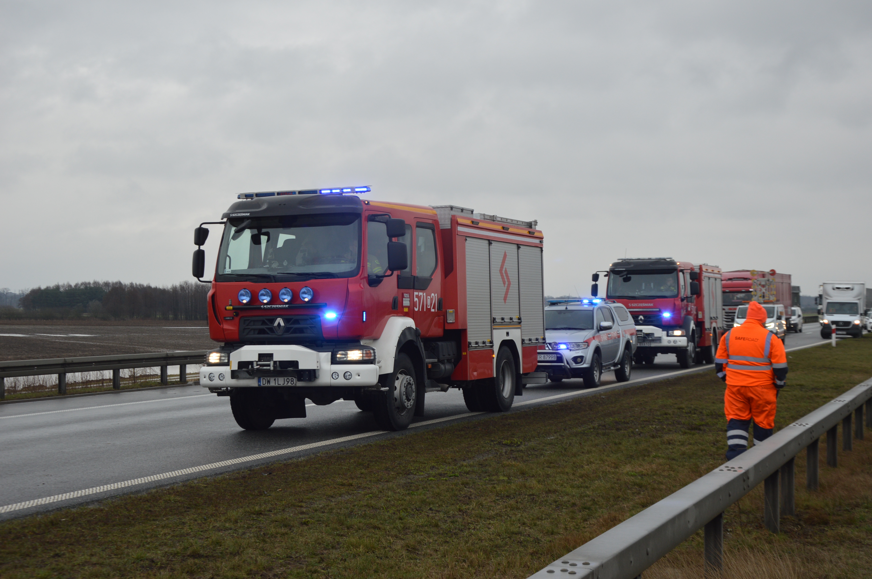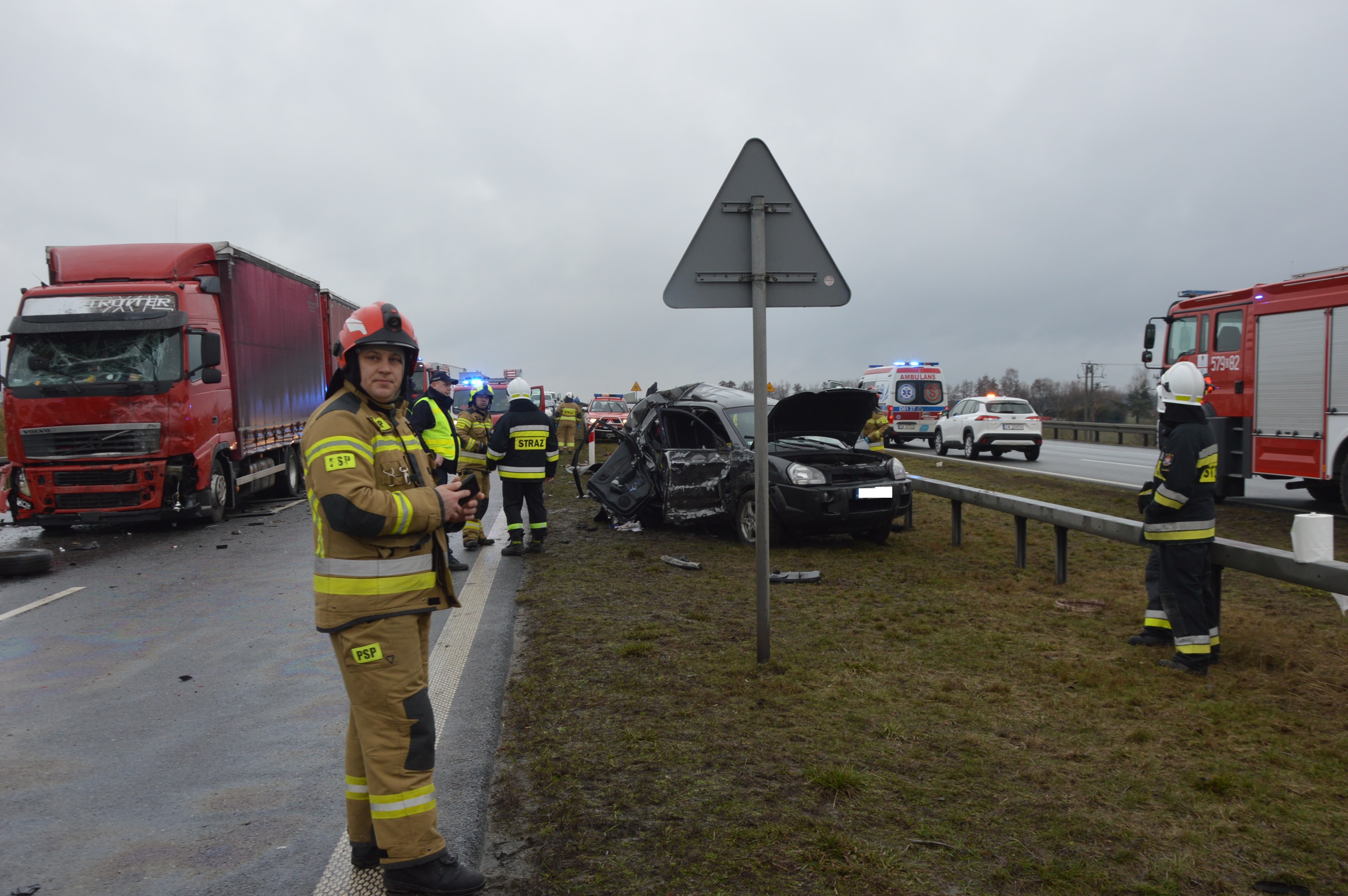 Po dojeździe, strażacy z Komendy Powiatowej PSP w Rawiczu potwierdzili, że na 112 km „ekspresówki” w kierunku Wrocławia ma miejsce wypadek, w którym uczestniczą trzy auta osobowe, „dostawczak” oraz samochód ciężarowy z przyczepą. Wewnątrz samochodu marki hyundai tucson pozostaje nieprzytomny, kilkunastoletni pasażer. Po zabezpieczeniu miejsca zdarzenia ratownicy używając specjalistycznych narzędzi hydraulicznych wykonali dostęp do osoby poszkodowanej, udzielili jej kwalifikowanej pierwszej pomocy oraz przekazali zespołowi ratownictwa medycznego.