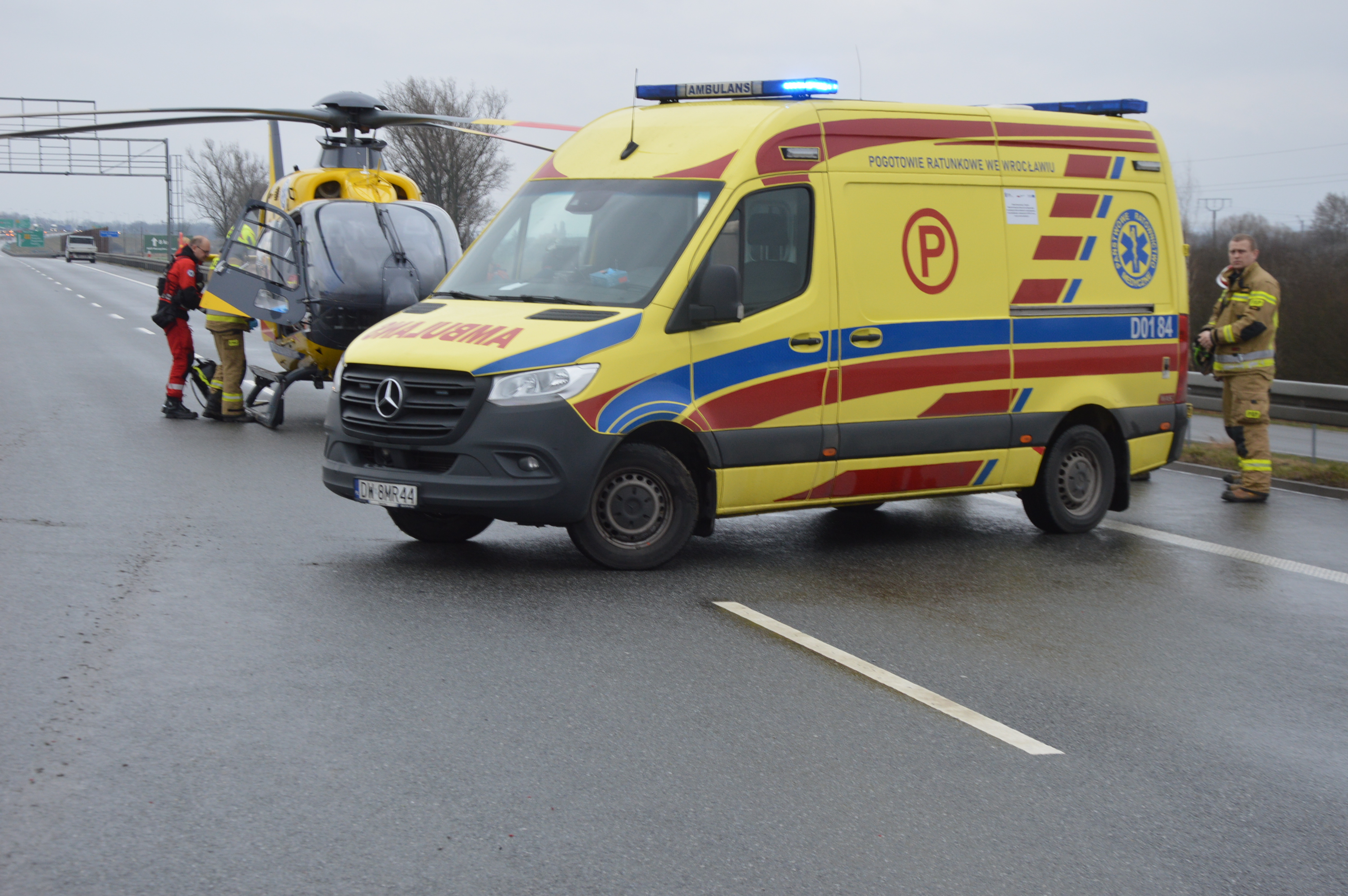 Pozostałe czynności związane z usuwaniem skutków wypadku wykonywali strażacy z powiatu trzebnickiego.