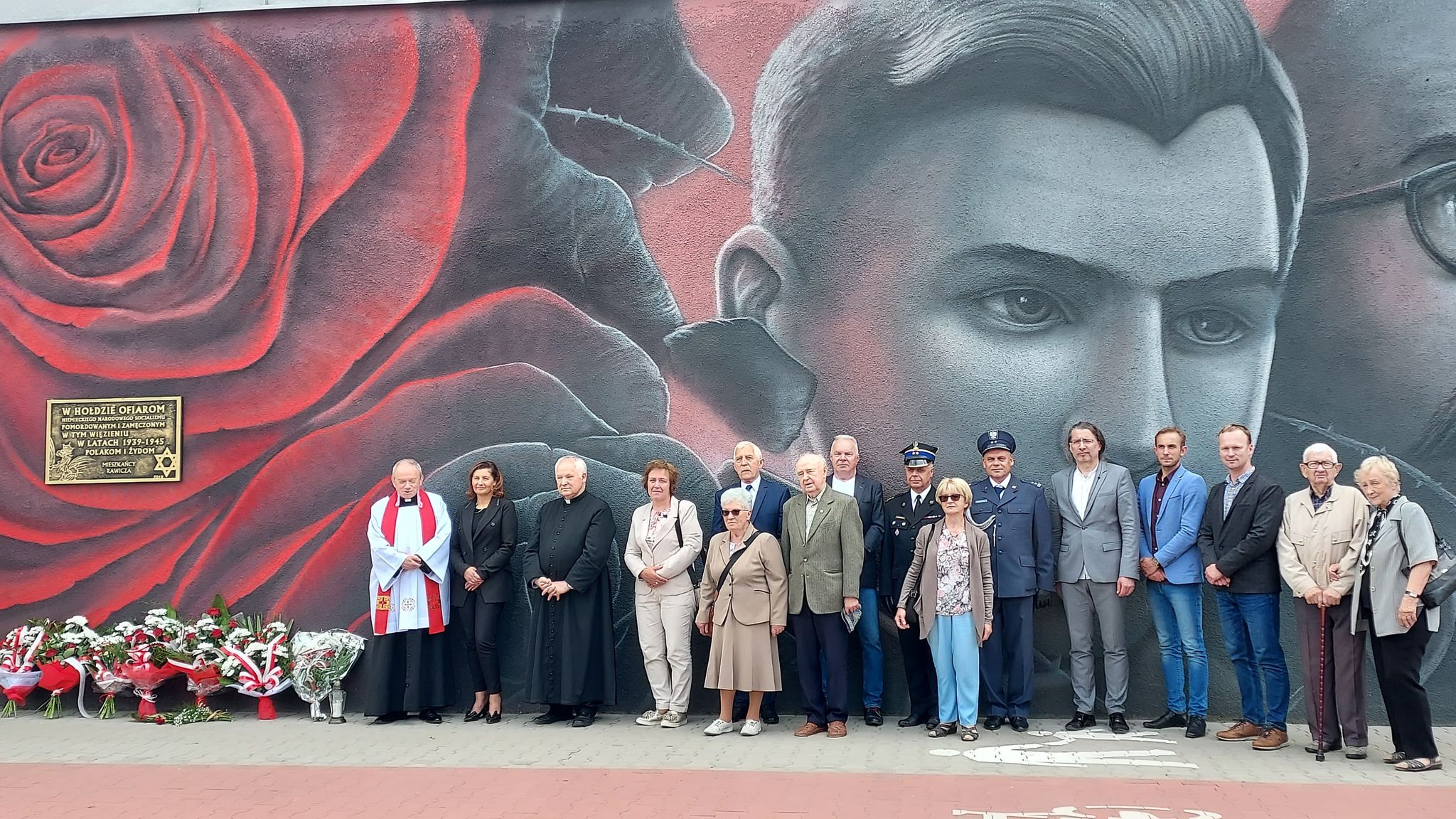 We wtorek, 14 czerwca 2022 r. przedstawiciele władz samorządowych, służb mundurowych i organizacji społecznych złożyli wiązanki kwiatów pod tablicą pamiątkową znajdującą się na murze Zakładu Karnego w Rawiczu.