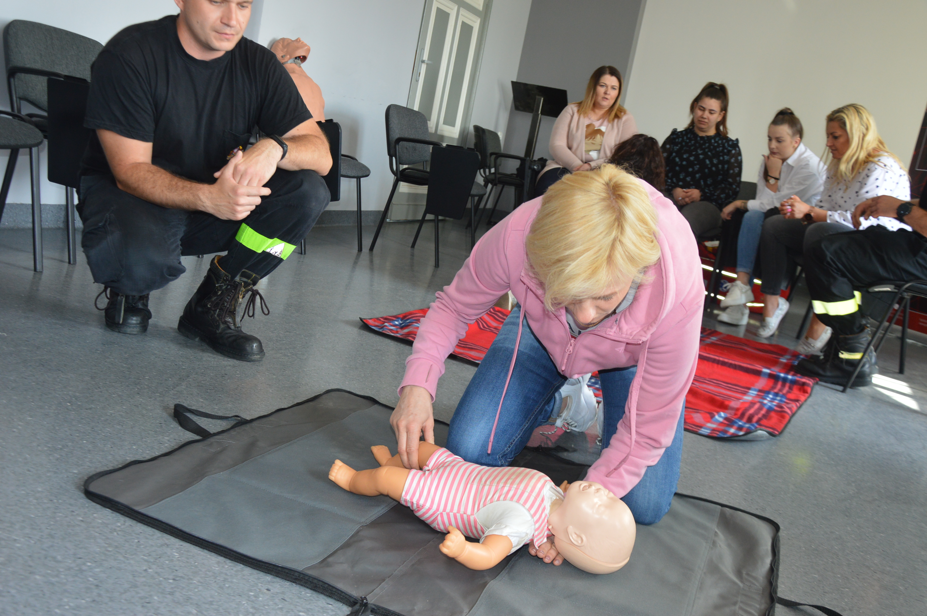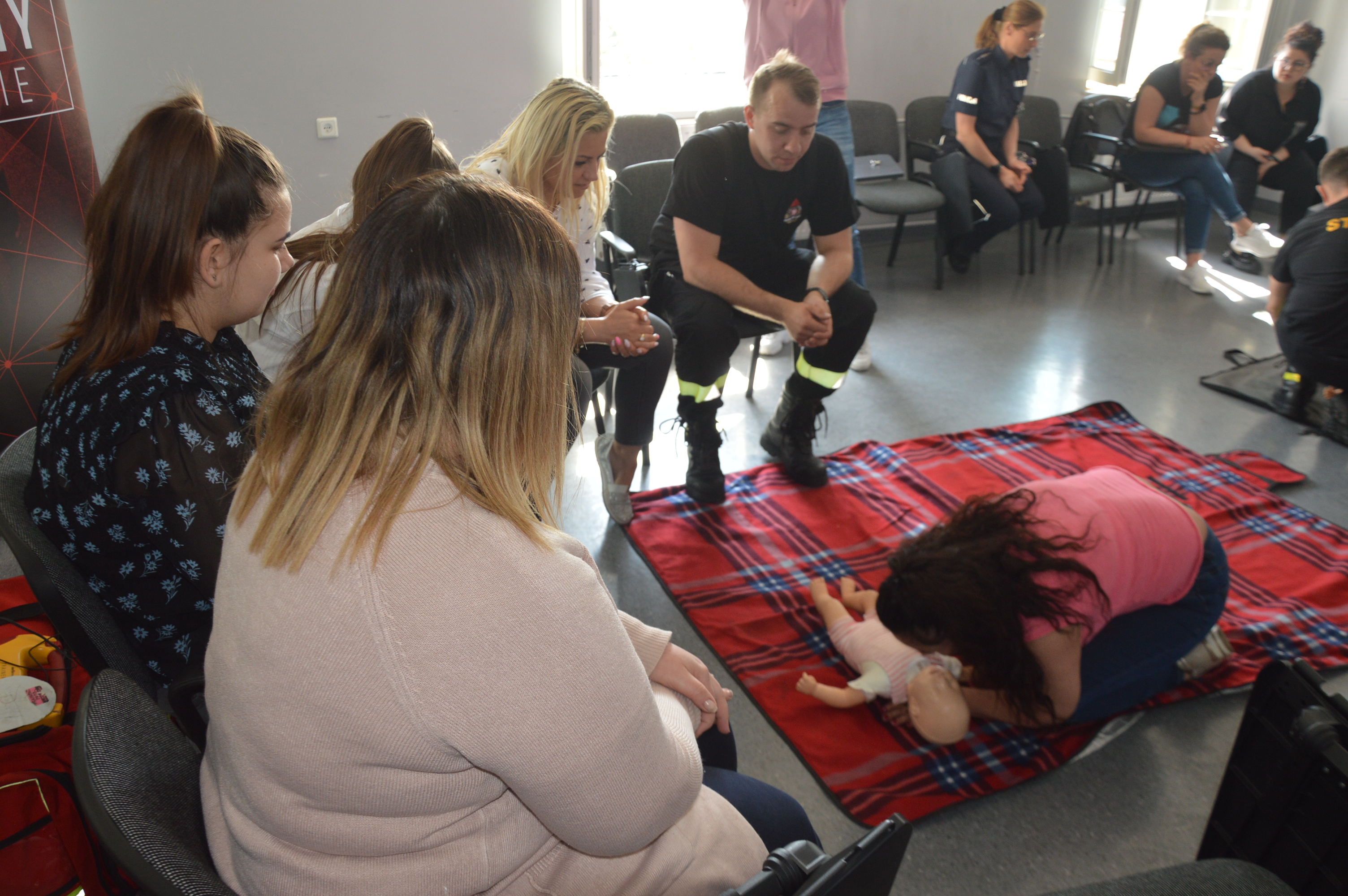 Podczas zajęć omówione zostały sposoby dokonywania oceny stanu poszkodowanego, metody udrożniania dróg oddechowych, a także zasady udzielania pomocy poszkodowanemu w przypadku stwierdzenia nagłego zatrzymania krążenia.