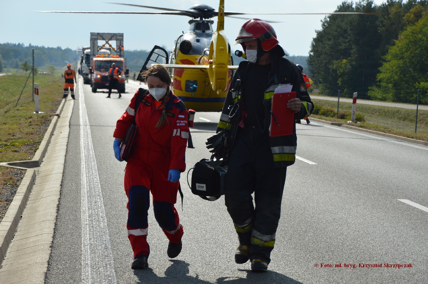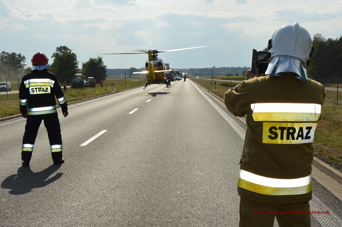 Działania ratownicze polegające na zabezpieczeniu miejsca zdarzenia, udzieleniu kwalifikowanej pierwszej pomocy jednemu z pasażerów VW, kierowaniu ruchem oraz przygotowaniu miejsca do lądowania dla śmigłowca LPRm, prowadzili strażacy z Komendy Powiatowej PSP w Rawiczu i Ochotniczej Straży Pożarnej w Izbicach.