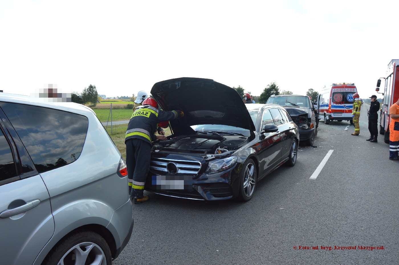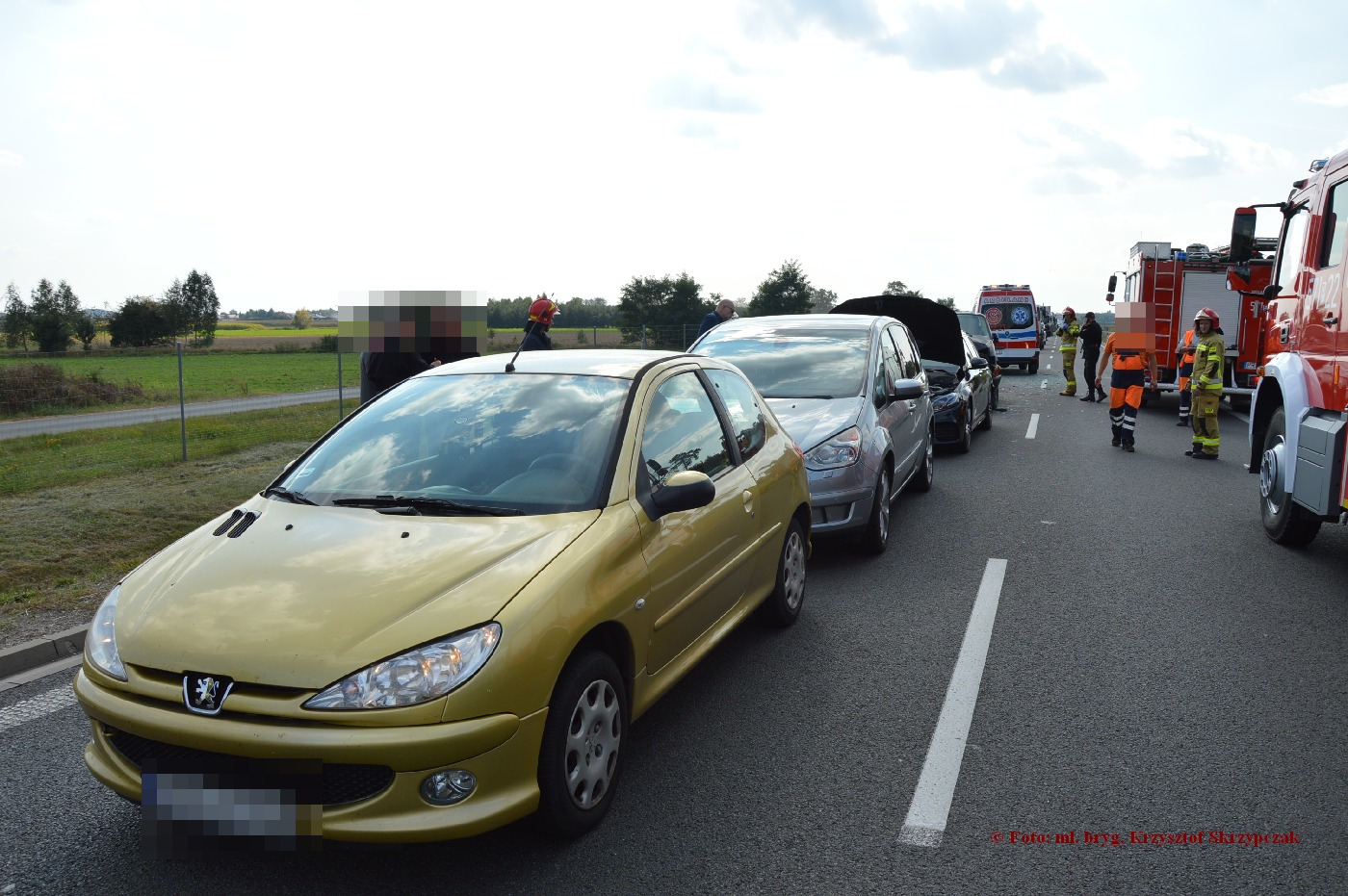 Cztery pojazdy osobowe i bus zderzyły się na północnej obwodnicy Rawicza. Autami podróżowało 12 osób, cztery z nich zostały zabrane do szpitala.