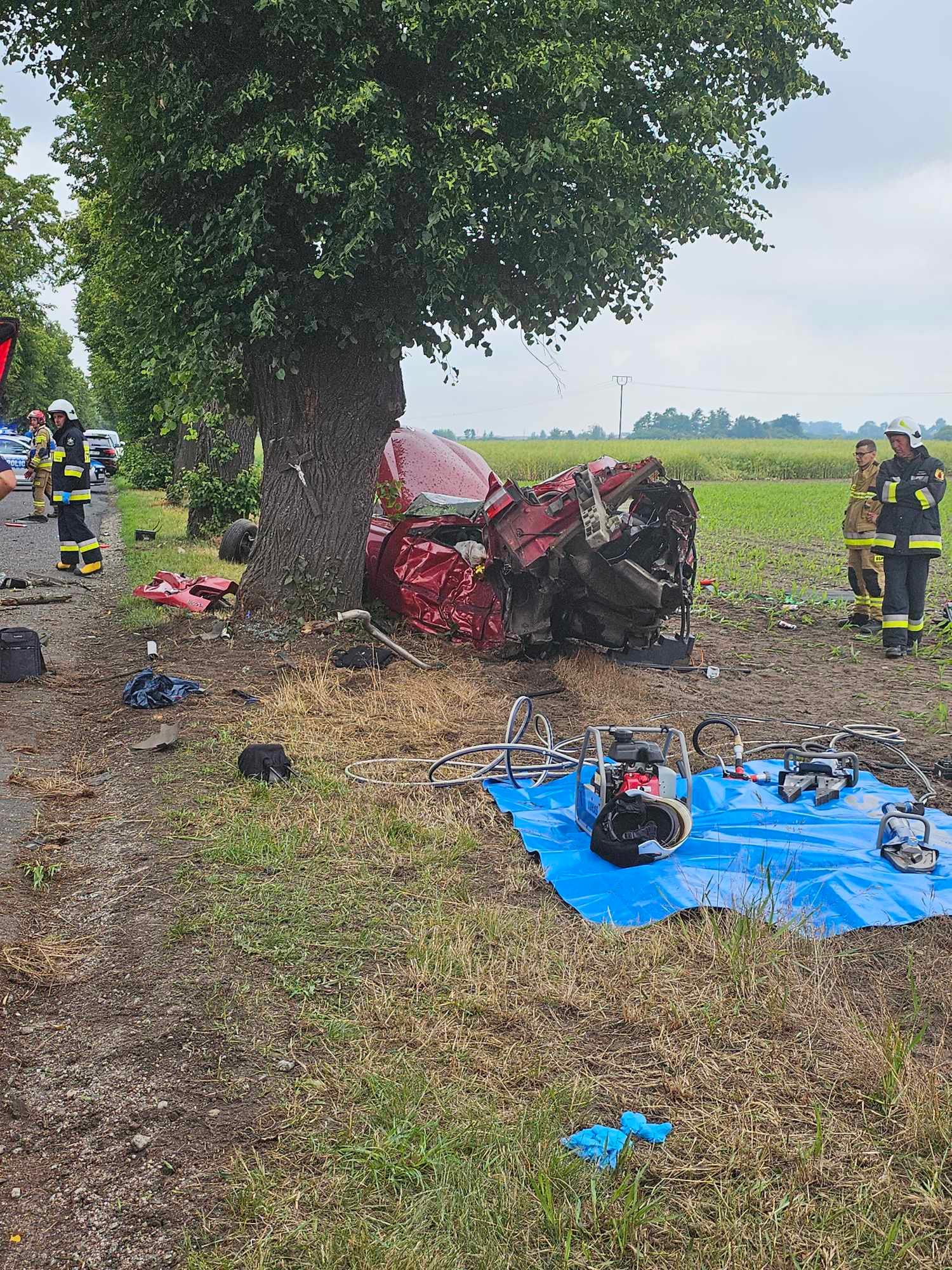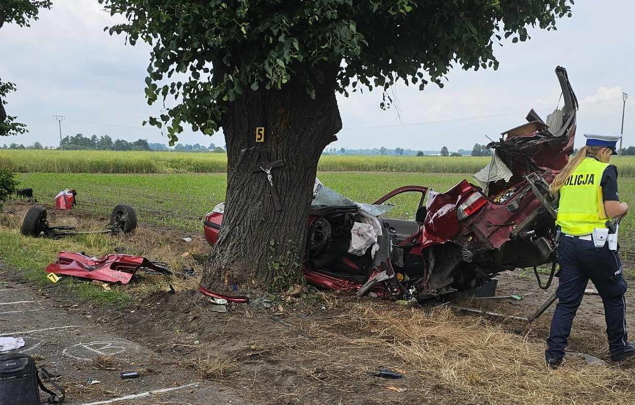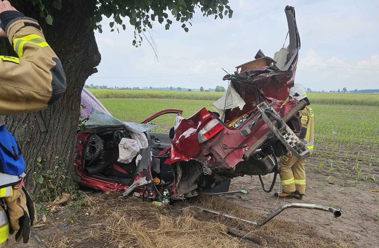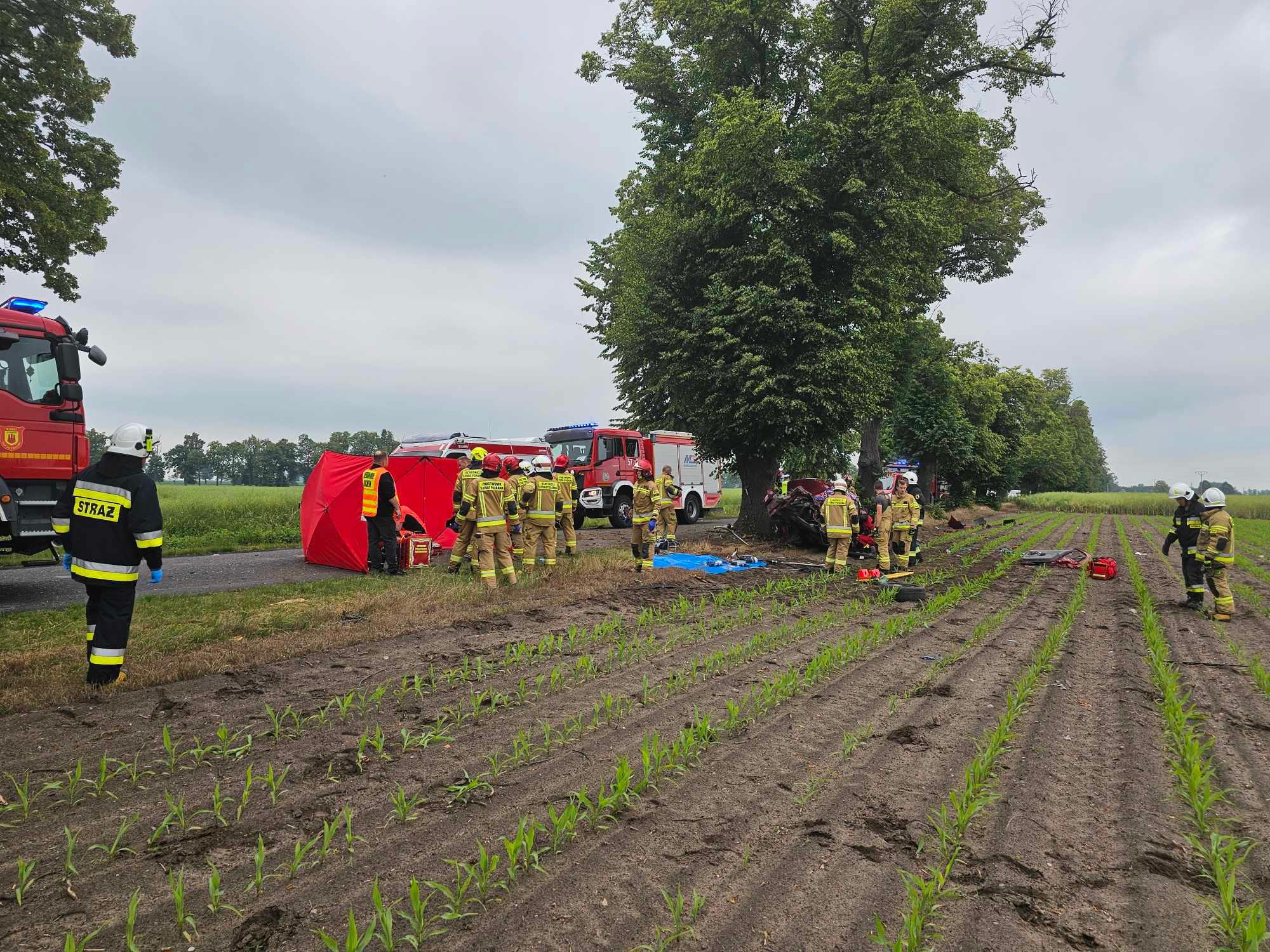 Dwóch mężczyzn zginęło w wypadku na drodze powiatowej w gminie Jutrosin. Auto, którym podróżowali uderzyło w drzewo. Do wydobycia z wraku ciał ofiar, strażacy użyli specjalistycznych rozpieraczy i nożyc hydraulicznych.