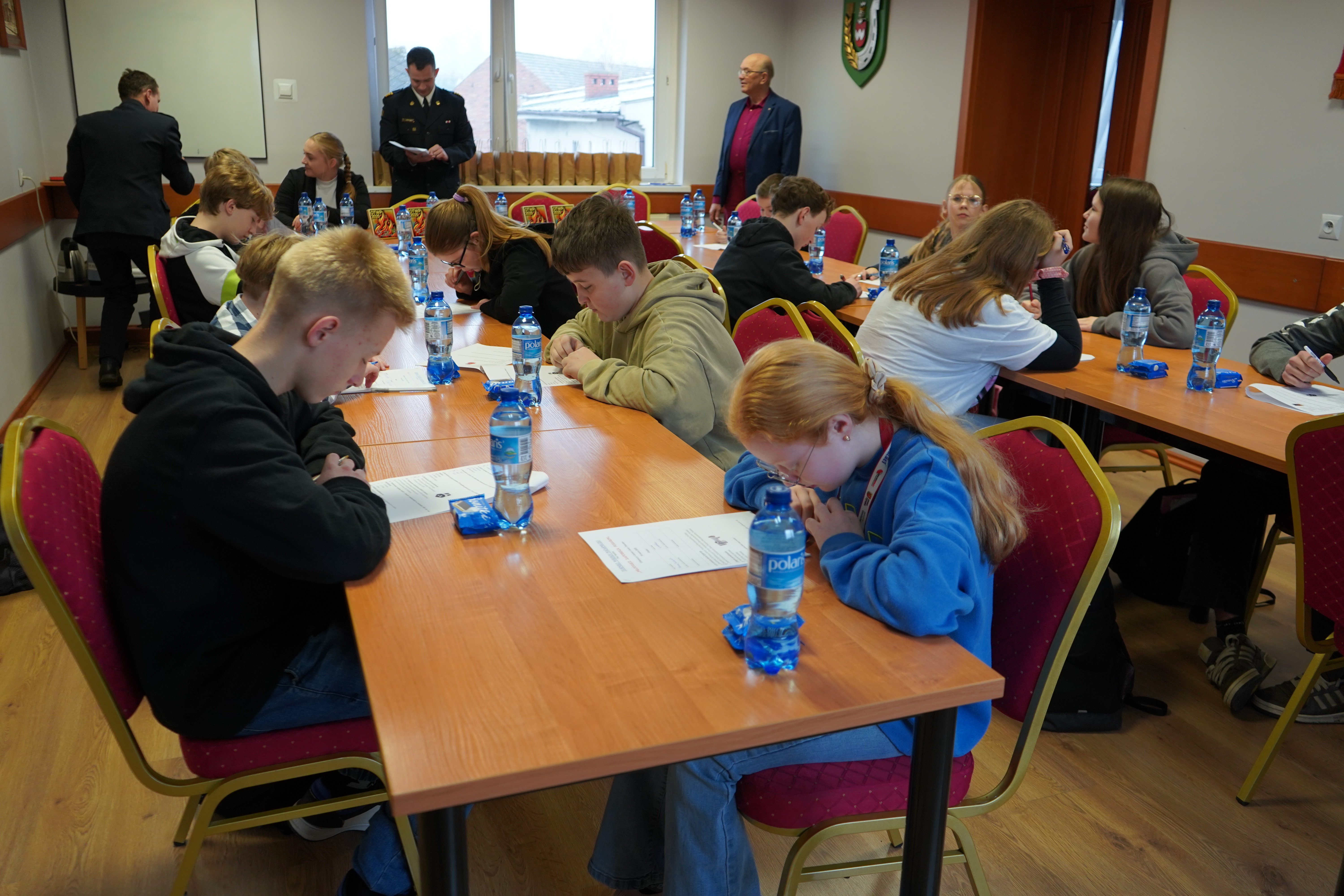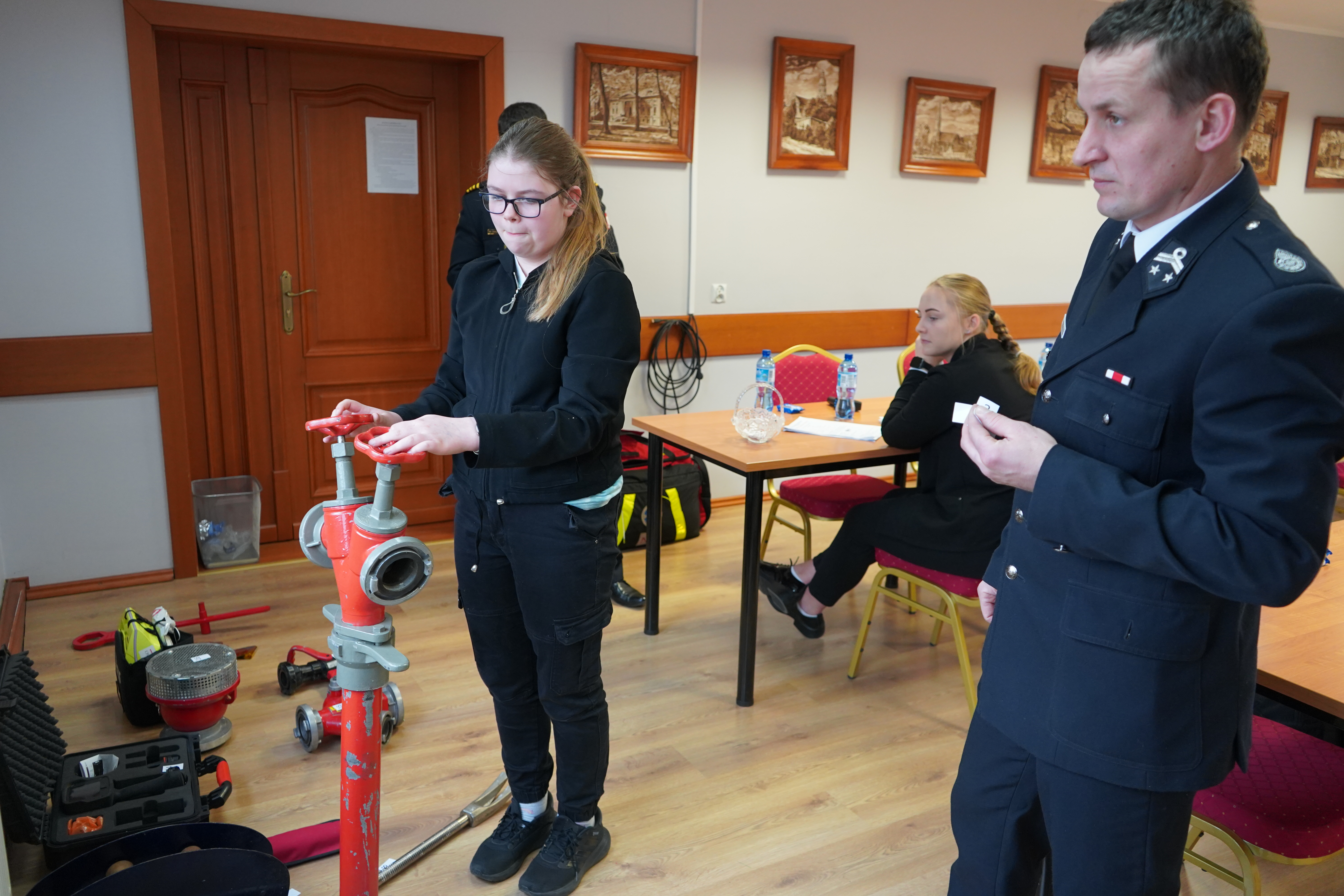Zadaniem uczestników było rozwiązanie testu pisemnego oraz udzielenie odpowiedzi ustnej dot. nazewnictwa, przeznaczenia oraz sposobu użycia sprzętu i pozostałego wyposażenia strażackiego.