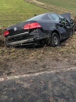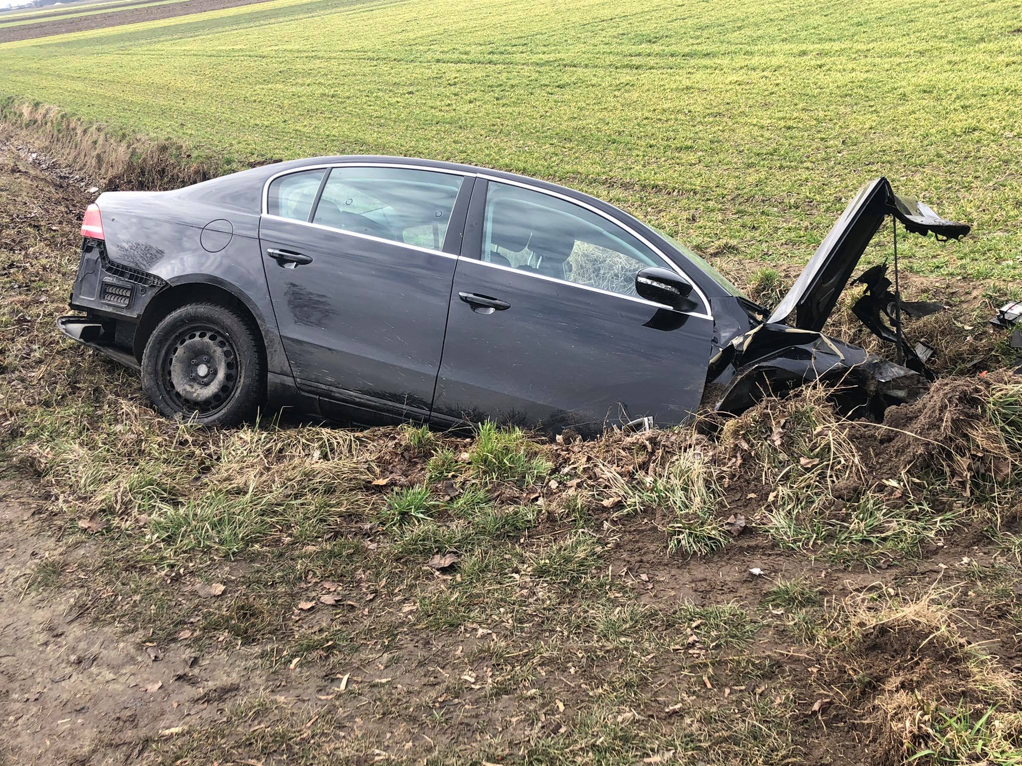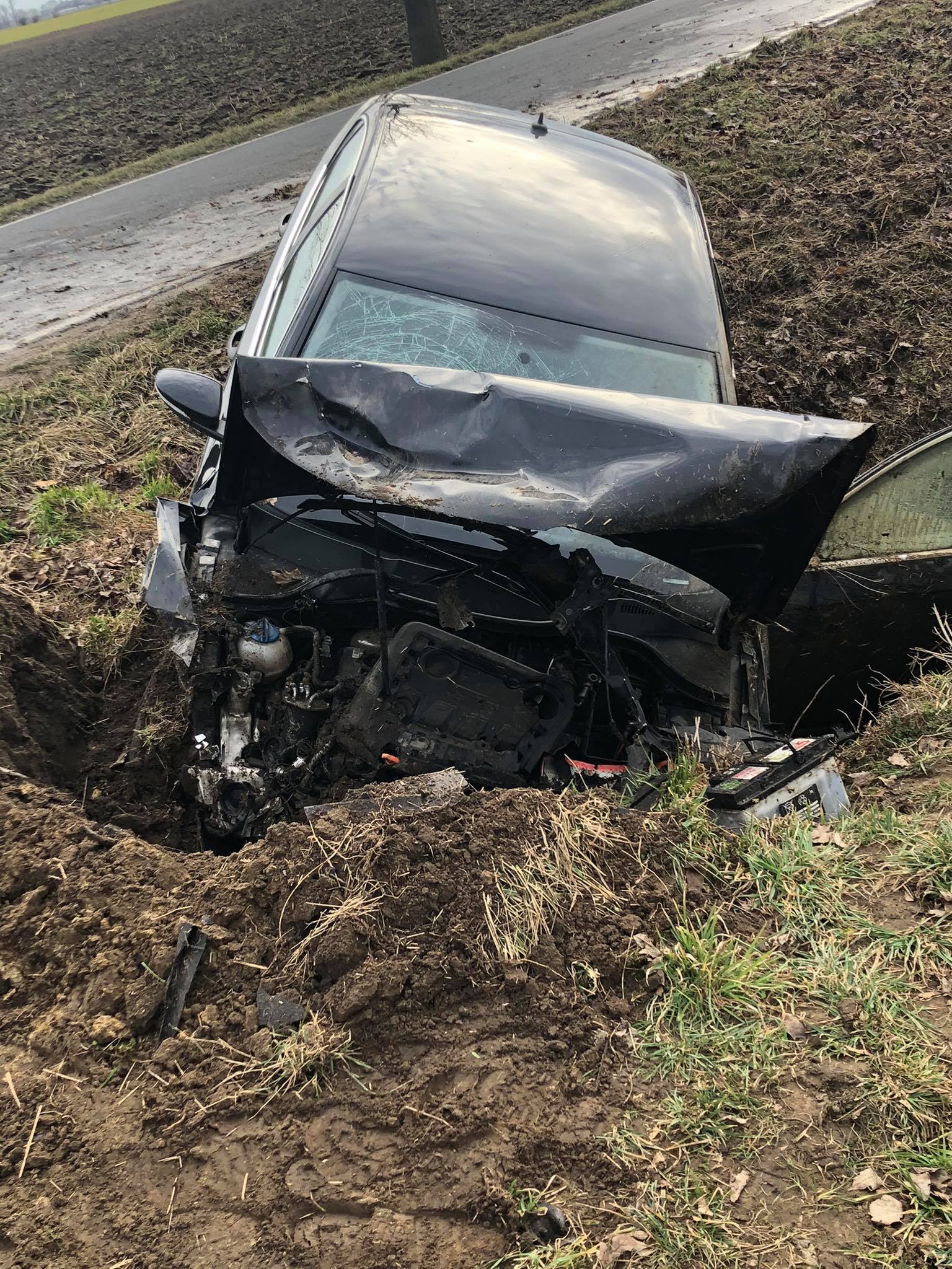 Zanim na miejsce dojechały służby, 43-letni mieszkaniec gminy Jutrosin przebywał już poza rozbitym autem, uskarżając się na bóle klatki piersiowej.