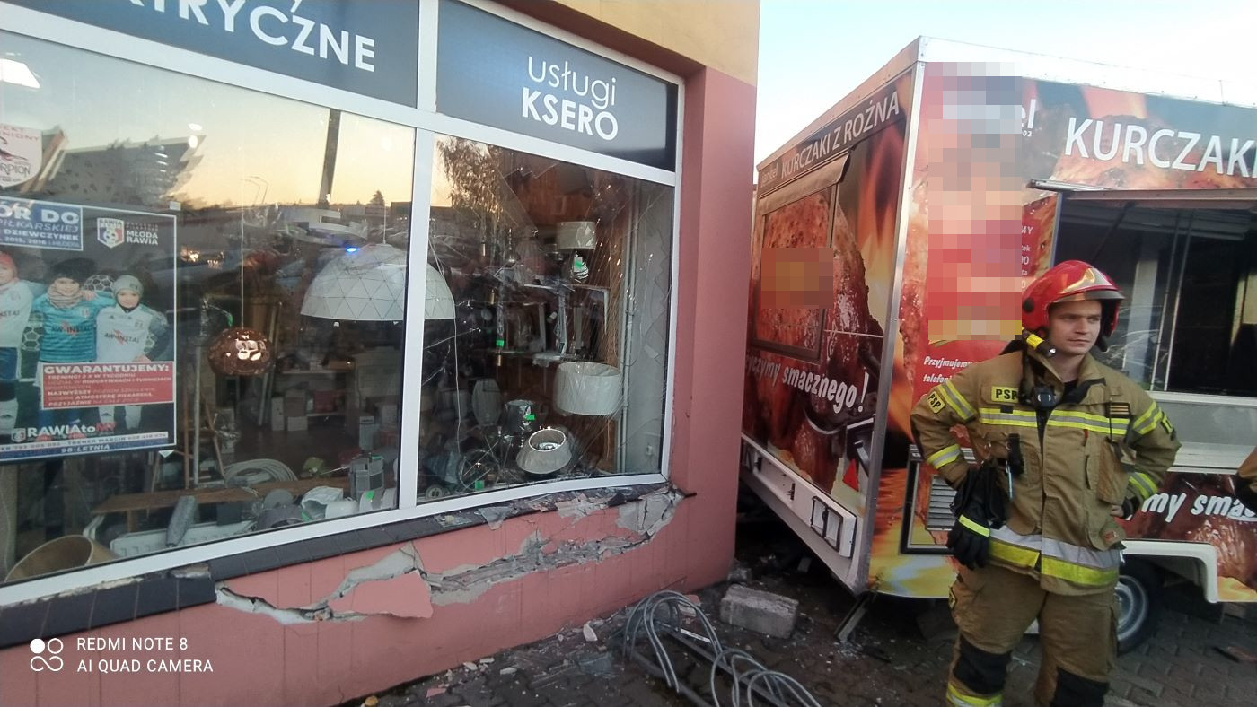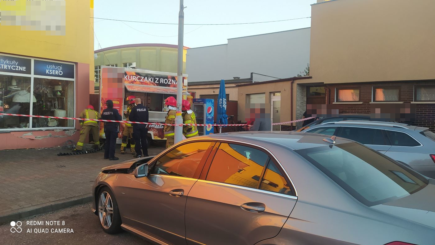 To nietypowe zdarzenie miało miejsce w czwartek 28 października 2021 r. ok. godziny 16.30. Ucierpiała kobieta - sprzedawczyni, która w chwili kolizji znajdowała się w przyczepie.