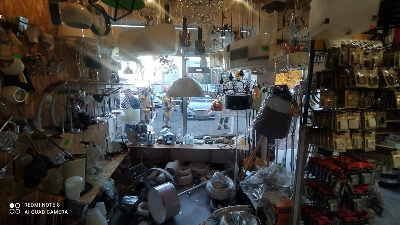 Oprócz budynku, przyczepy i samochodu osobowego ucierpiał także towar w sklepie branży elektrycznej.