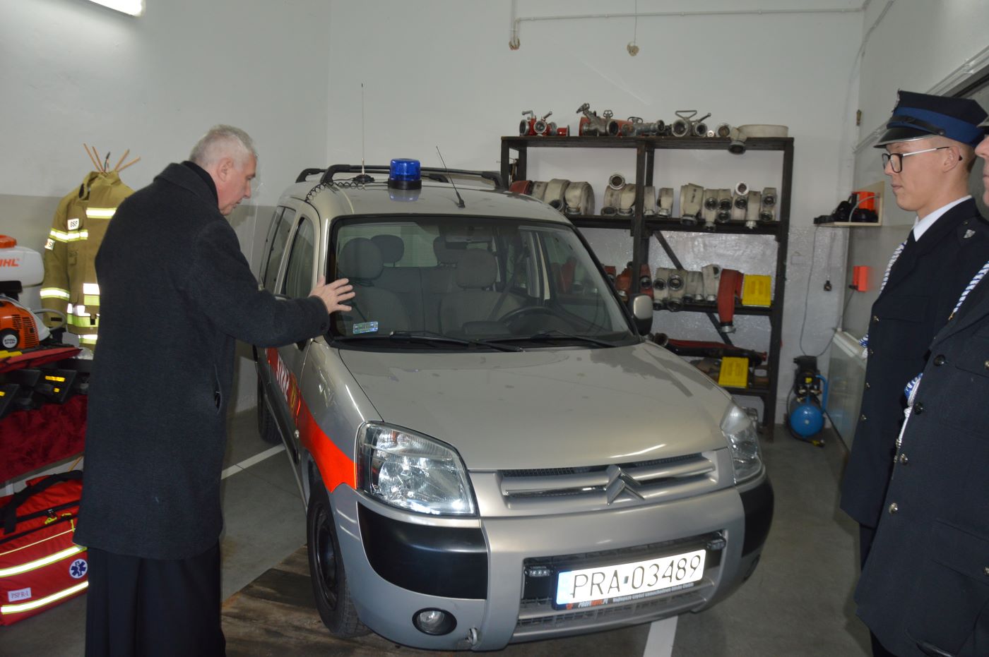 Samochód i nowy sprzęt ratowniczy poświęcił ks. kanonik Tadeusz Jaskuła, proboszcz Parafii p.w. Św. Elżbiety w Jutrosinie.