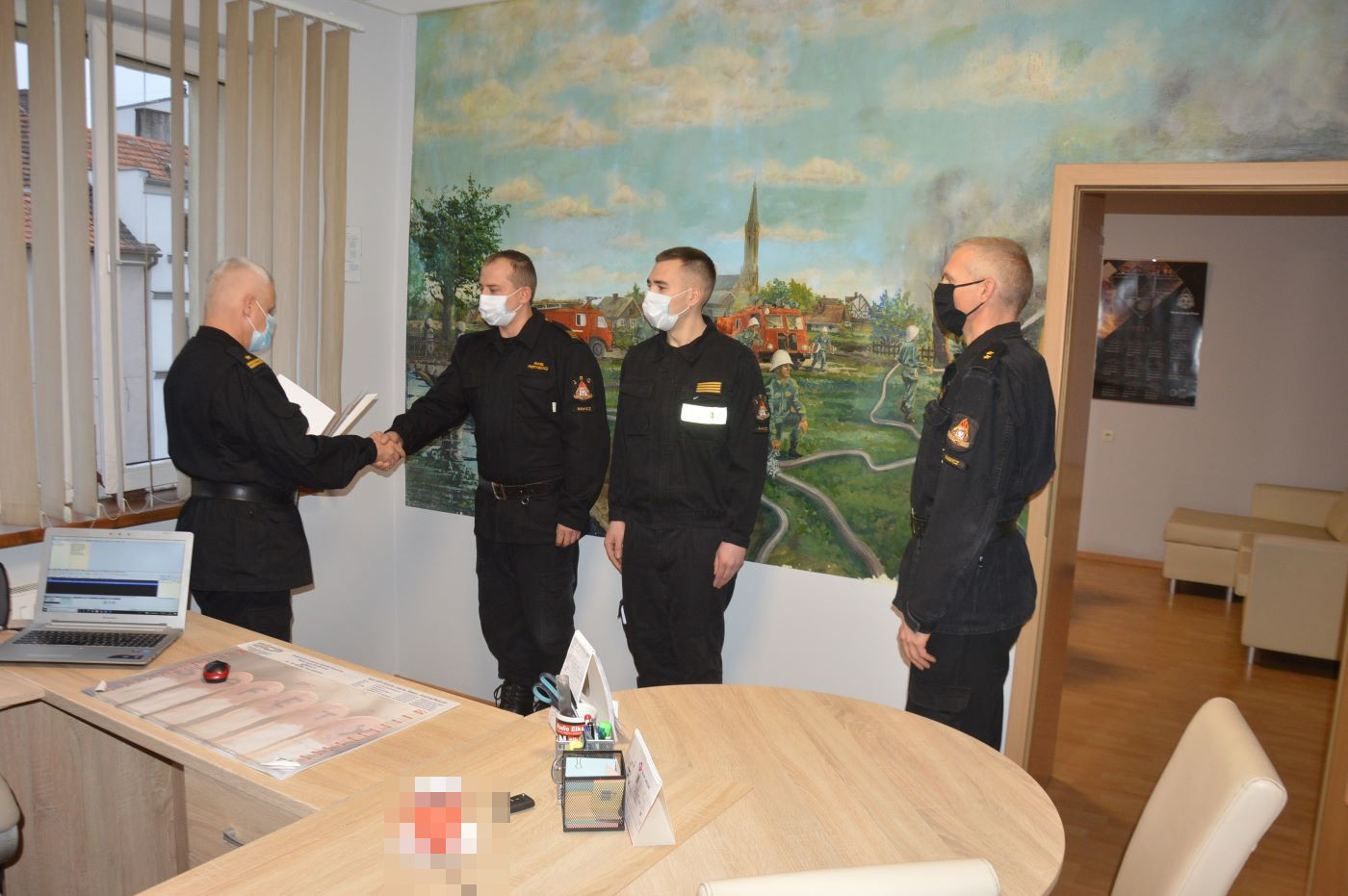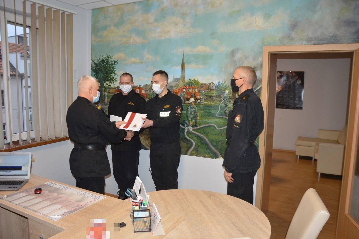 Akty nadania wręczył awansowanym strażakom mł. bryg. Krzysztof Skrzypczak, zastępca komendanta powiatowego PSP w Rawiczu, w obecności mł. kpt. Leszka Kuczyńskiego, zastępcy dowódcy JRG.