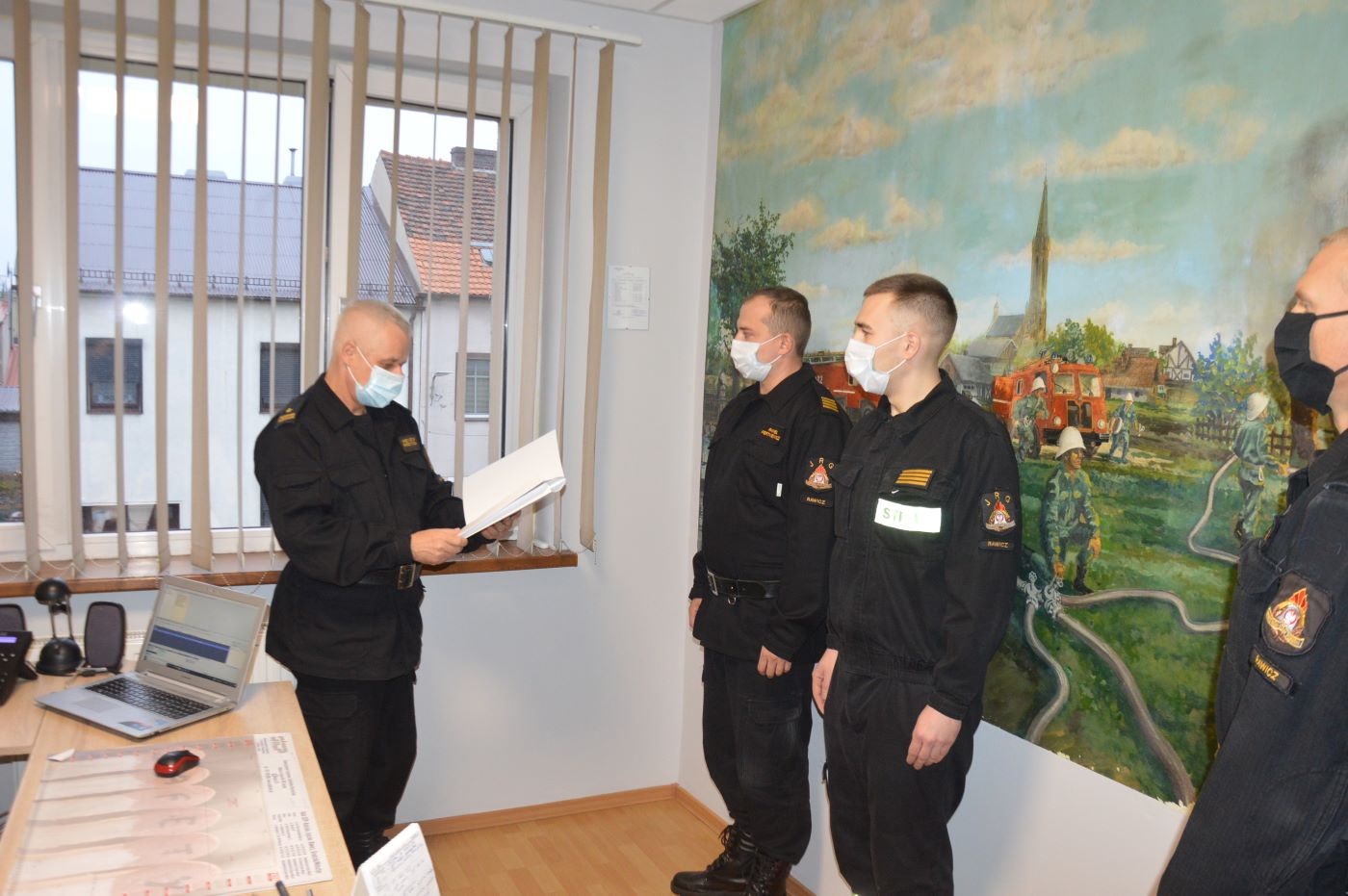 Awans do stopnia „młodszy ogniomistrz” otrzymali st. sekc. Paweł Pertkiewicz, dyżurny stanowiska kierowania komendanta powiatowego PSP oraz st. sekc. Mateusz Hanuszewicz, starszy ratownik.