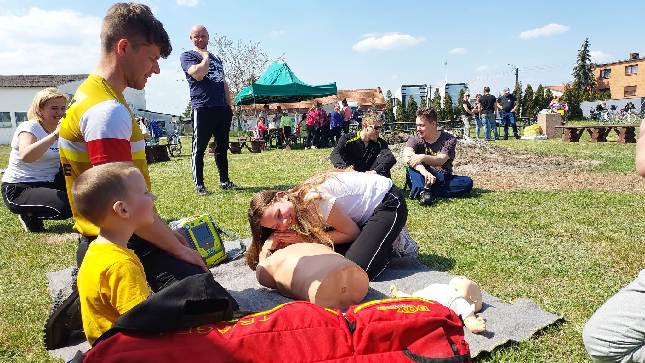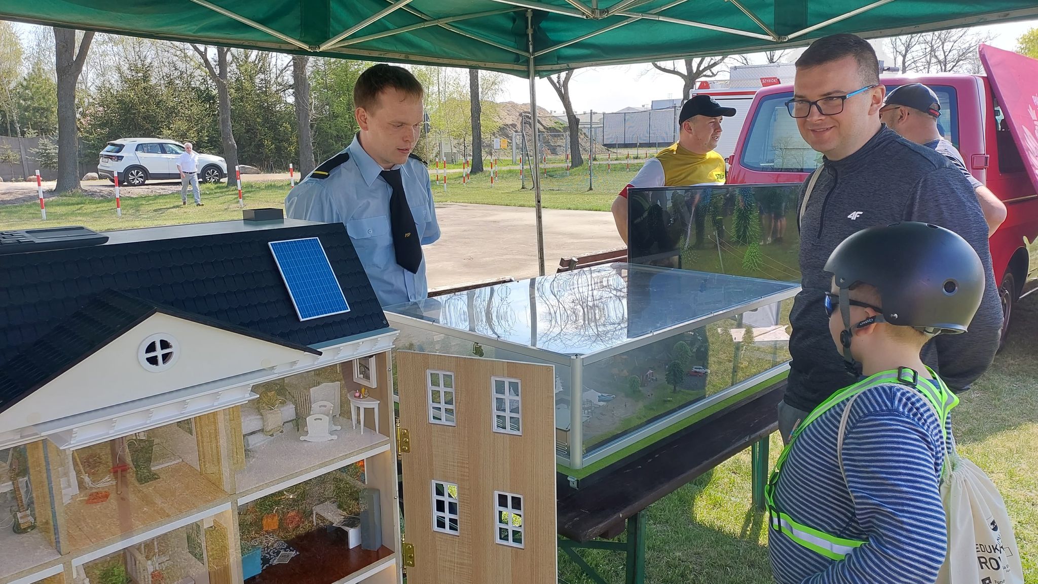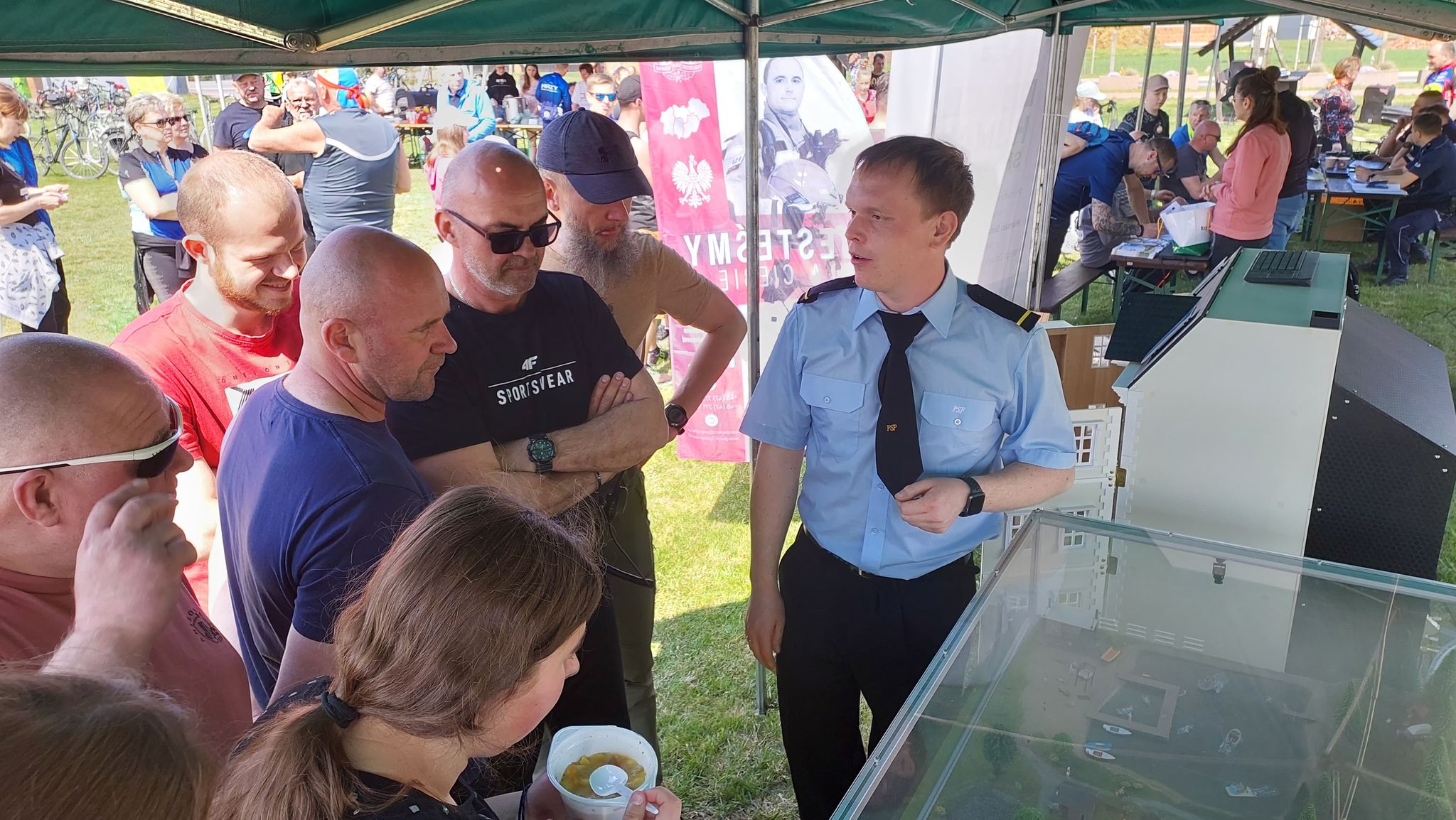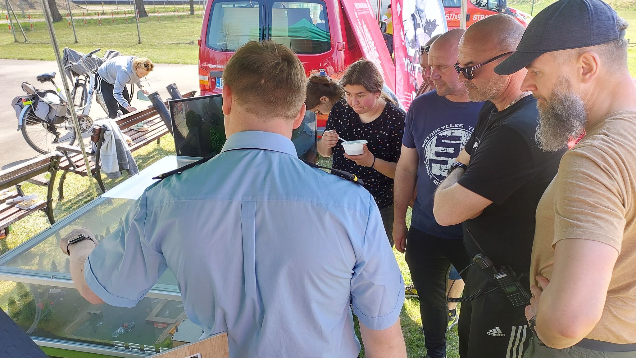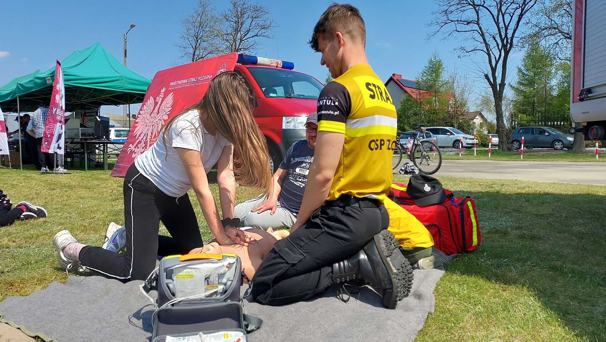 Mobilne symulatory zagrożeń: budynek mieszkalny oraz jezioro-las, a także wóz strażacki, sprzęt ratowniczy, defibrylator automatyczny i fantomy – to strażackie atrakcje, jakie czekały na uczestników Edukacyjnego Rajdu Rowerowego, którego meta znajdowała się na boisku w podrawickich Żylicach.