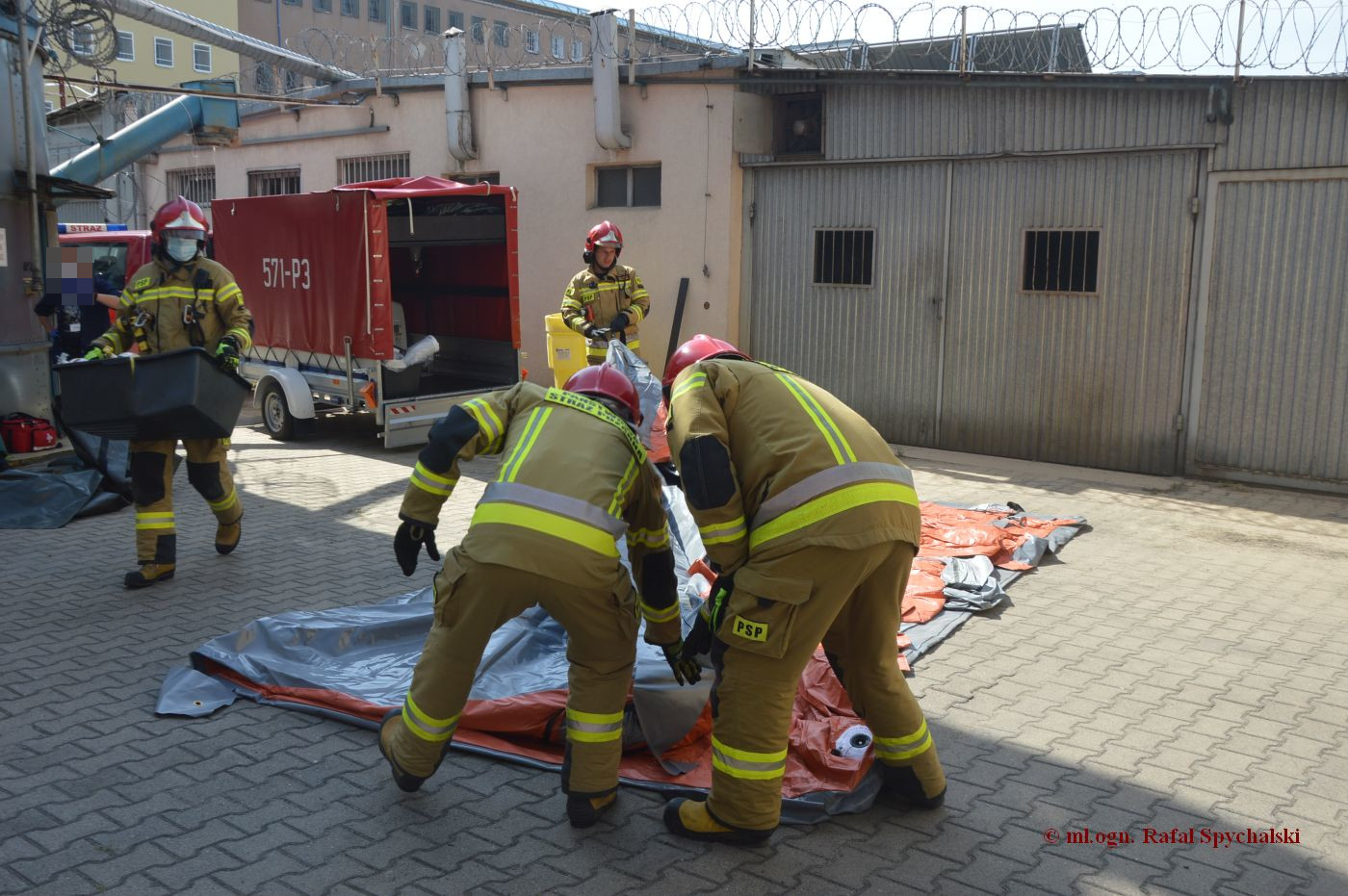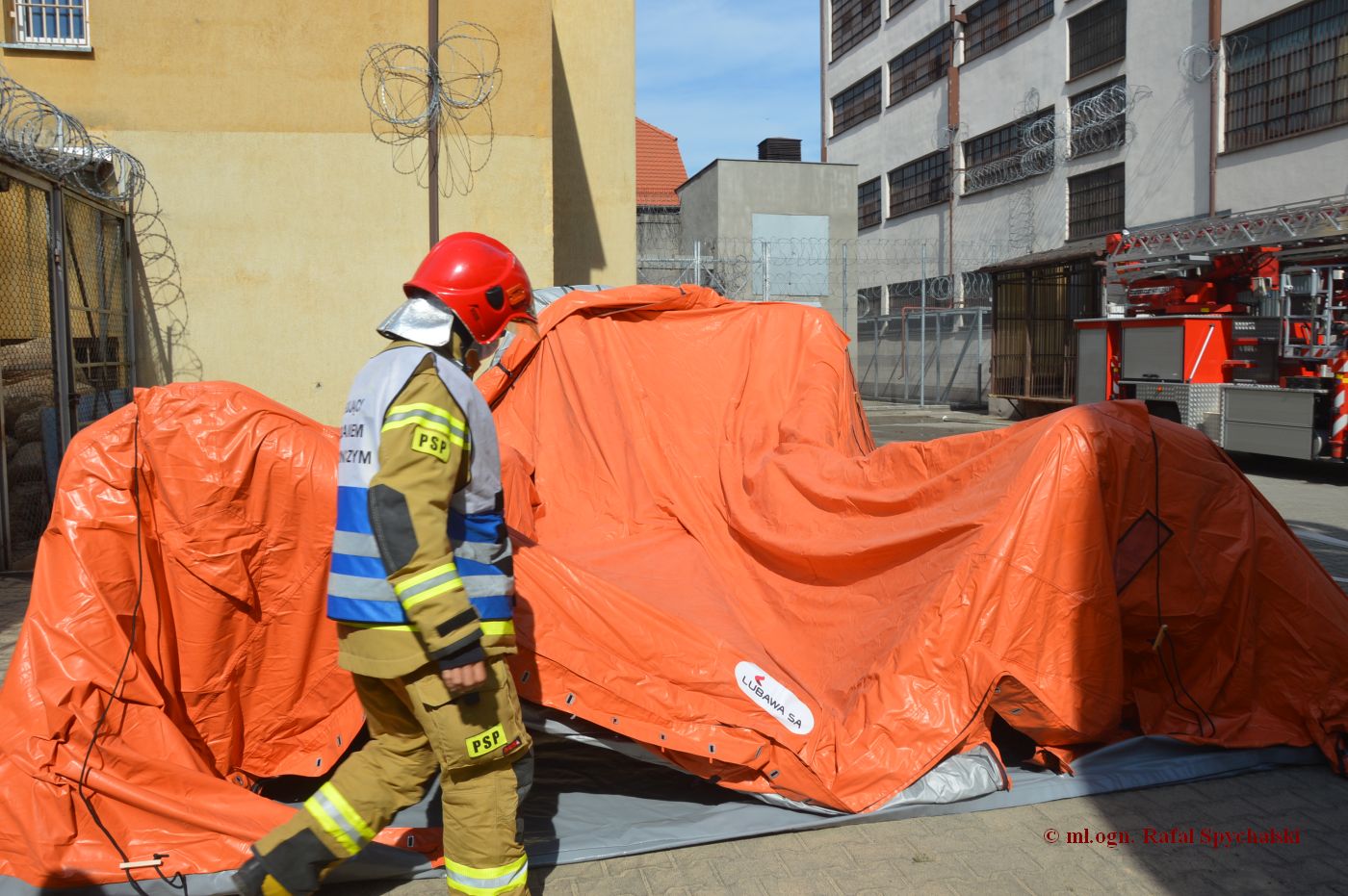 Rawiccy strażacy wspólnie z funkcjonariuszami Służby Więziennej przeprowadzili ćwiczenia na terenie miejscowego Zakładu Karnego. Tym razem na obiekt ćwiczeń wytypowano jeden z budynków produkcyjnych.