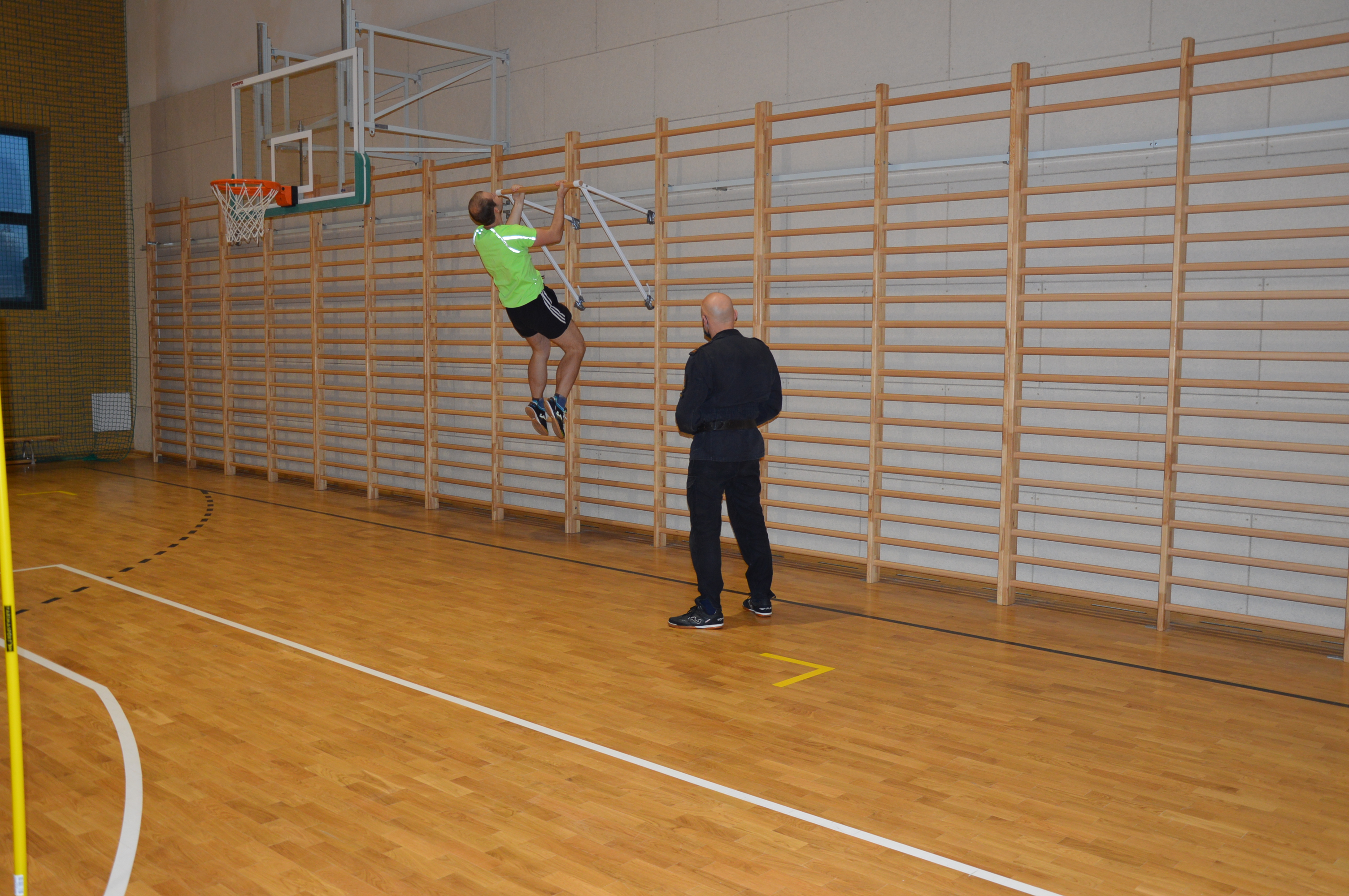 Test rozpoczął się od rzutu piłką lekarską w wykonaniu pań oraz podciąganiu się na drążku przez jedynego startującego mężczyznę. Później był bieg po kopercie, a na zakończenie próba wydolnościowa (beep test).