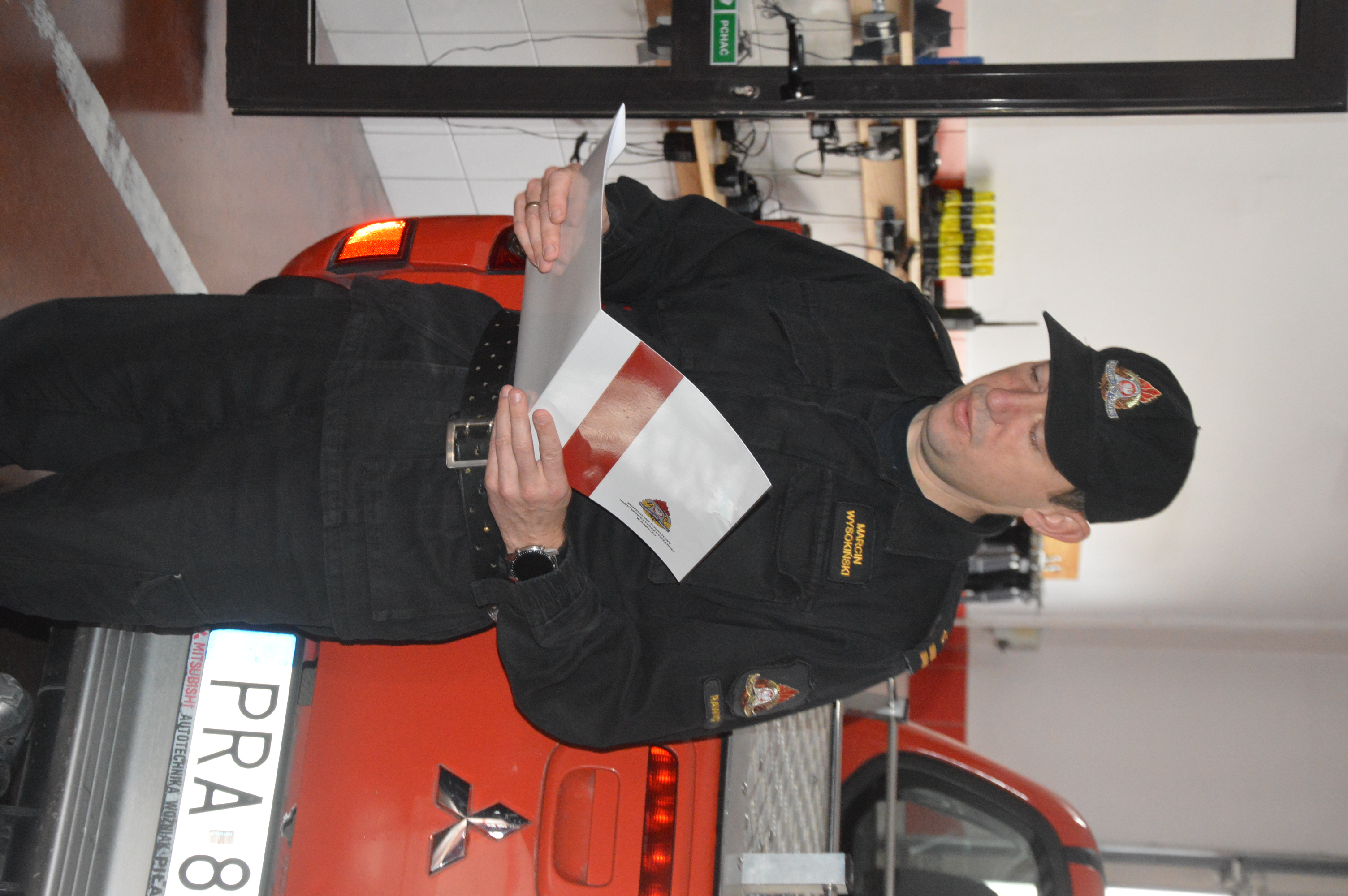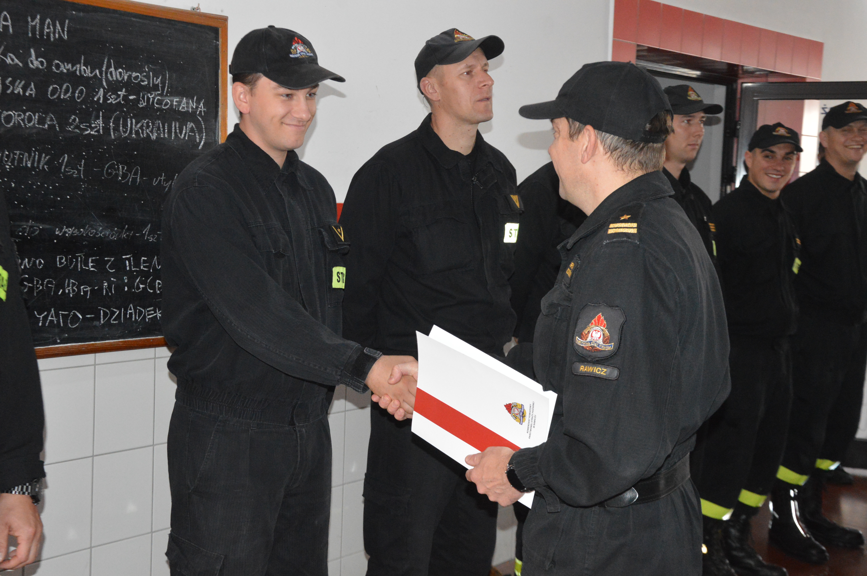 Stosowną decyzję wręczył nagrodzonemu mł. bryg. Marcin Wysokiński, komendant powiatowy PSP w Rawiczu, w asyście bryg. Krzysztofa Skrzypczaka, zastępcy komendanta powiatowego oraz mł. kpt. Leszka Kuczyńskiego, zastępcy dowódcy JRG, w obecności strażaków ze zmian służbowych nr 1 i 2 jednostki ratowniczo – gaśniczej.